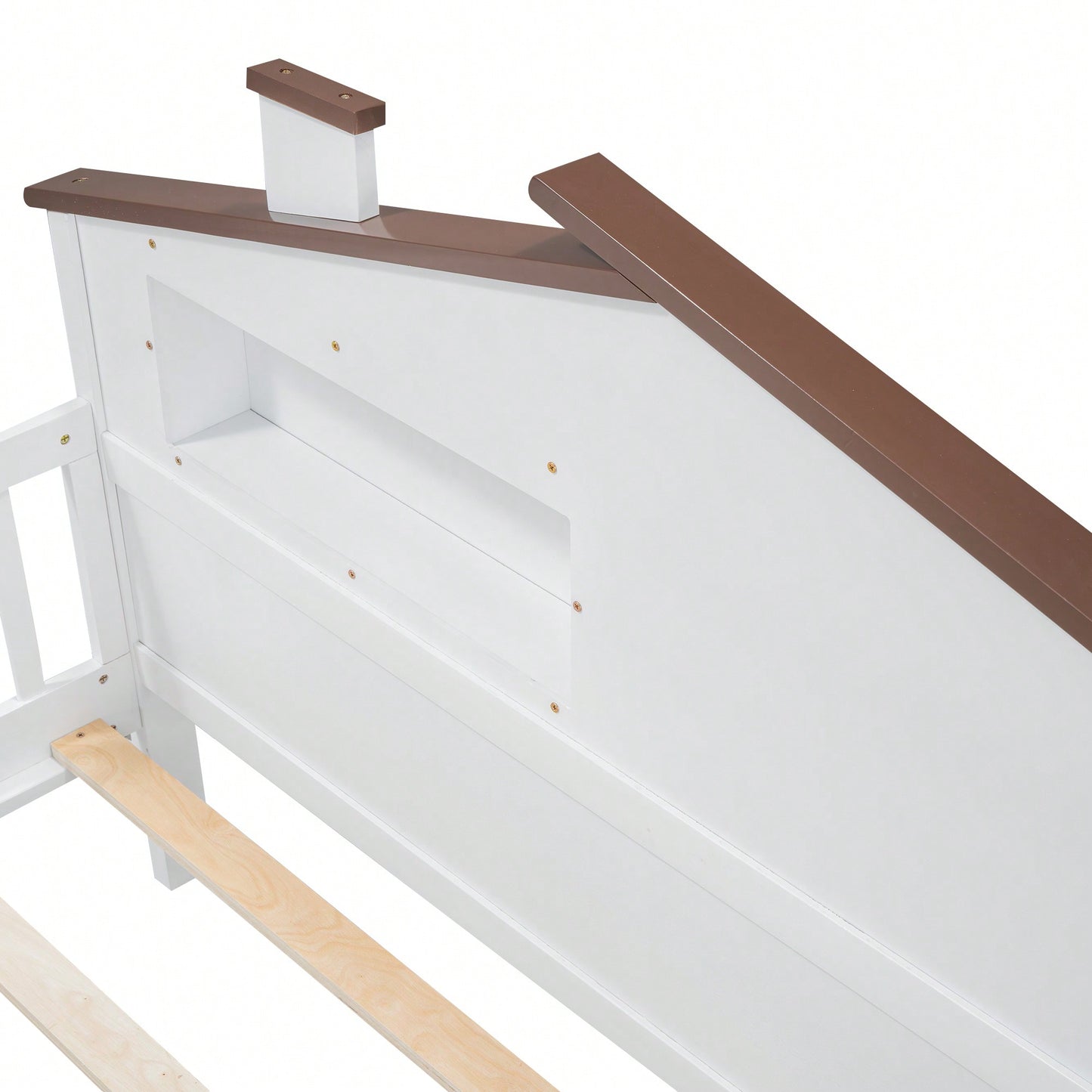 1. Key Features: - Full size wood platform bed with house-shaped headboard - Built-in LED light for convenience and ambiance - Safety guardrails at 12.8 inches to prevent falls - Headboard includes storage space for small items - No box spring needed; wood slats provide mattress support 2. Product Description: This full-size wood platform bed features a charming house-shaped headboard complete with a chimney, adding a rustic touch to any room. The built-in LED light in the headboard enhances visibility and creates a warm atmosphere. Safety is prioritized with 12.8-inch guardrails that help prevent accidental falls. Additionally, the headboard includes a convenient storage window for your phone or remote control. The design eliminates the need for a box spring, as the sturdy wood slats provide excellent mattress support and extend the bed's lifespan. Specifications: - Bed Size: Full - Headboard Design: House-shaped - LED Light: Yes - Guardrail Height: 12.8 inches - Storage: Built-in headboard window - Box Spring: Not required
