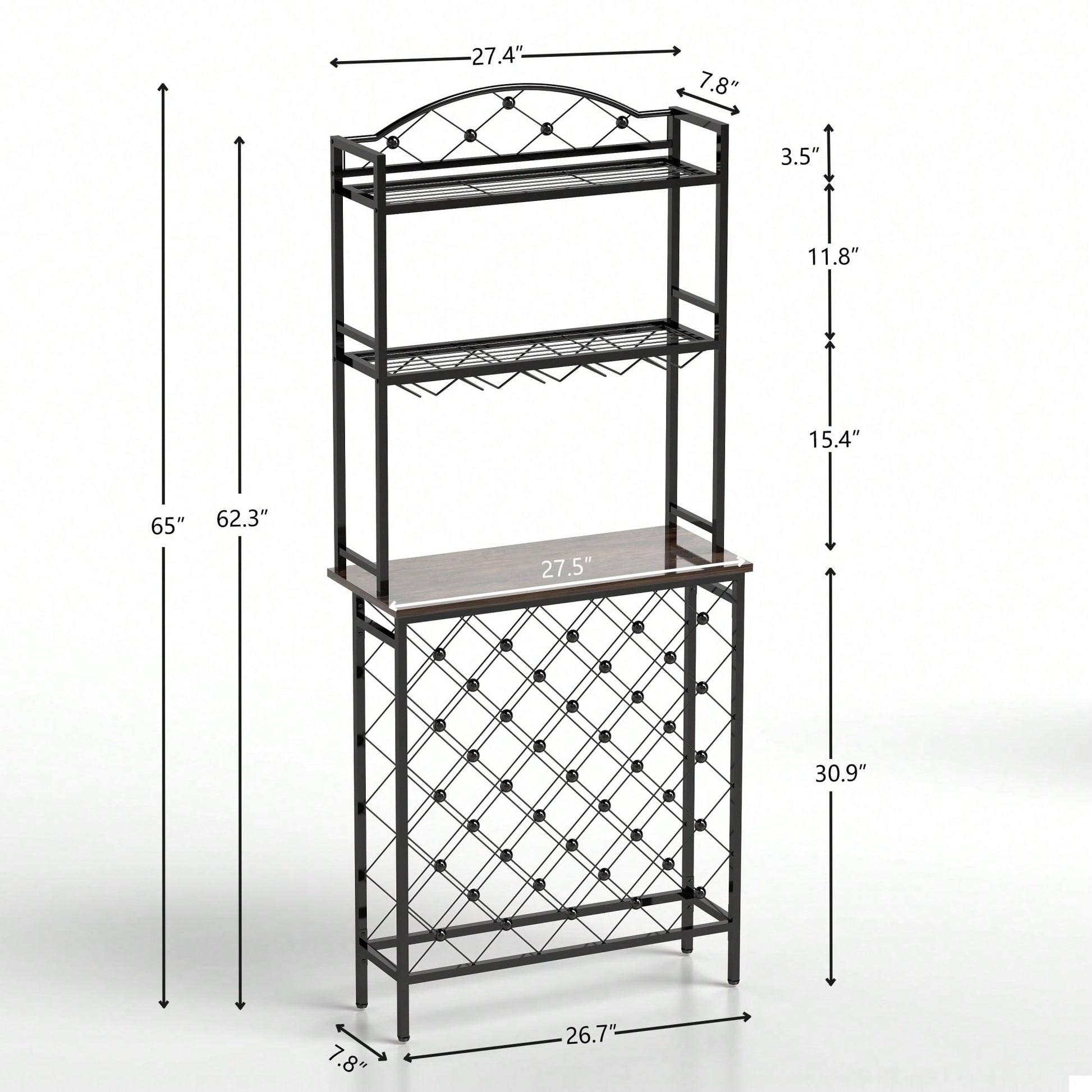 Industrial 3-Tier Wine Rack Bar Table With Glass Holder And Storage Shelves For Home Kitchen Dining Room Living Room