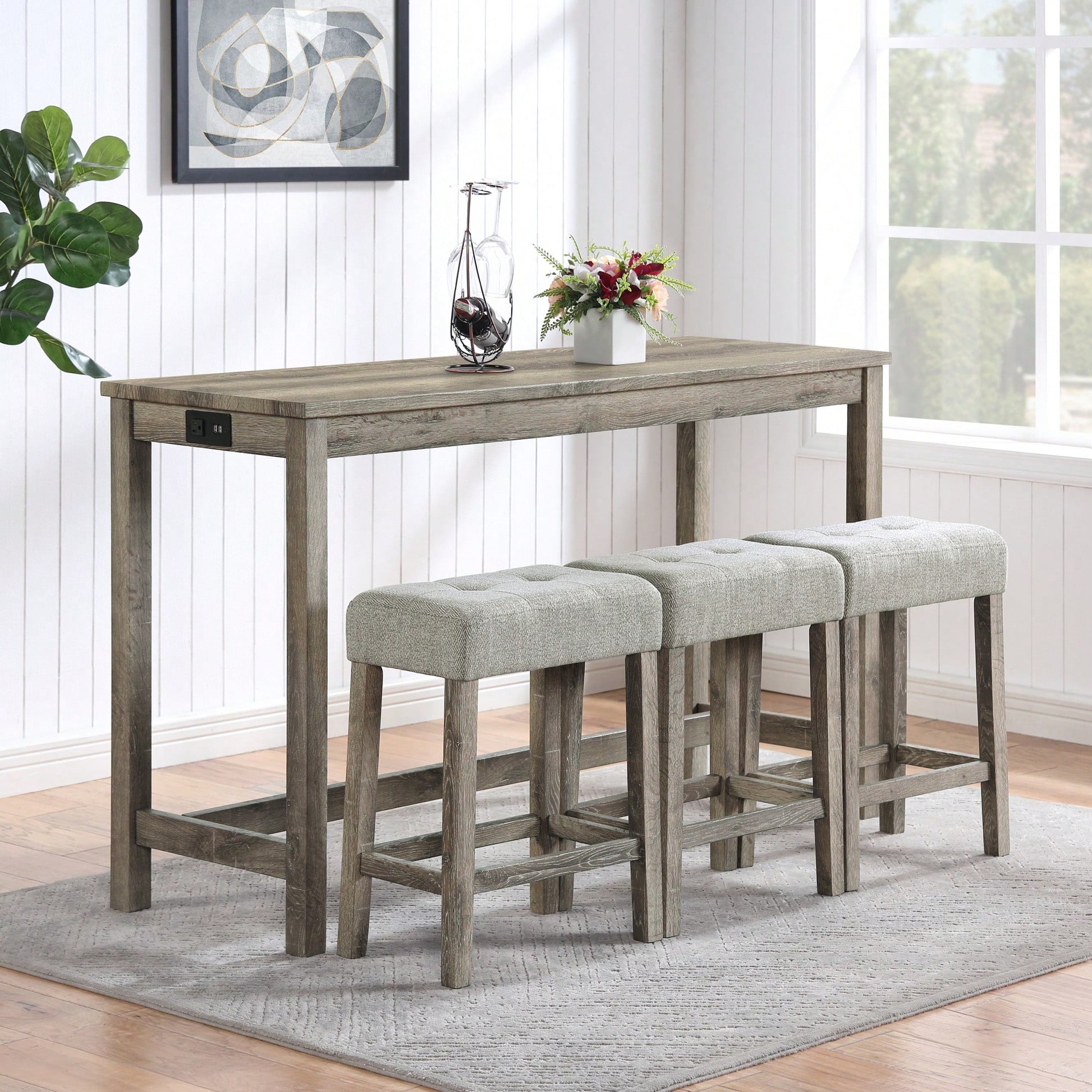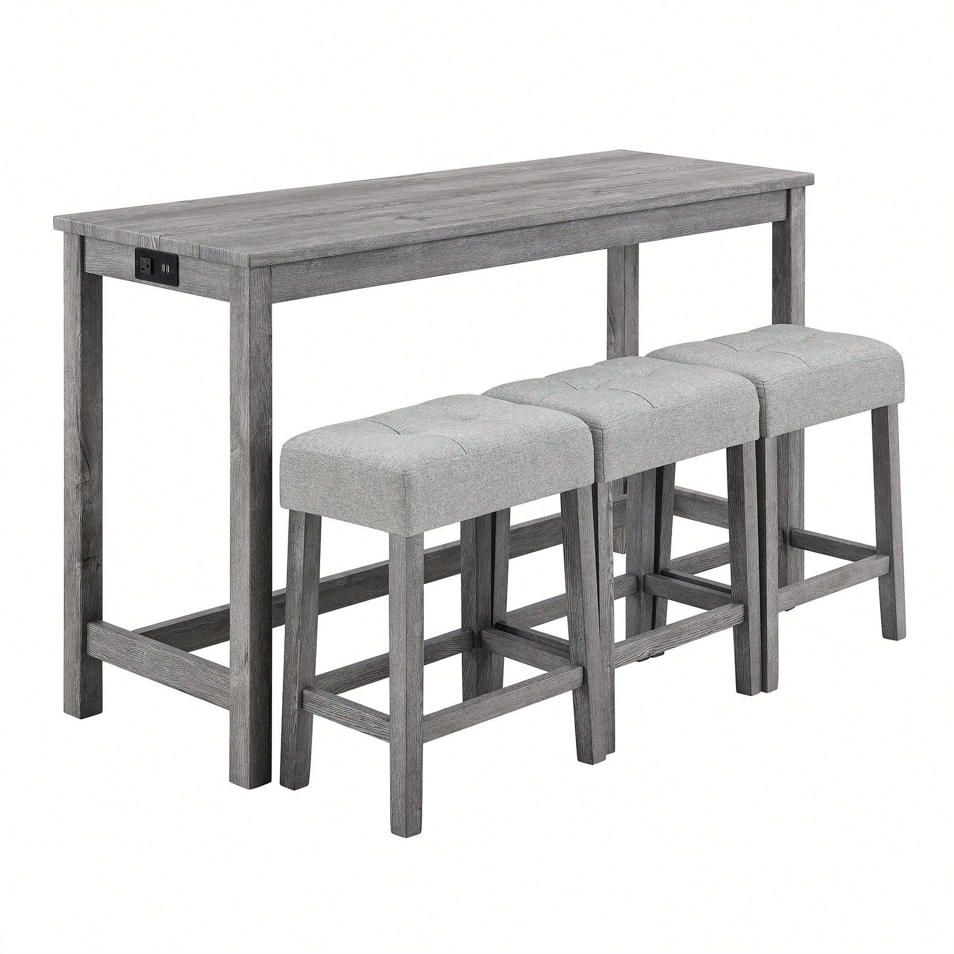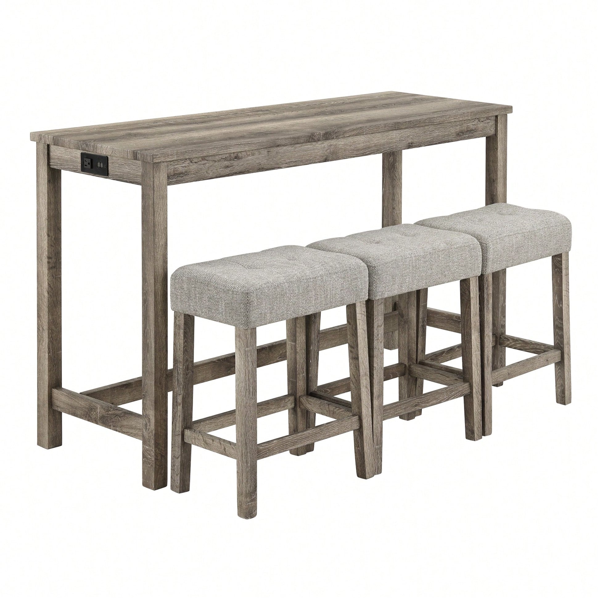 Industrial 4 Piece Bar Table Set With Power Outlet For Dining Room Living Room Game Room