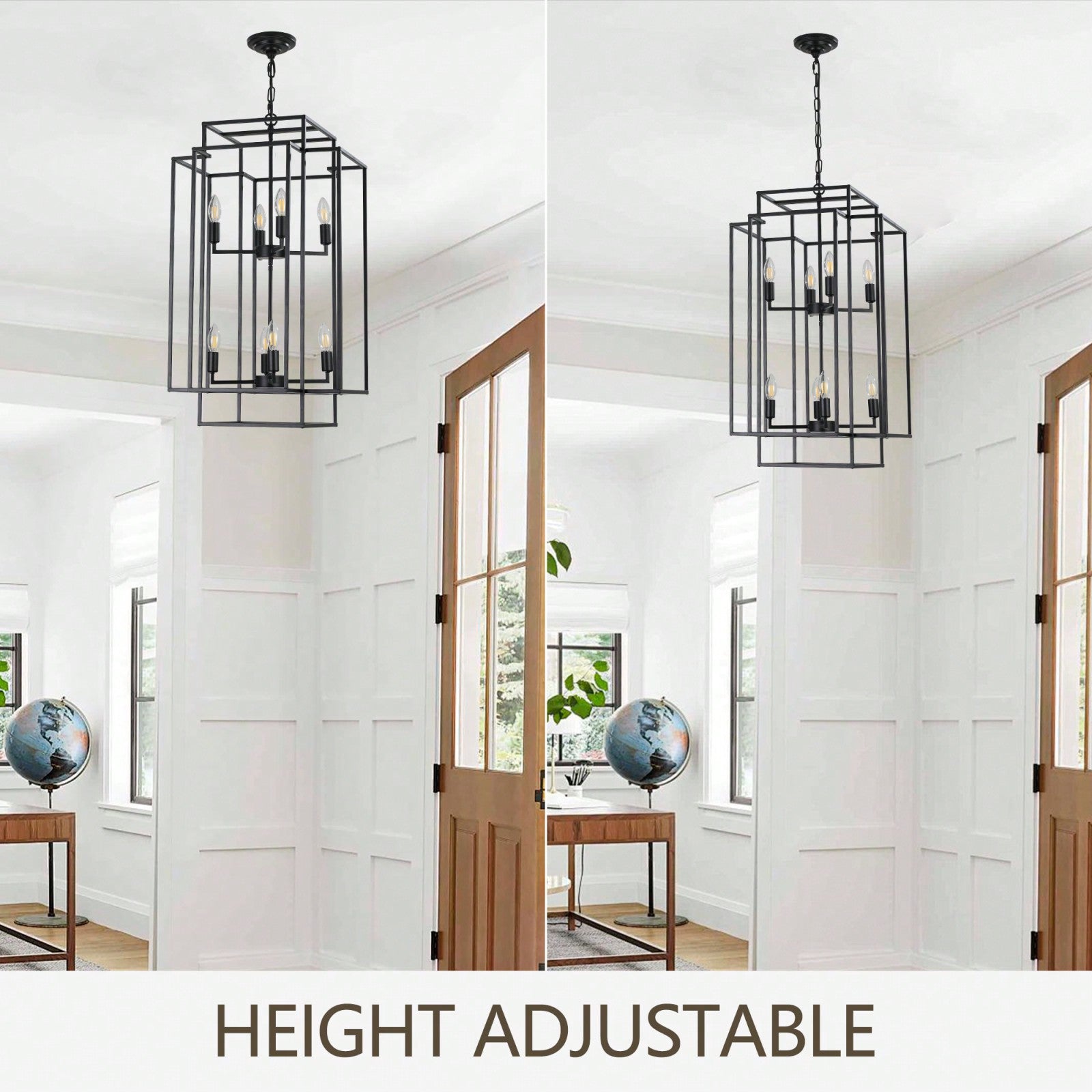 Industrial Farmhouse Pendant Chandelier for Entryway Living Room Kitchen Adjustable Height Durable Metal Frame