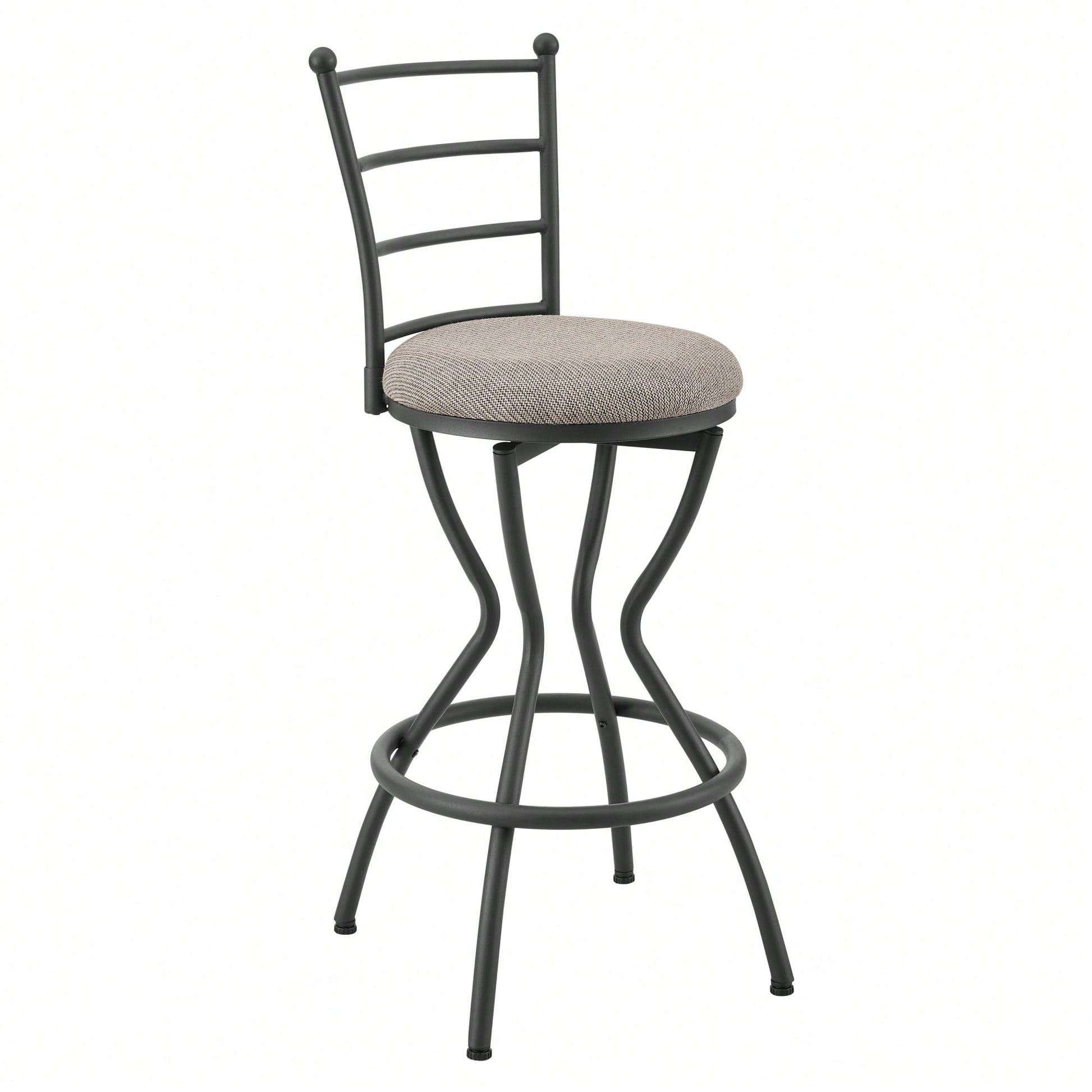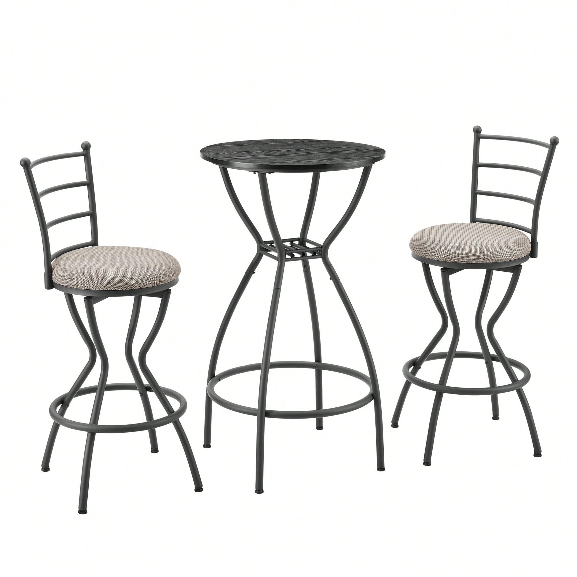 Industrial Style 3 Piece Bar Table And Chairs Set For Dining Room With Metal Back And Fabric Seat