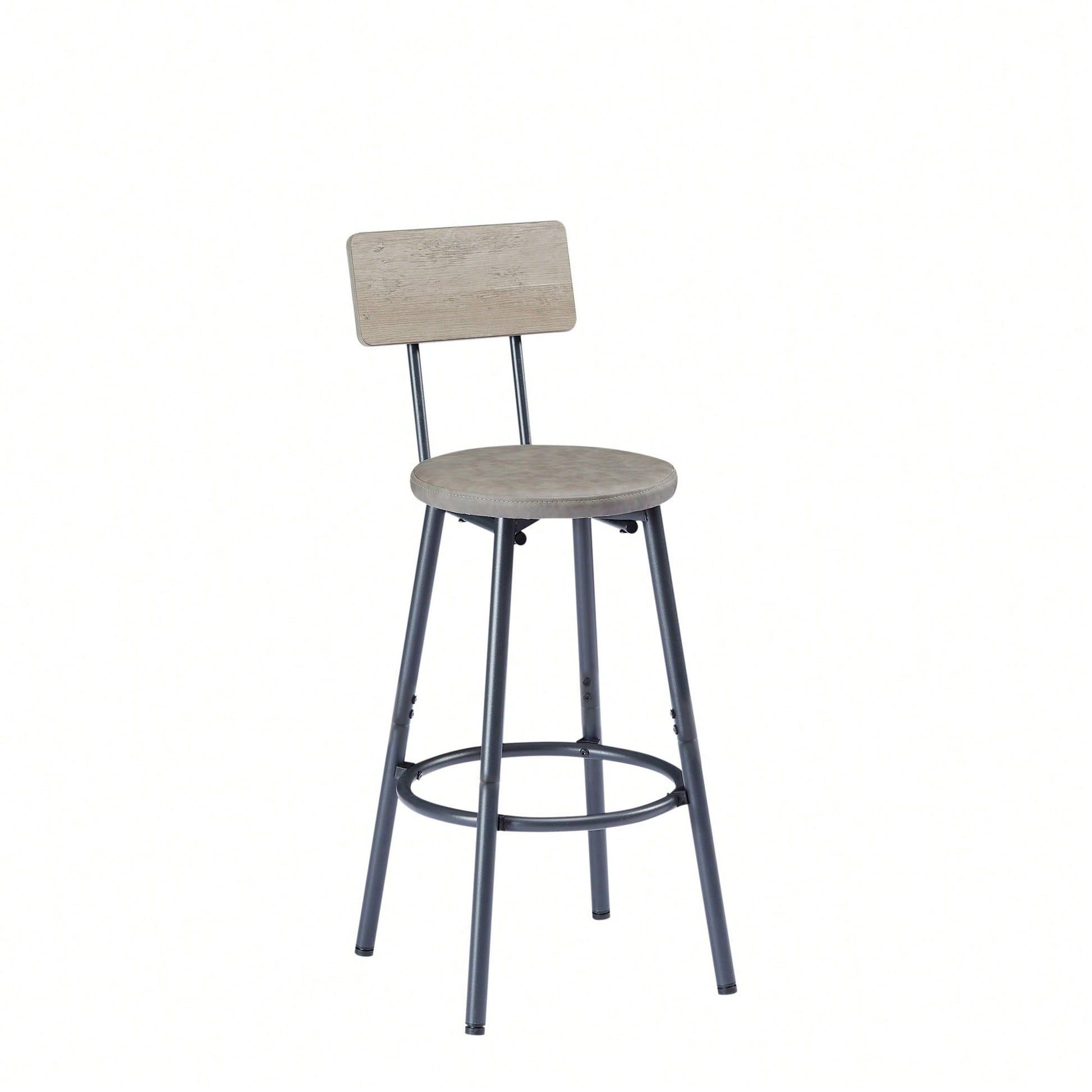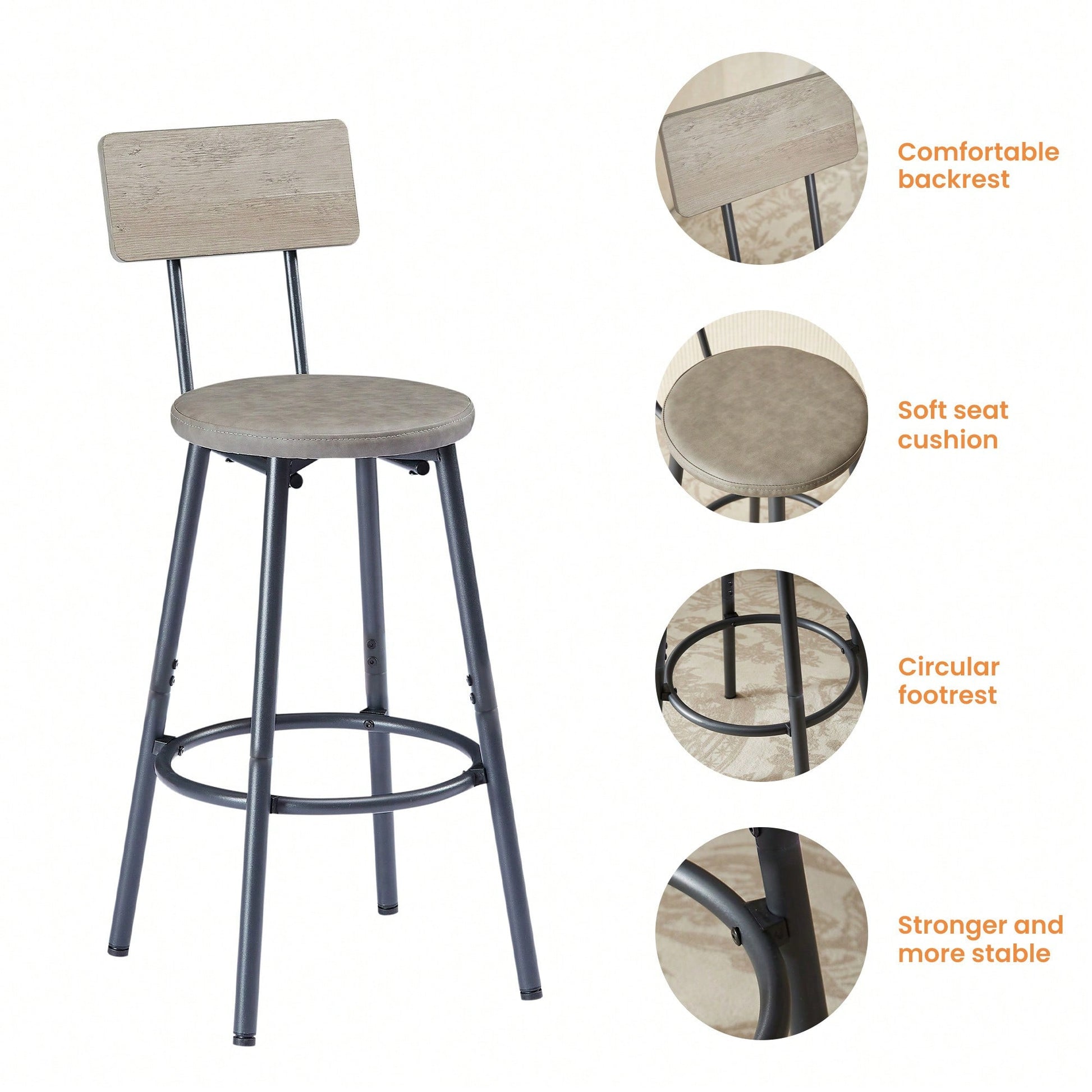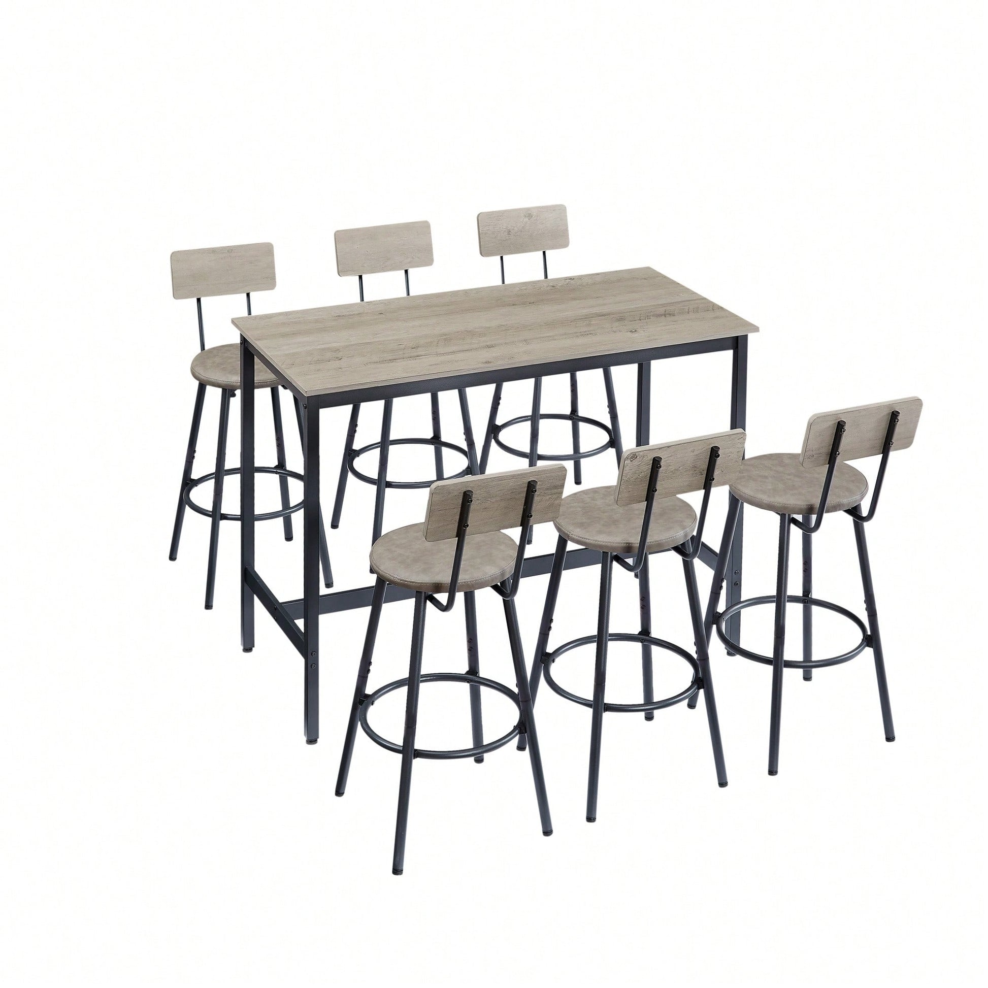 Industrial Style 7 Piece Pub High Dining Set With Rustic Grey Table And 6 PU Leather Bar Chairs For Kitchen And Living Room