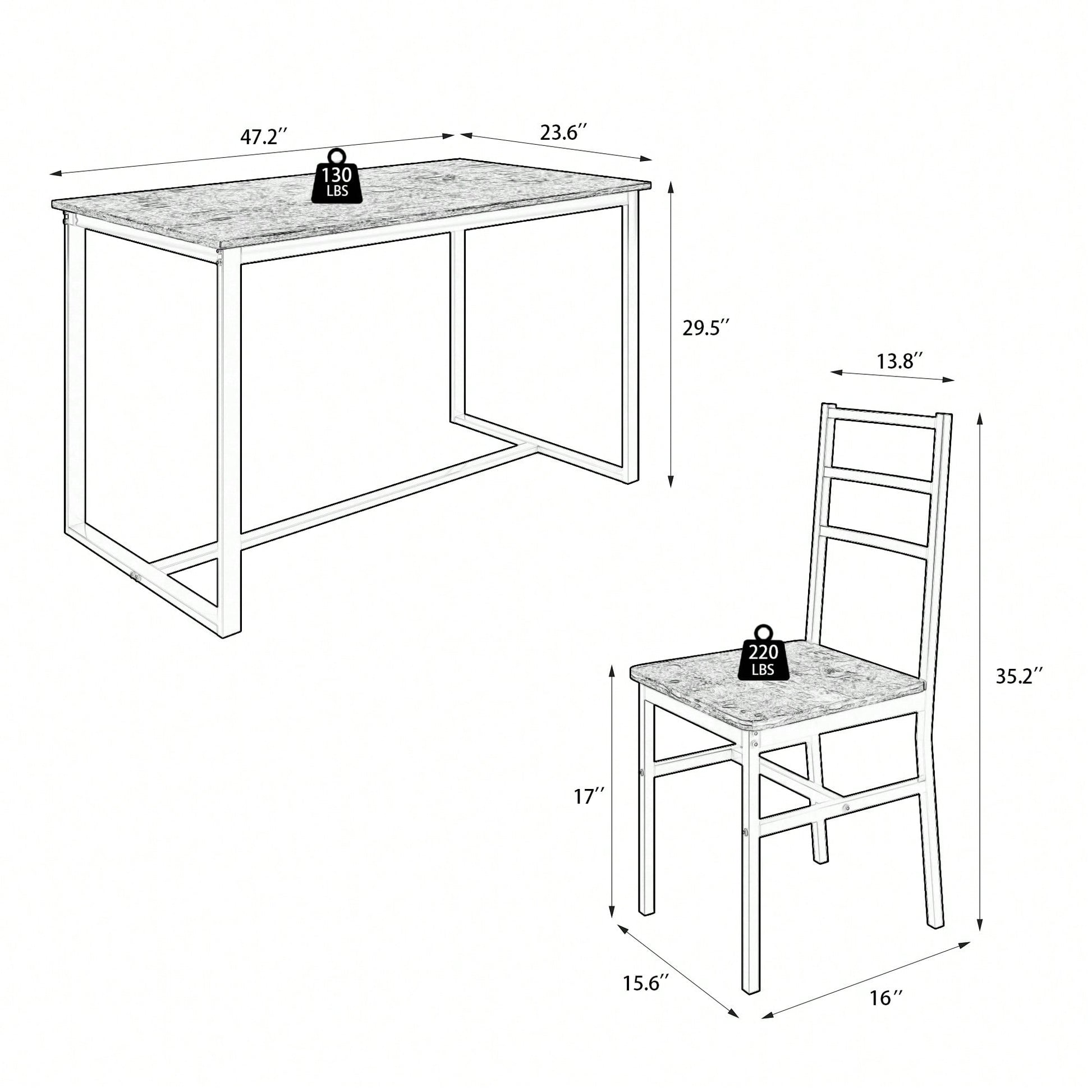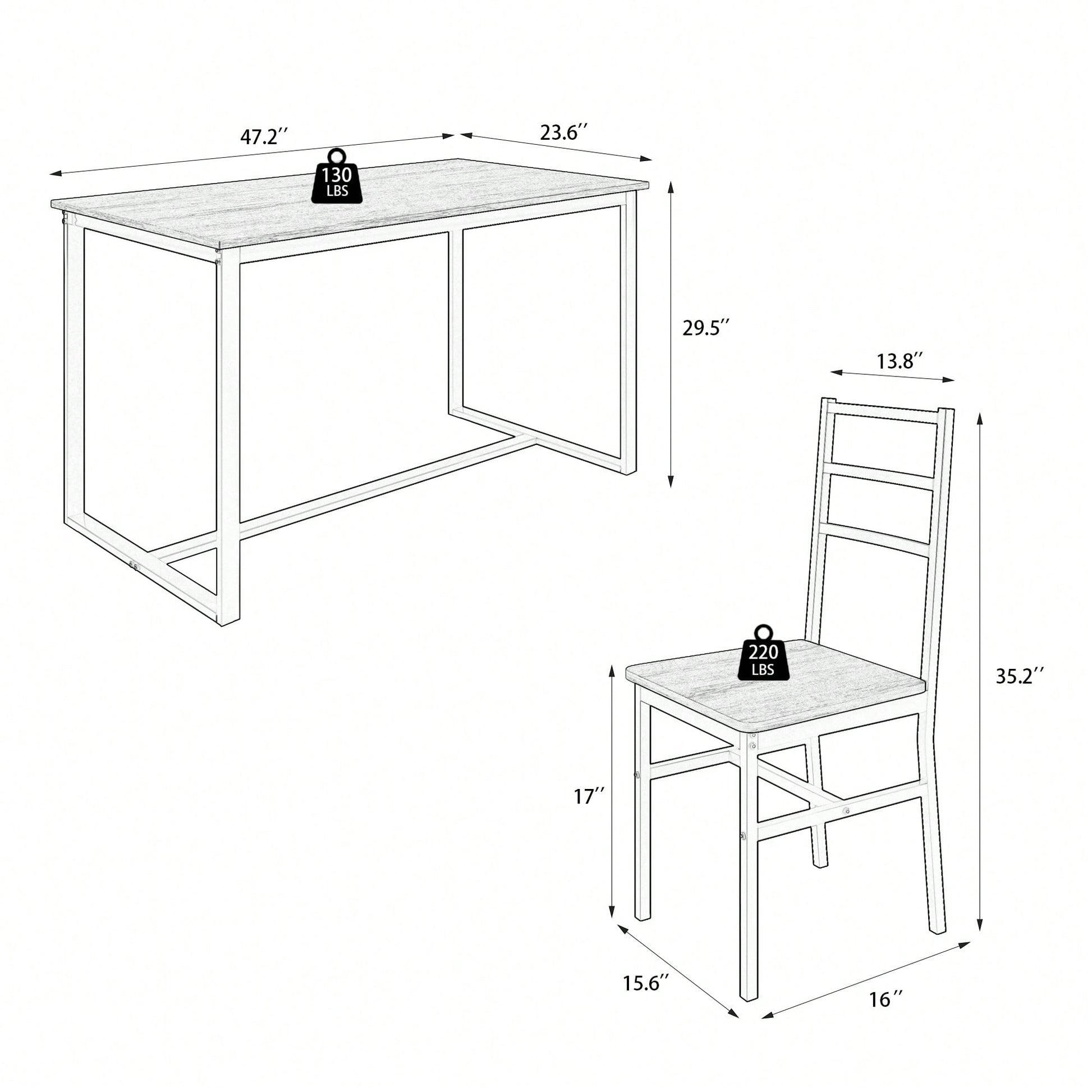Industrial Style Five-Piece Dining Set With Backrest Sturdy Table And Chairs