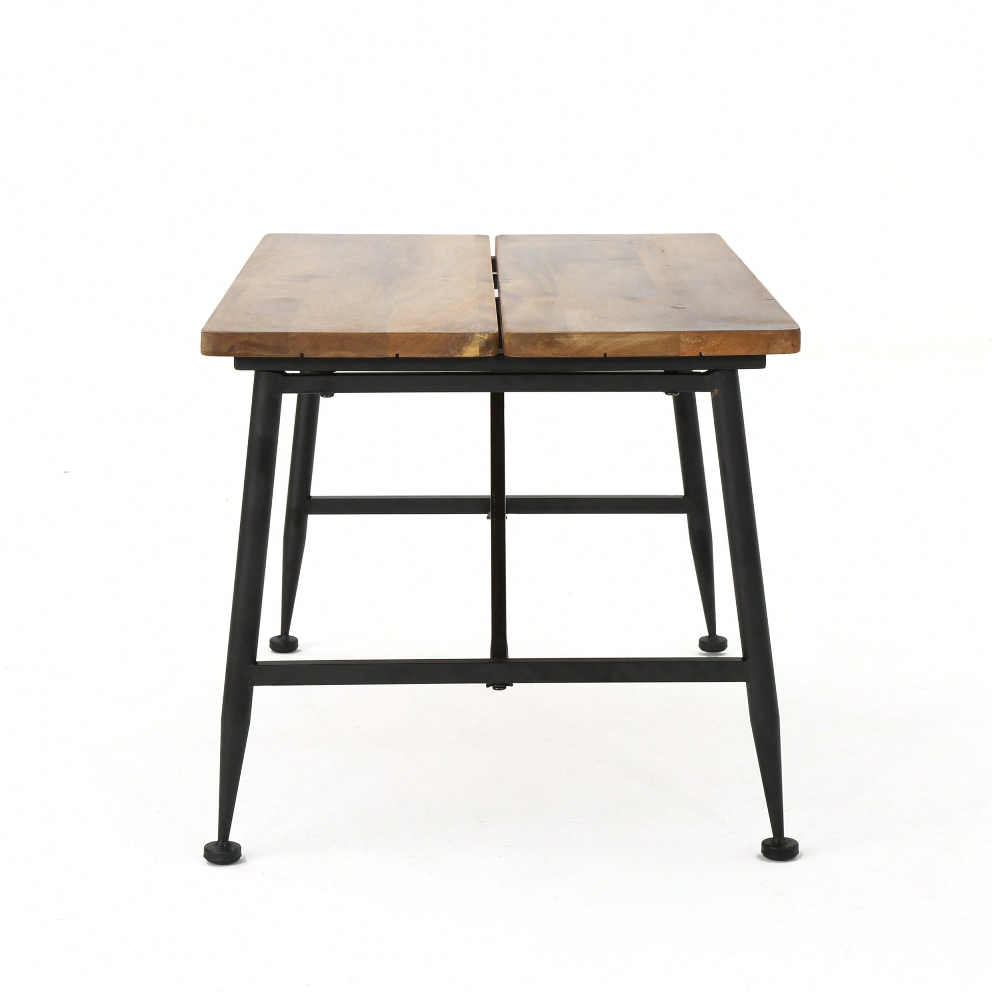 This coffee table features a contemporary industrial design that enhances any outdoor space. Its antique-finished acacia wood top not only adds elegance but also ensures durability, making it a perfect match for your patio furniture. The combination of wood and metal elements creates a stylish focal point for your outdoor gatherings.