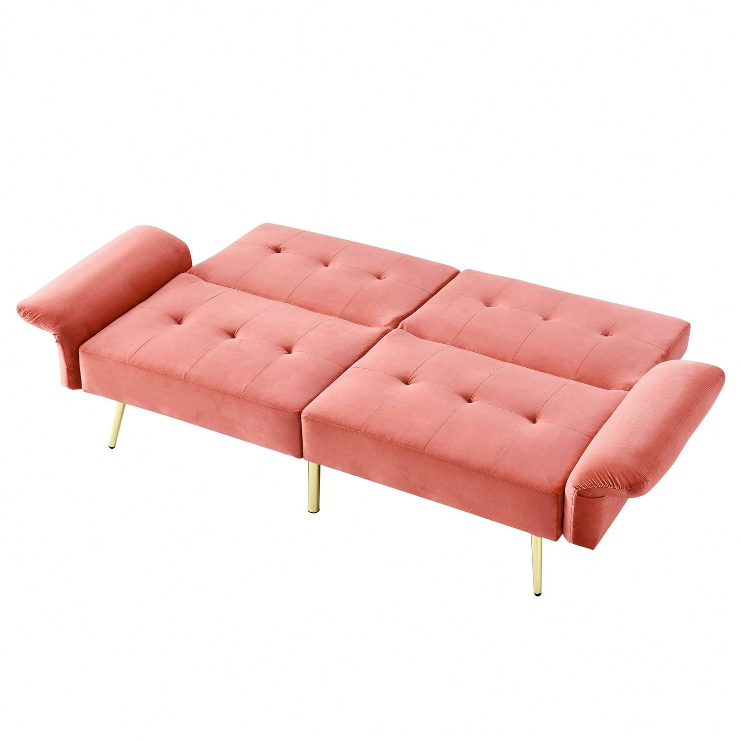 Italian Velvet Futon Sofa Bed, Convertible Sleeper Loveseat Couch With Folded Armrests And Storage Bags For Living Room And Small Space