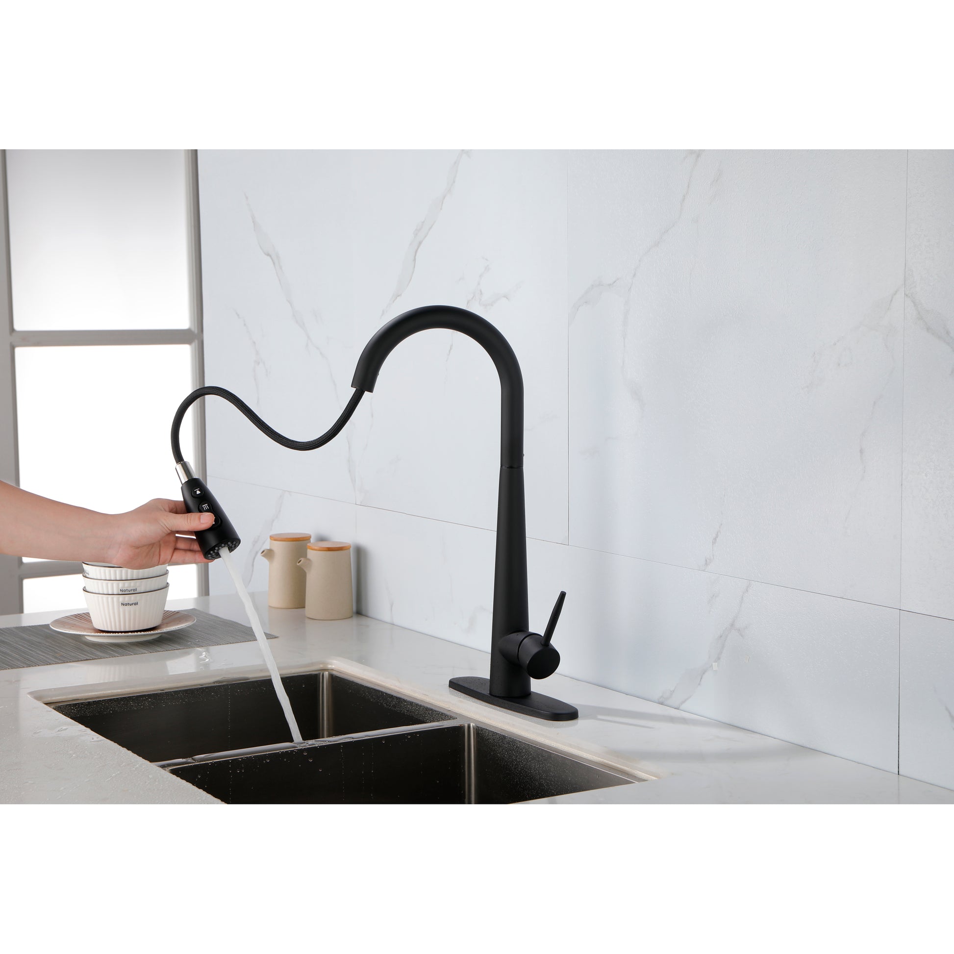 Black Kitchen Faucet with Pull Down Sprayer - Matte Finish, Single Handle, Fingerprint Resistant, Deck Mount Sink Faucet