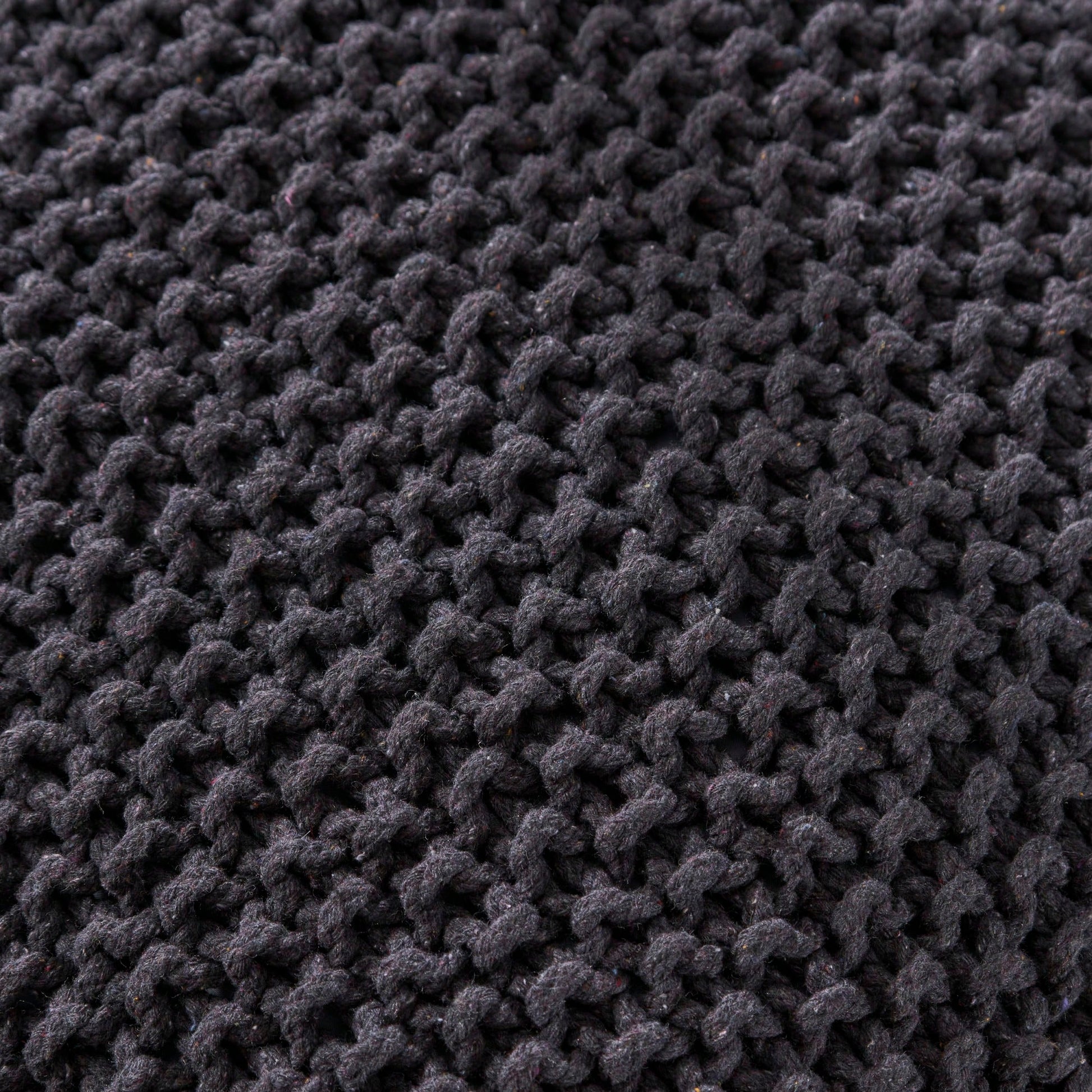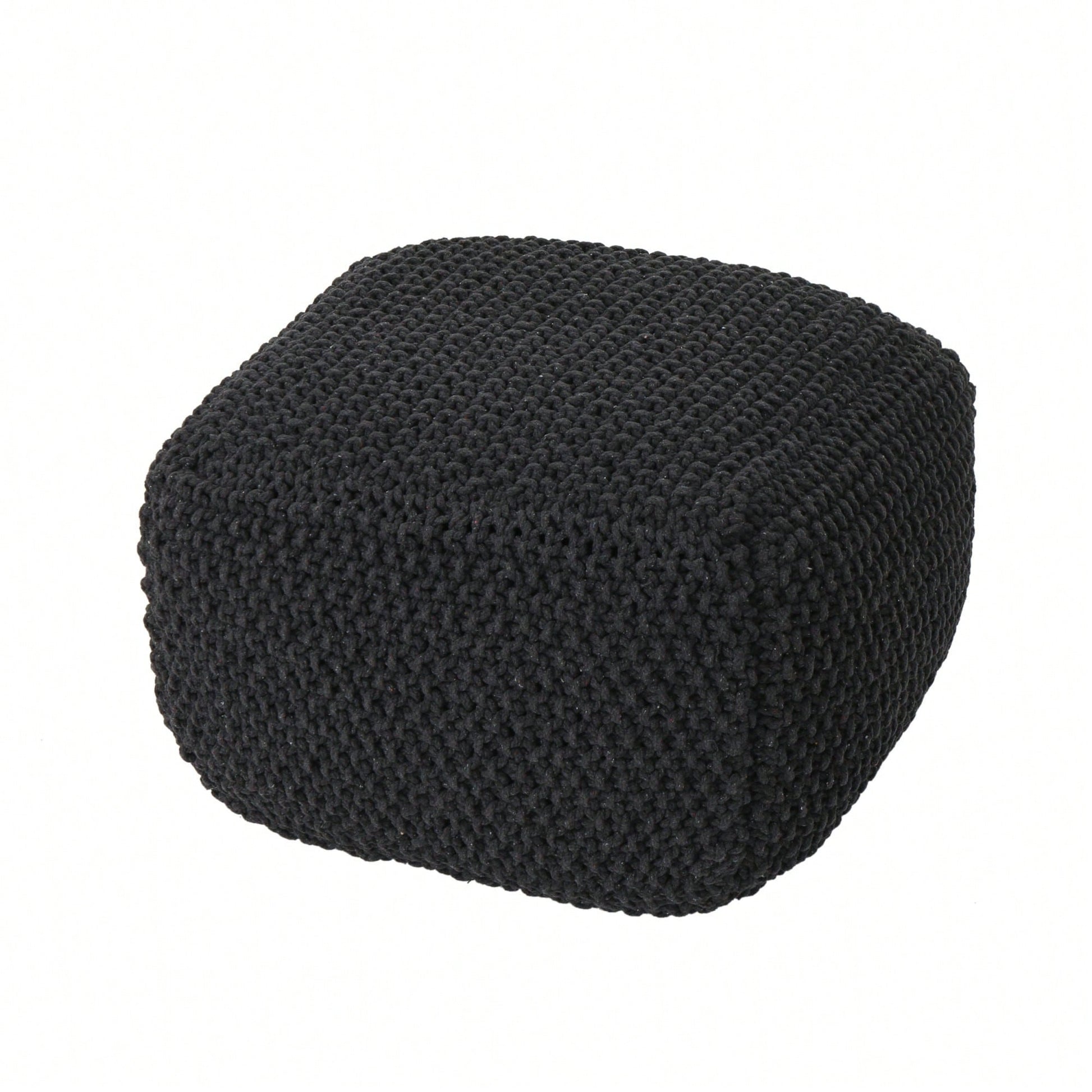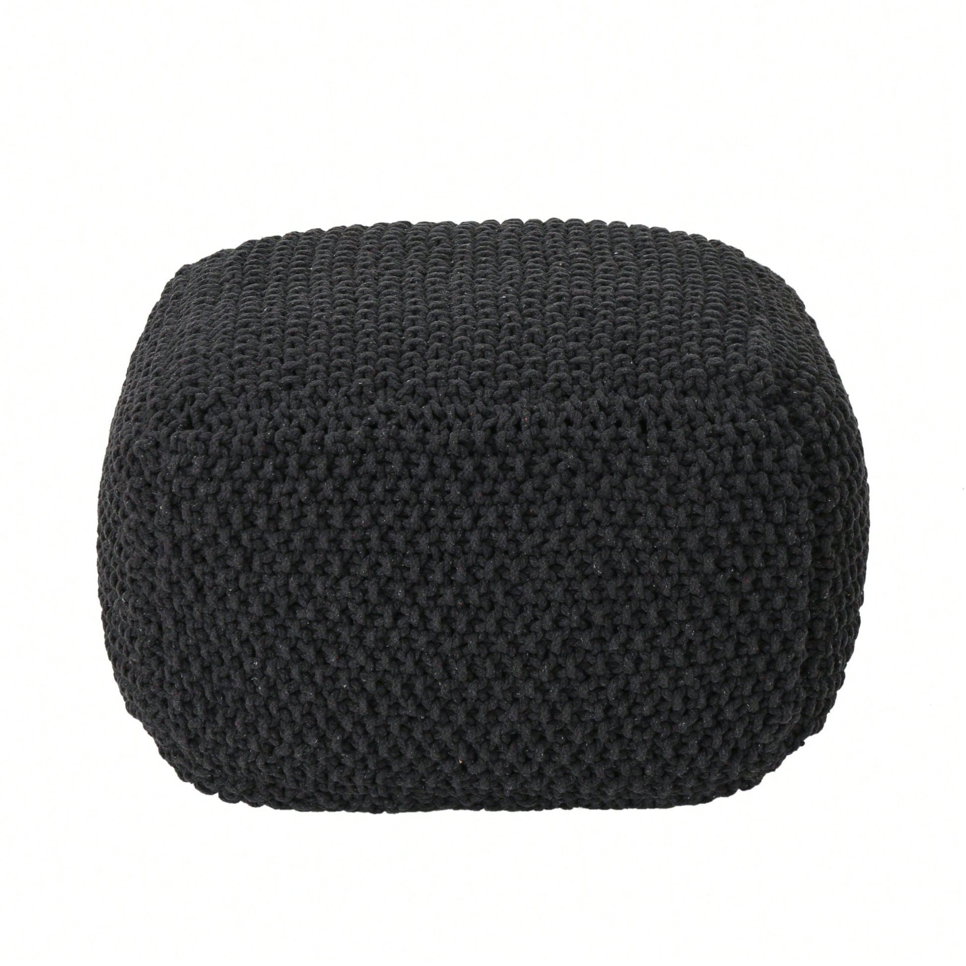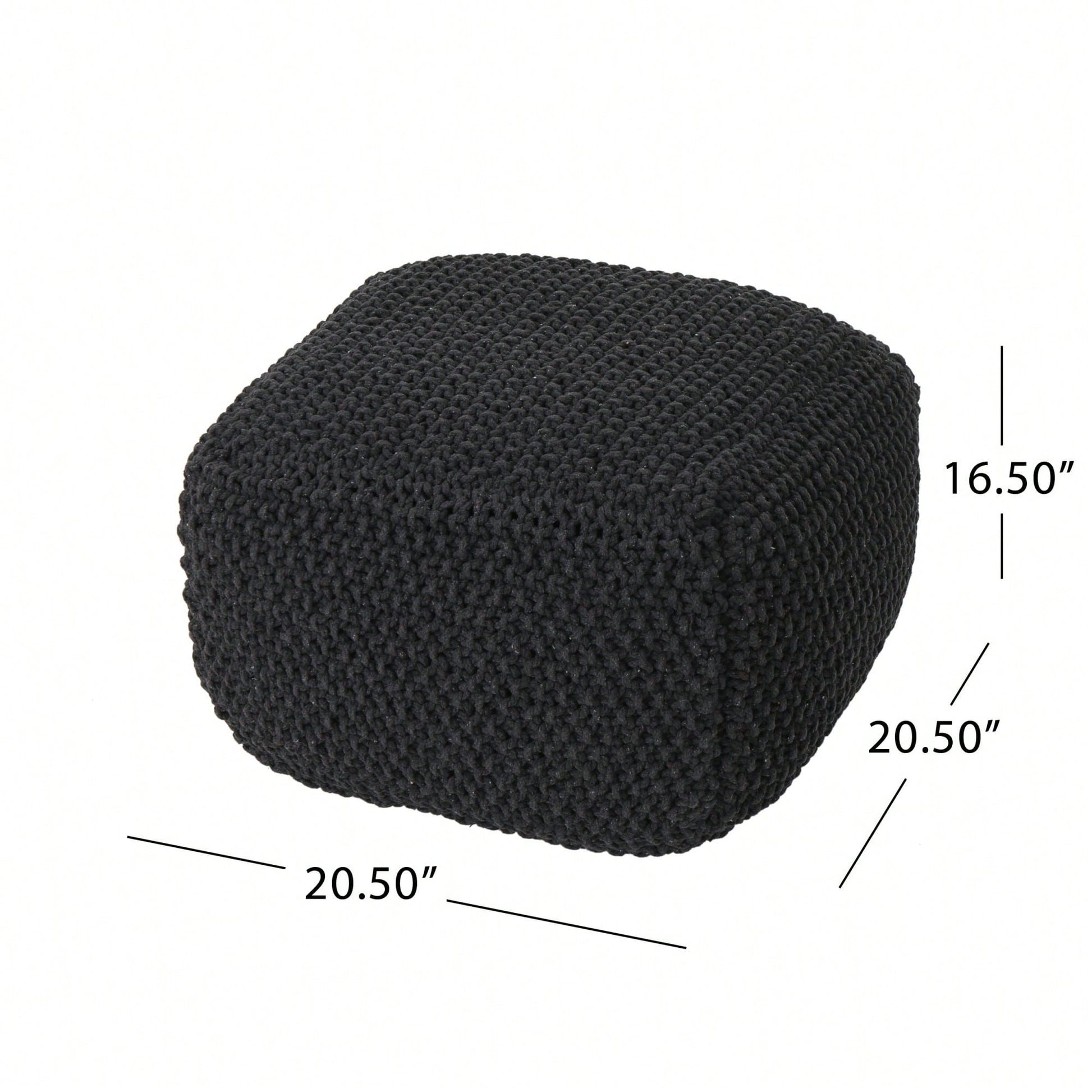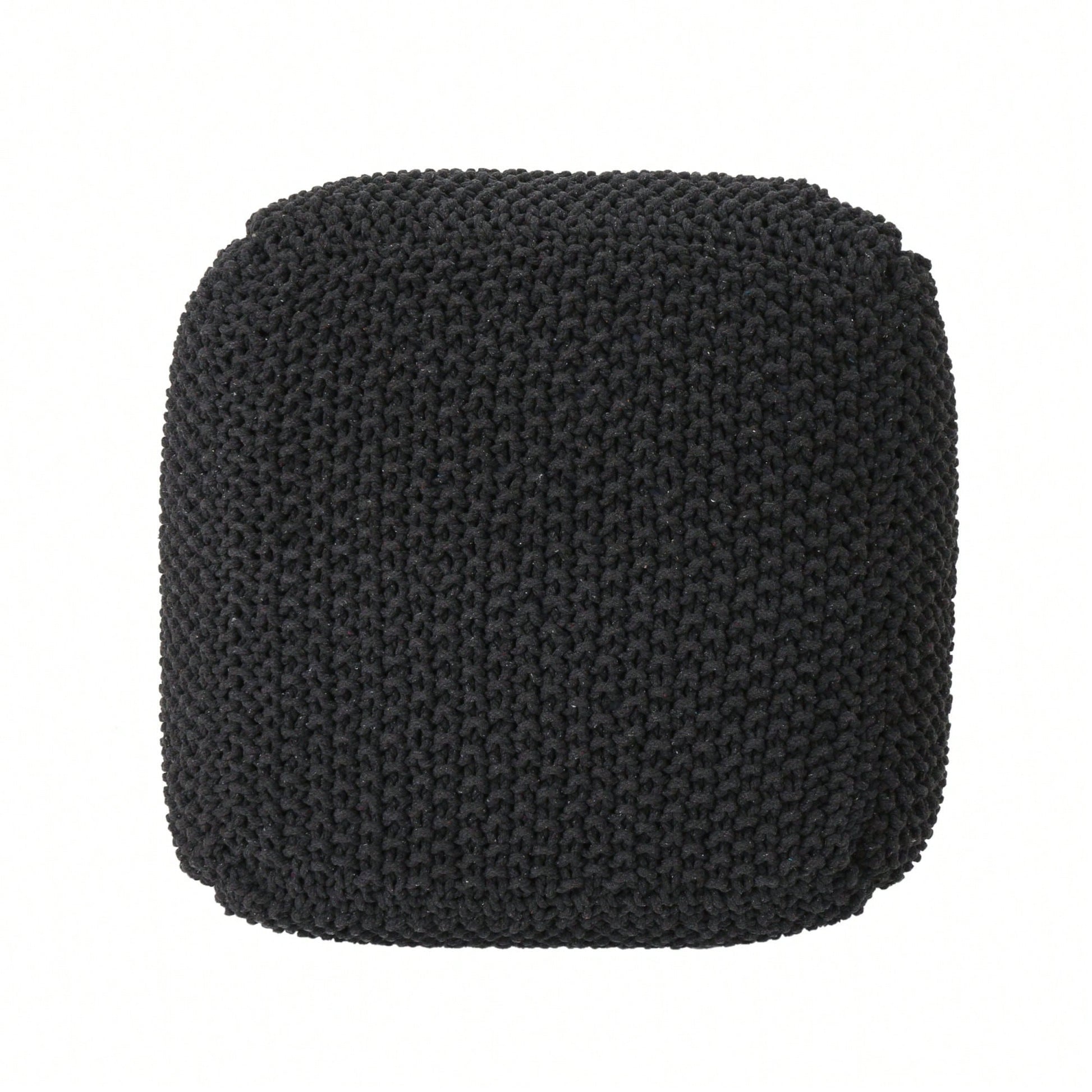 Knitted Cotton Square Pouf Cube Dark Grey 20x20x16 For Extra Seating Or Footrest