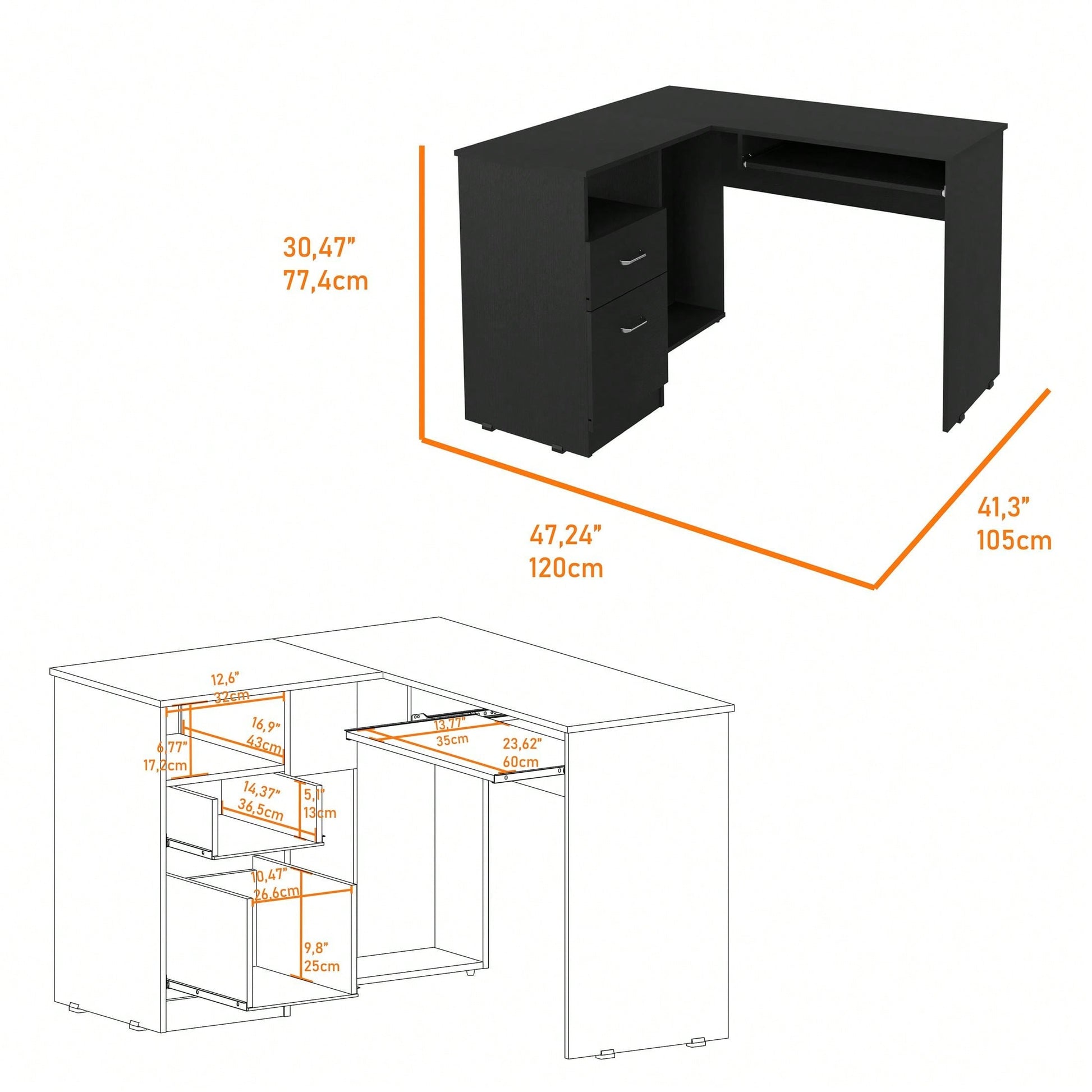 1. L shape top surface (41.3"W x 20" D on one side and 47.2"W x 20" on the other)