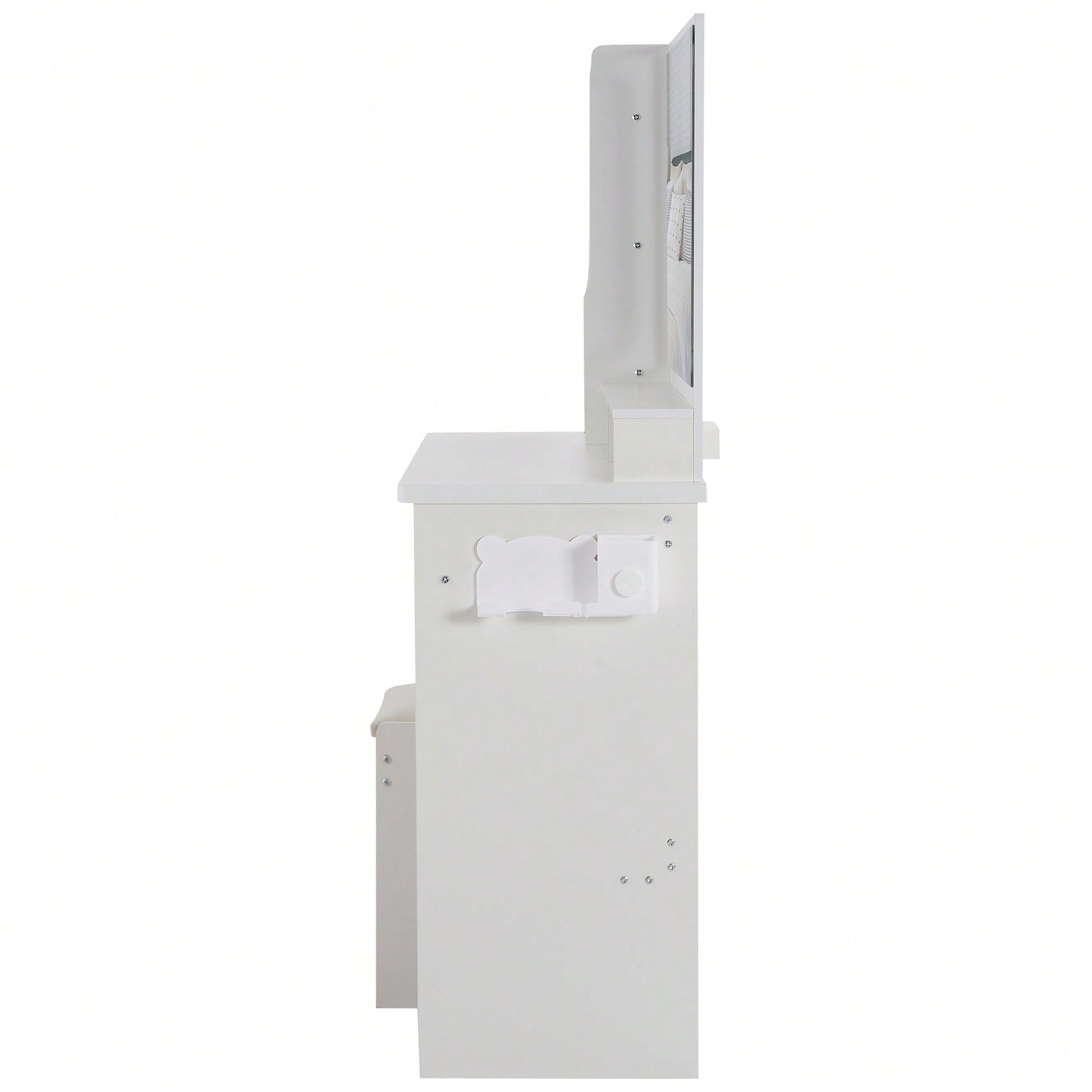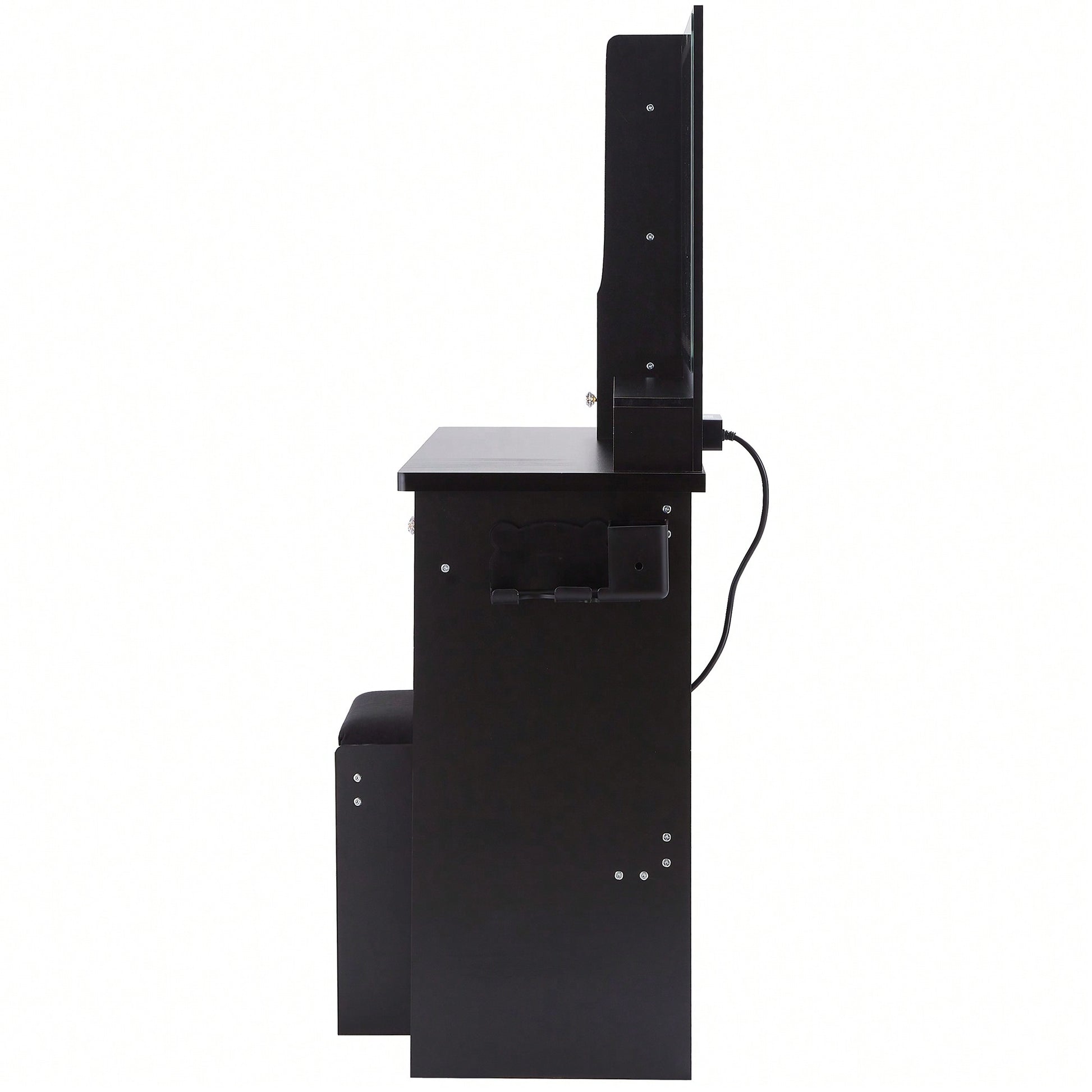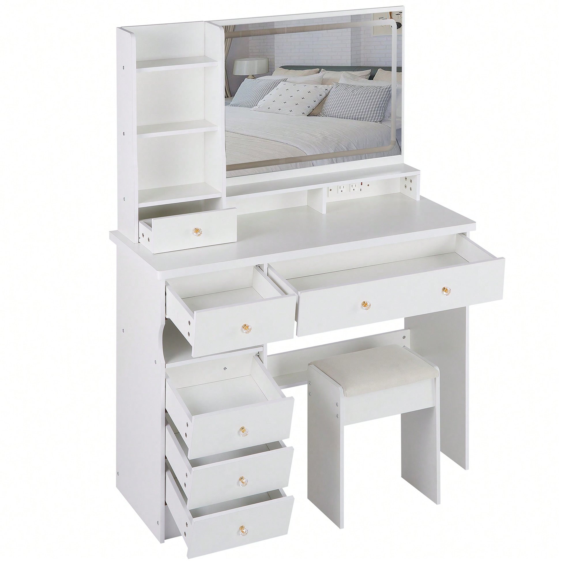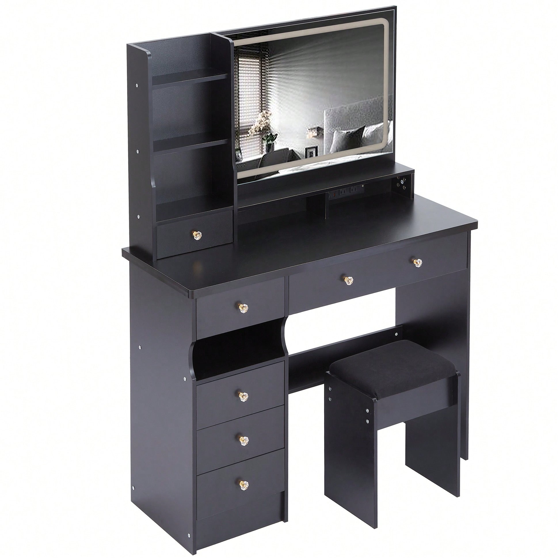 Large Vanity Table Set with Cushioned Stool, 2 AC Outlets, 2 USB Ports, Touch Control LED Mirror, 3 Color Switch, Hair Dryer Stand
