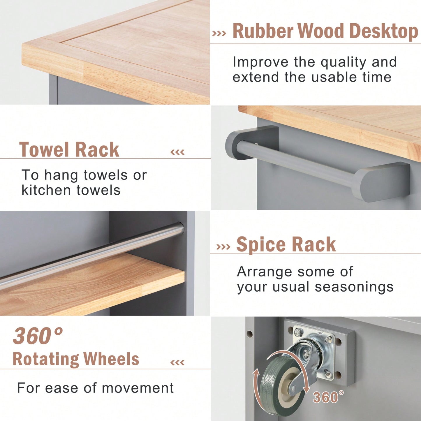 Mobile Kitchen Island Cart with Storage and Wood Top - Rolling Two-Sided Cart with Wine Rack, Spice Rack, Drawers and Open Compartments