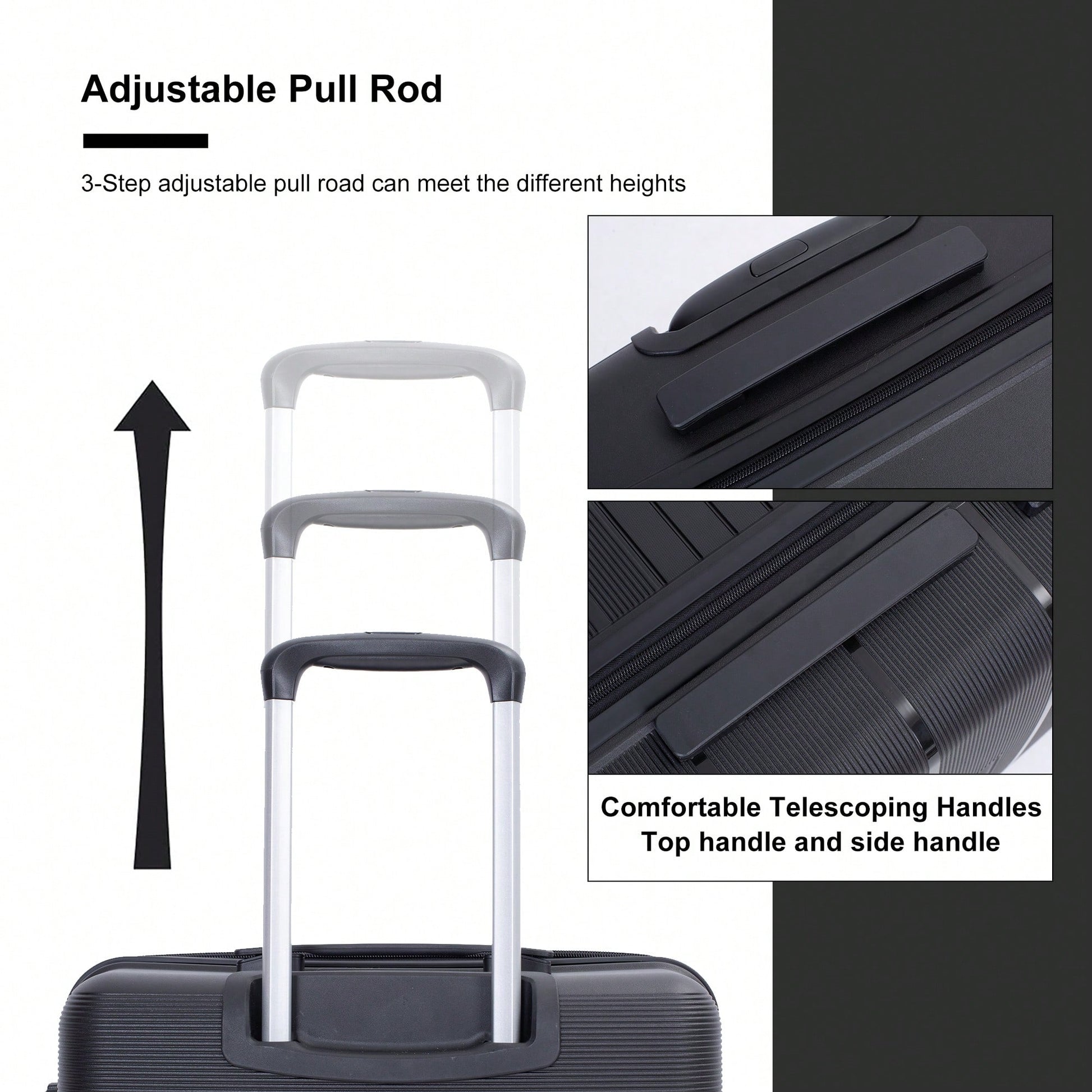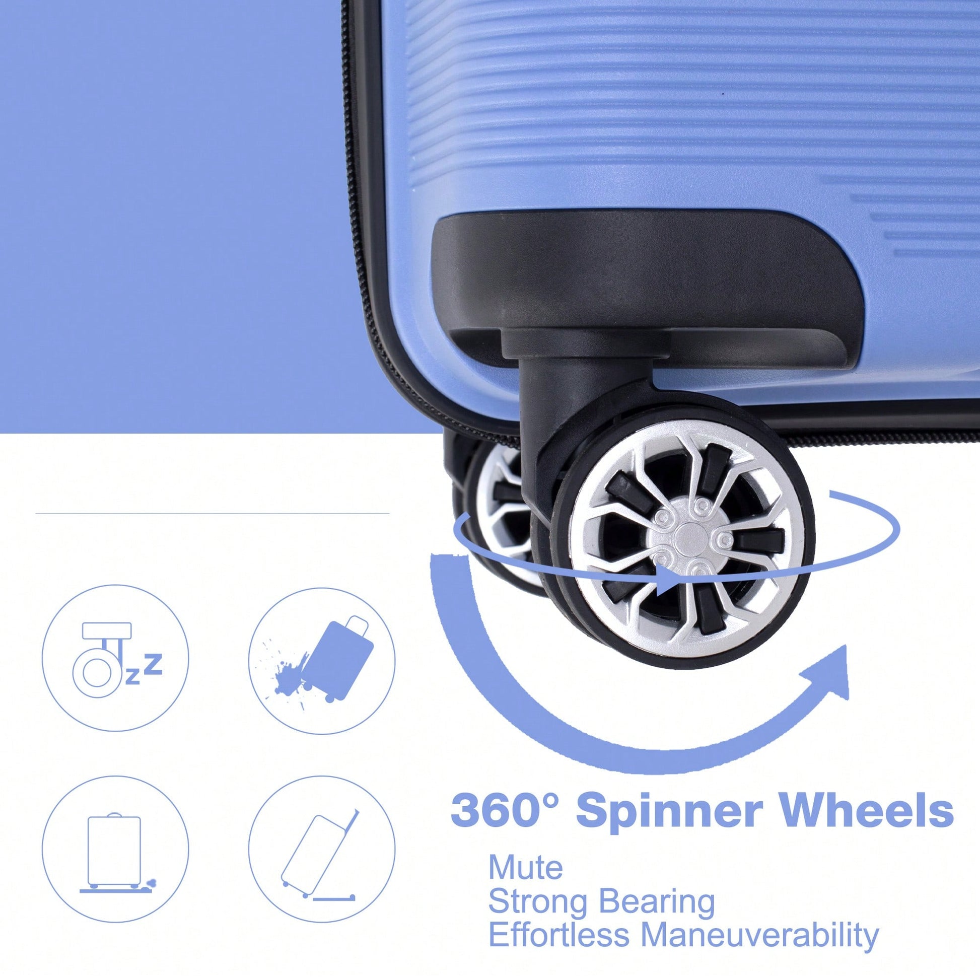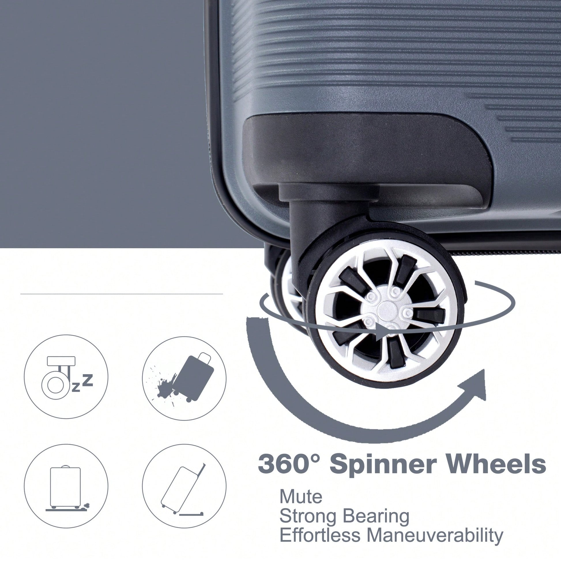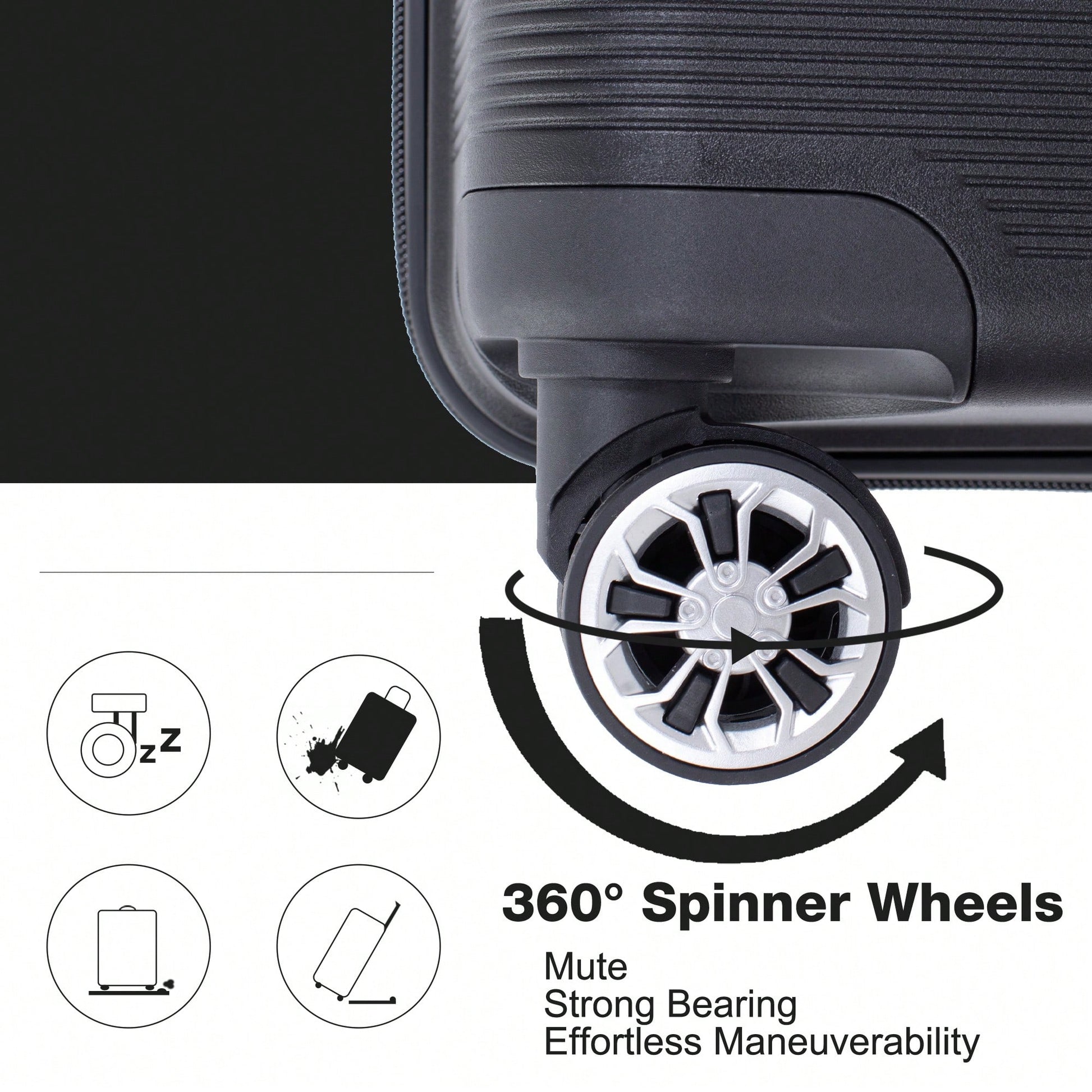 An adjustable and sturdy telescoping handle makes navigating through tight spaces a breeze, ensuring a comfortable carrying experience. The luggage is equipped with 360° double spinner wheels that provide smooth, effortless maneuverability, allowing you to glide through the airport with ease.