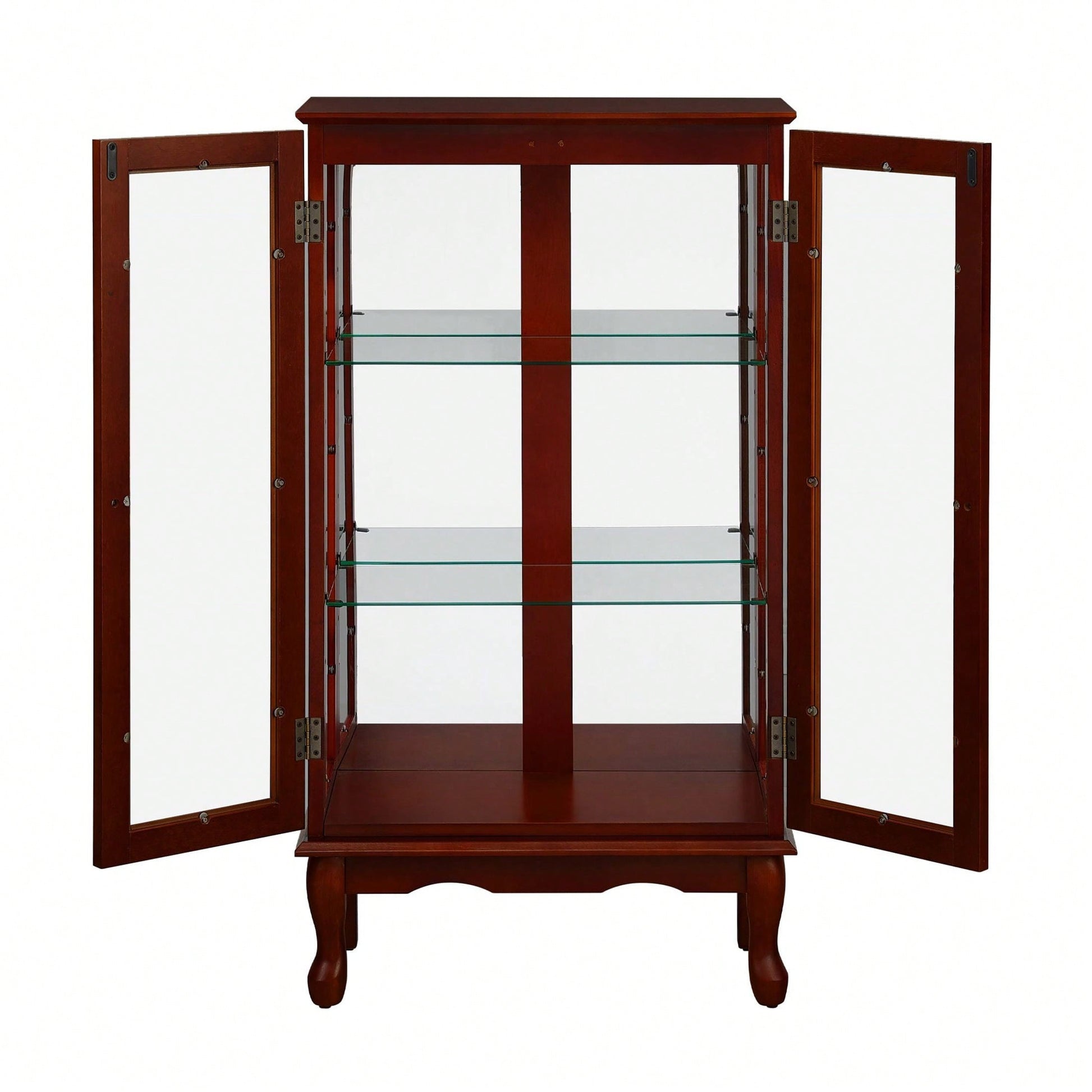 Lighted Curio Diapaly Cabinet With Adjustable Shelves And Mirrored Back Panel, Tempered Glass Doors ( 3 Tier)