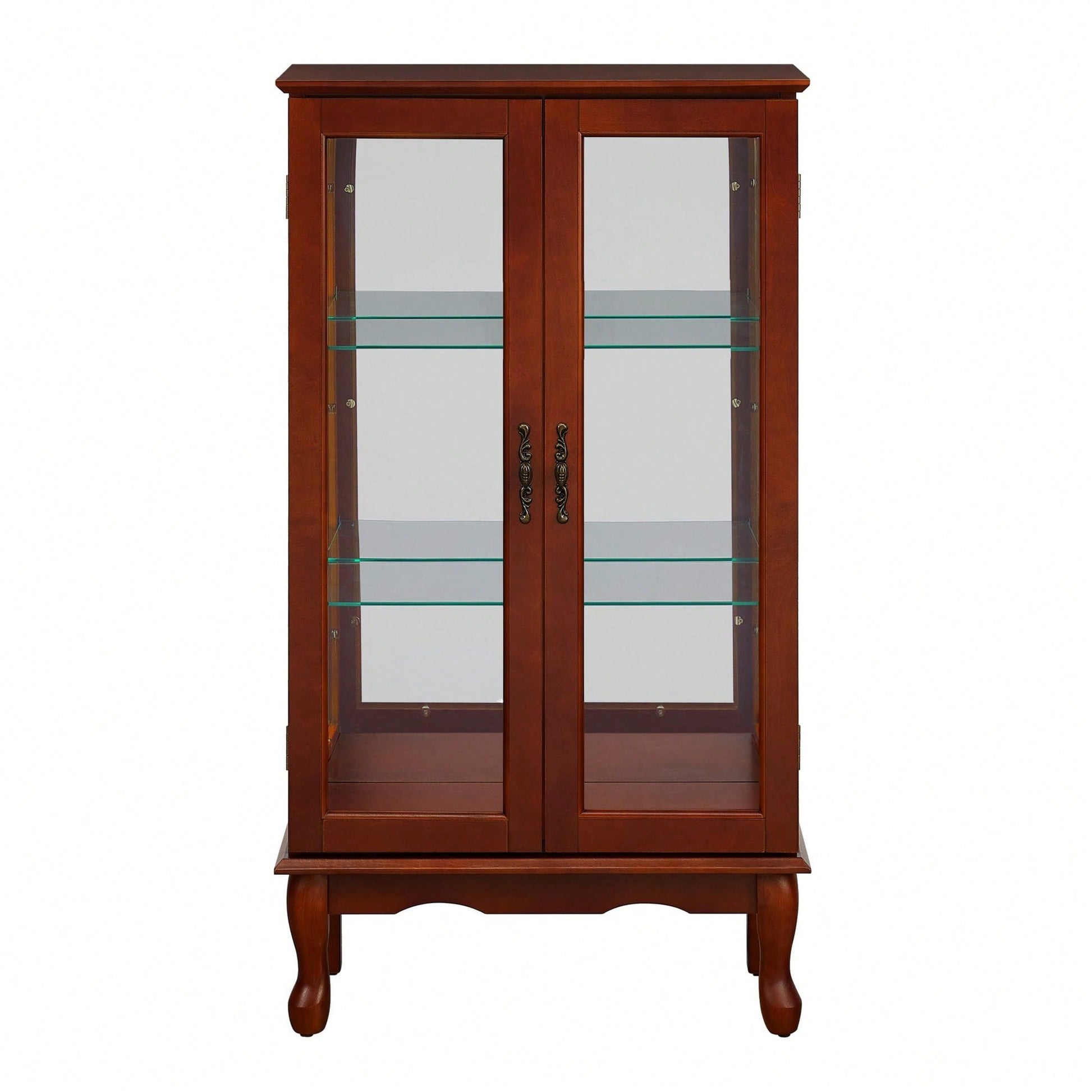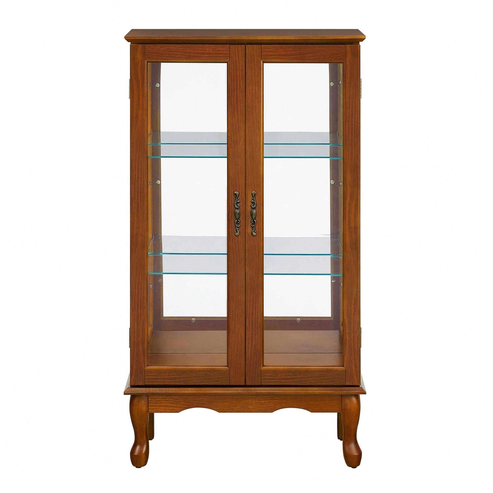 5. Storage cabinet with tempered glass shelves:This curio cabinet with glass doors has a total of 3 shelves which provide plenty of flexible storage space. 1 are fixed-in-place wood shelves, and the other 2 are tempered glass shelves which can be adjusted, and each shelf holds up to 15 lbs.