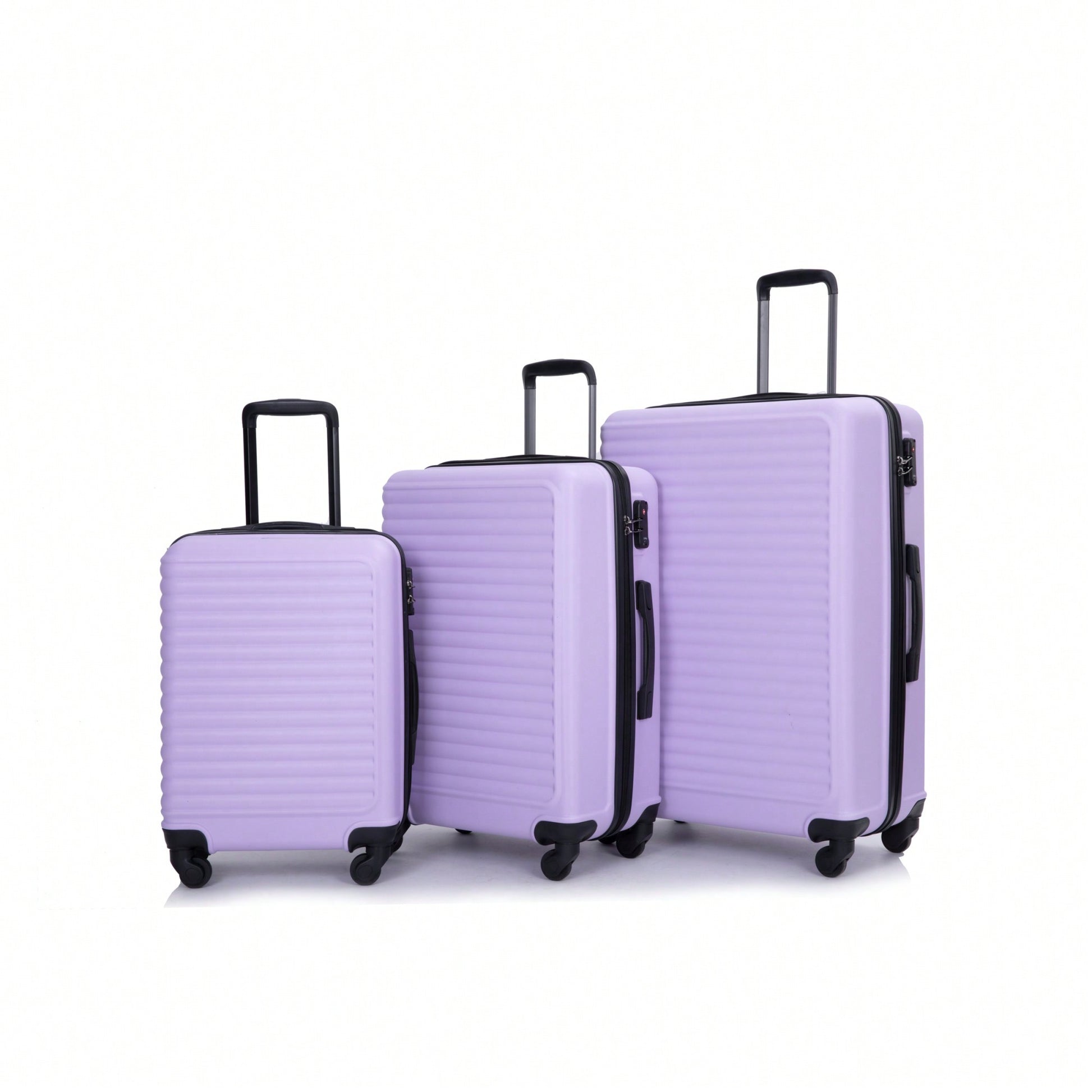 Lightweight 3-Piece ABS Luggage Set With Spinner Wheels And TSA Lock - Lavender Purple Travel Case (20/24/28)