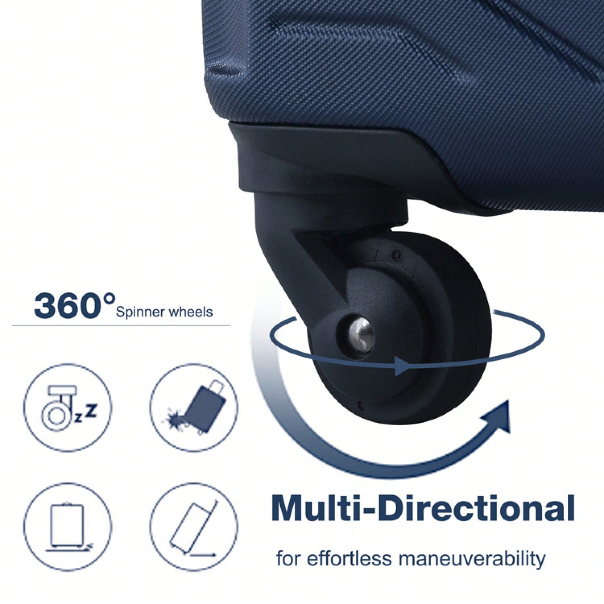 Lightweight 3-Piece ABS Luggage Set With Spinner Wheels, TSA Lock & Double Hooks - 20"/24"/28" - Stylish Blue Travel Suitcases