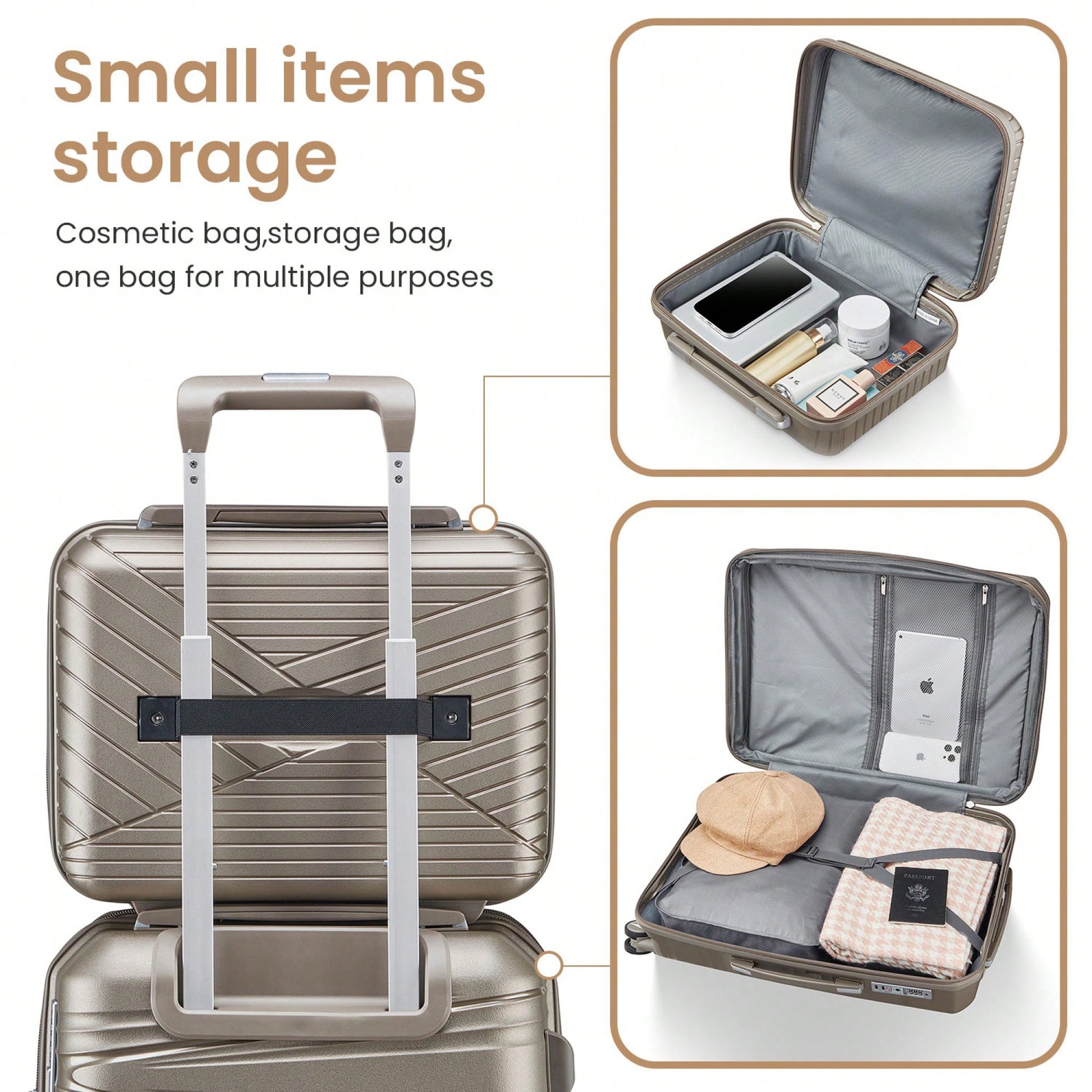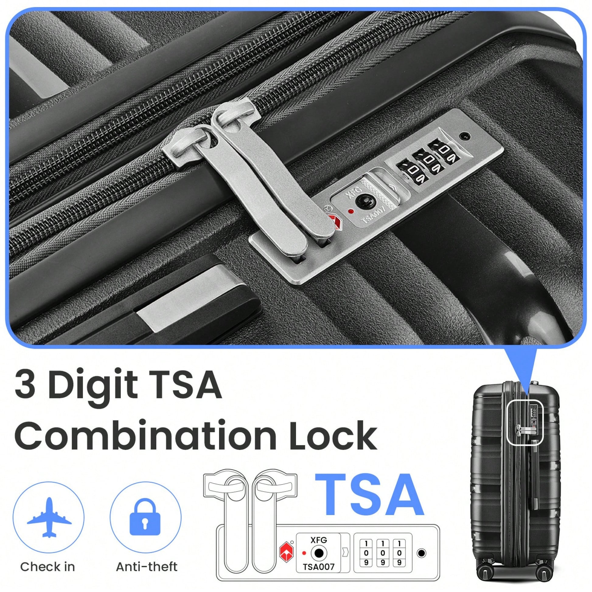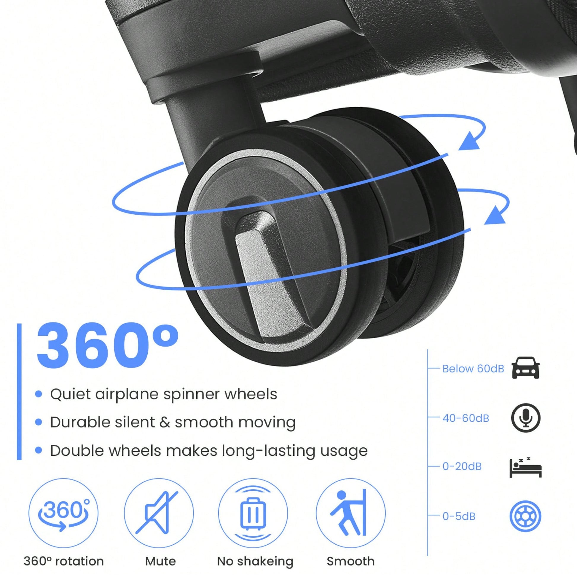 This lightweight luggage set is crafted from durable and friendly PP material, ensuring resilience and the ability to return to its original shape after impact. The 4 piece set is designed for versatility, with a 14 inch suitcase ideal for daily essentials, a 20 inch carry-on for business trips, and expandable 24 and 28 inch luggage for longer journeys. Each suitcase features a TSA-approved lock for added security during travel, allowing TSA agents to inspect your luggage without damaging the lock. The 360° spinner wheels provide smooth and silent movement, making it easy to navigate through airports and other travel environments. The fully lined interior includes adjustable tie-down straps to keep your belongings secure, while reinforced padded handles offer comfort when lifting or carrying.