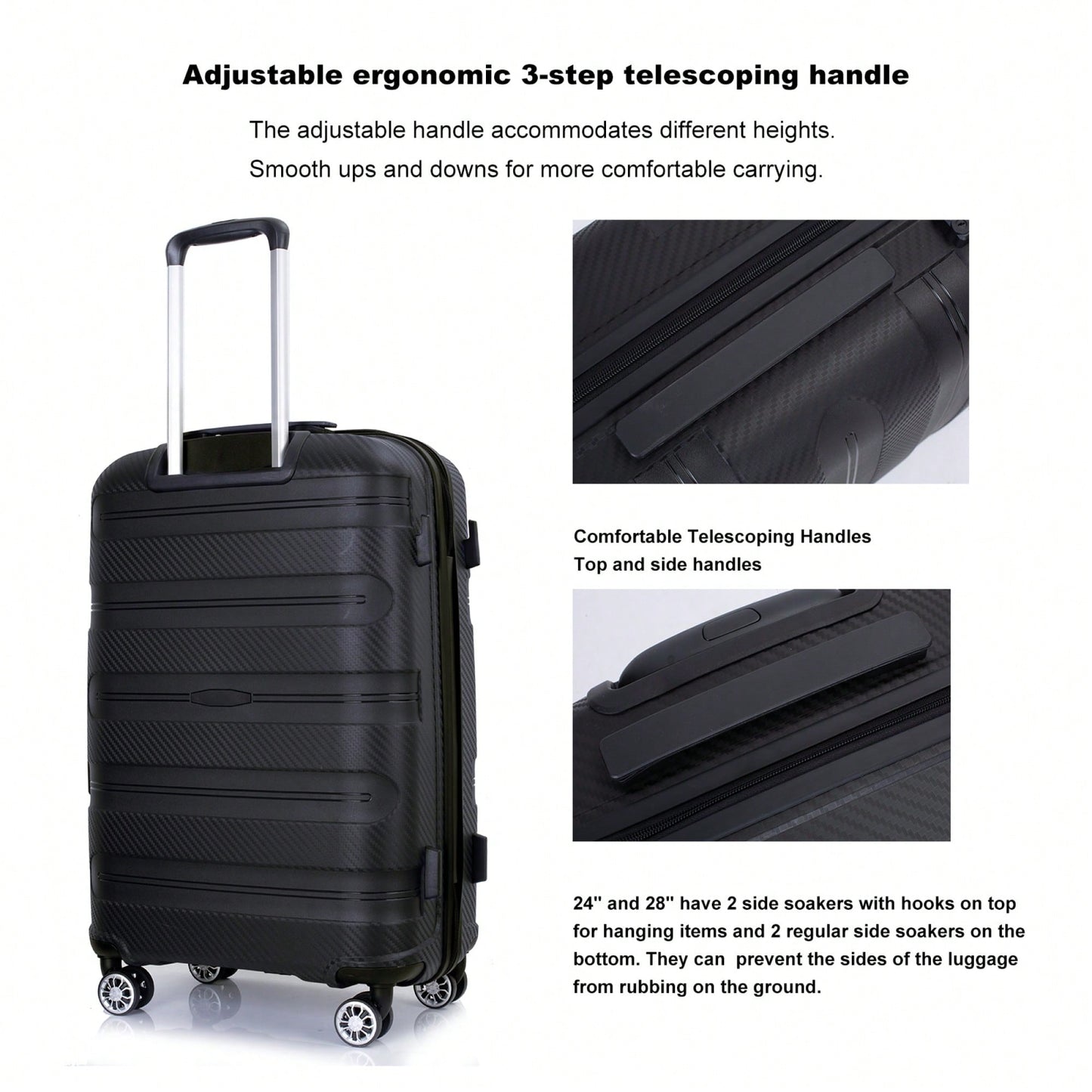Equipped with a TSA-approved lock, this luggage set simplifies the customs inspection process, allowing officials to check your bag without breaking the lock. The adjustable and sturdy ergonomic 3-step telescoping handle accommodates users of different heights, making it easier to carry and maneuver through crowded spaces. Additionally, the 360° double spinner wheels allow for smooth navigation on various surfaces, making your travel experience more convenient.