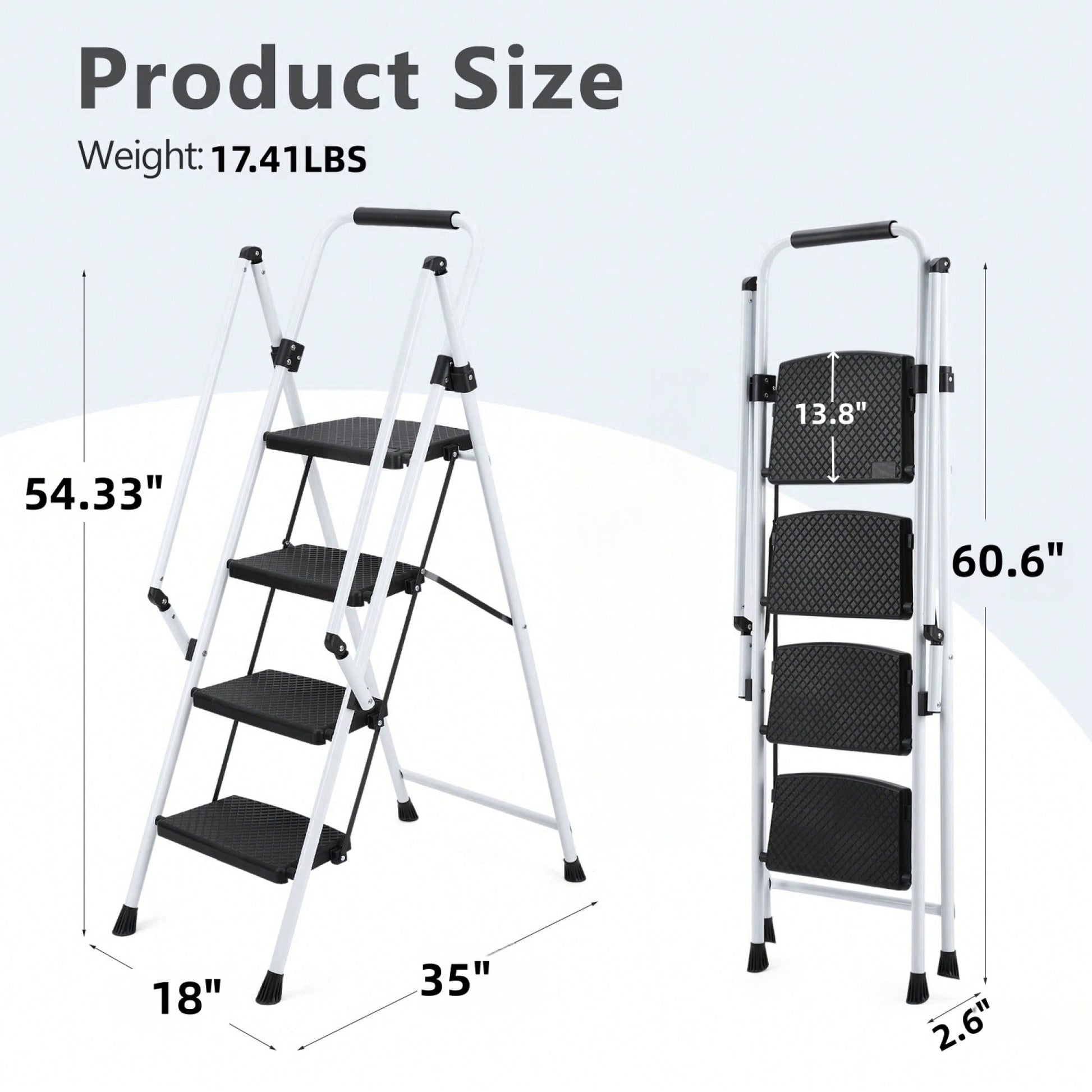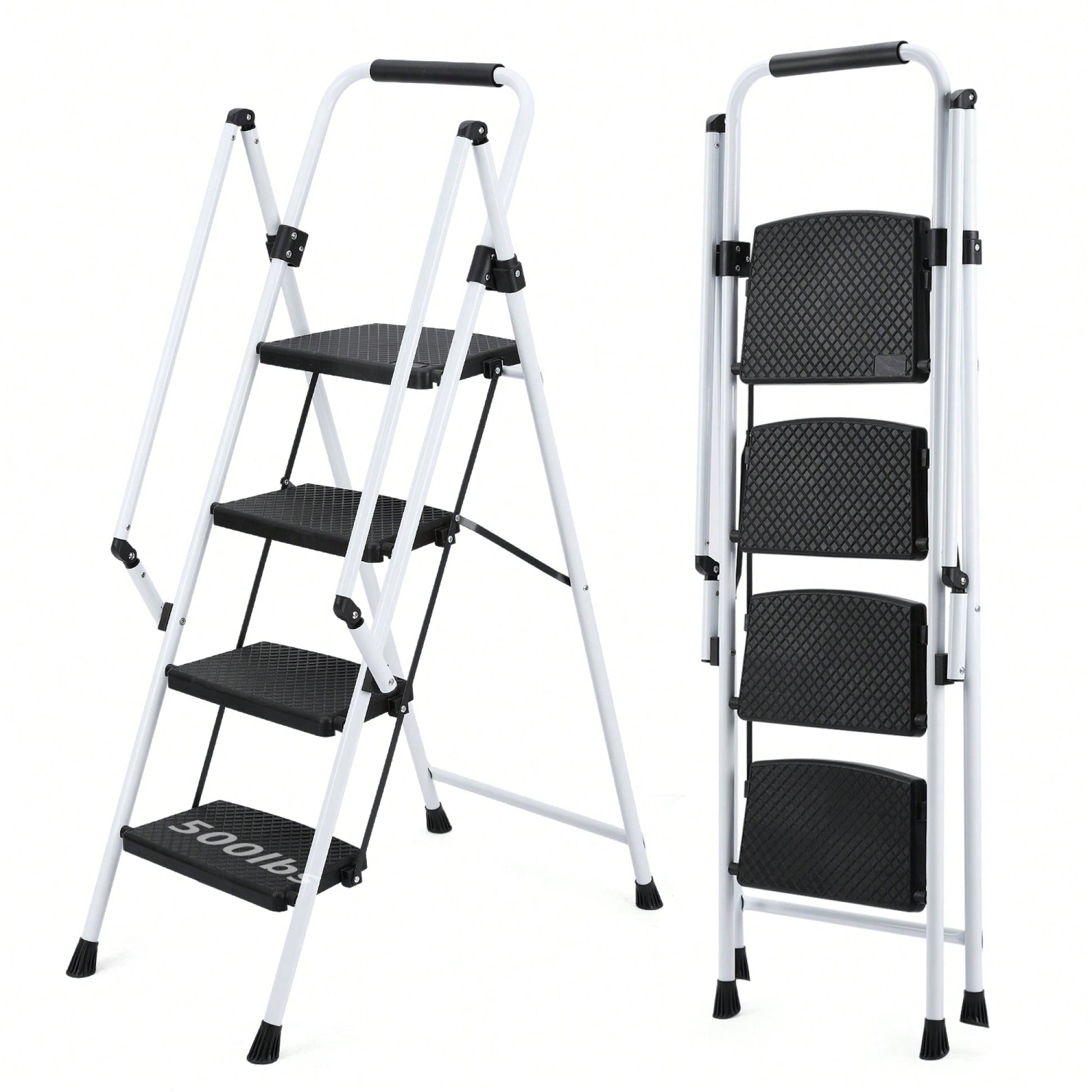 Lightweight Folding Four-Step Ladder With Anti-Skid Pedals And Safety Handle For Home Kitchen Office Use
