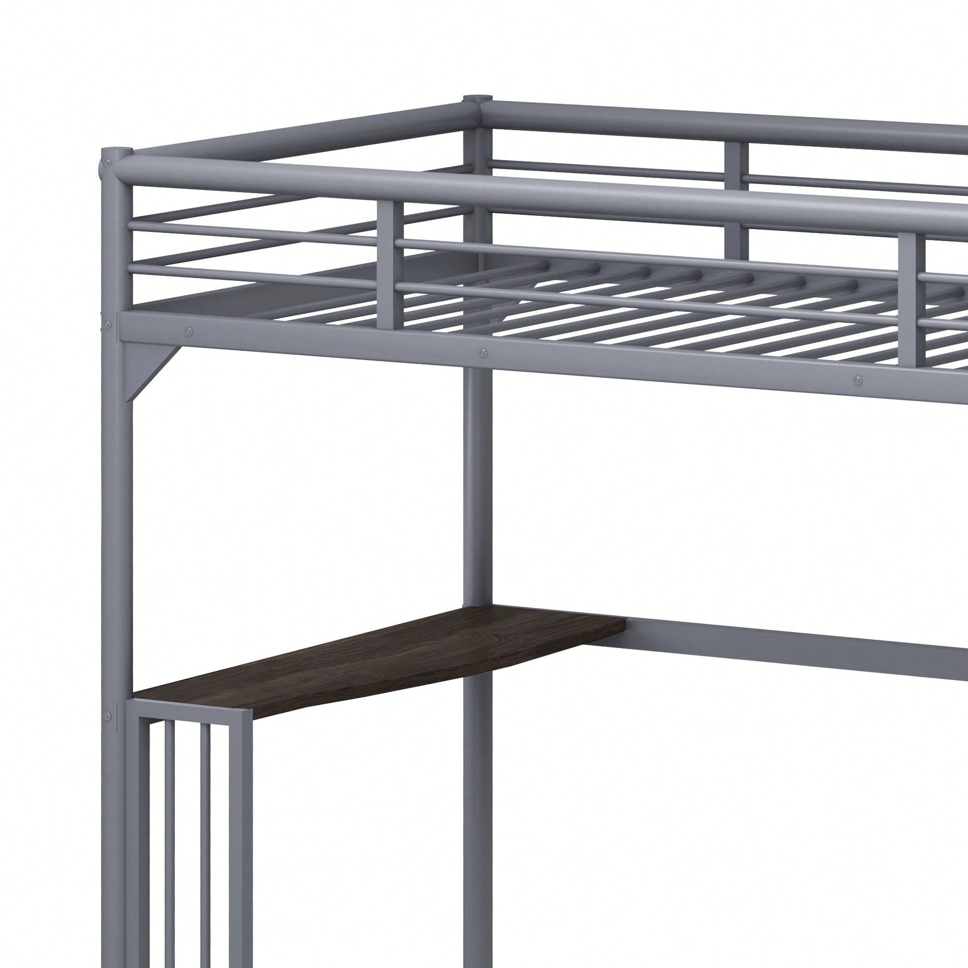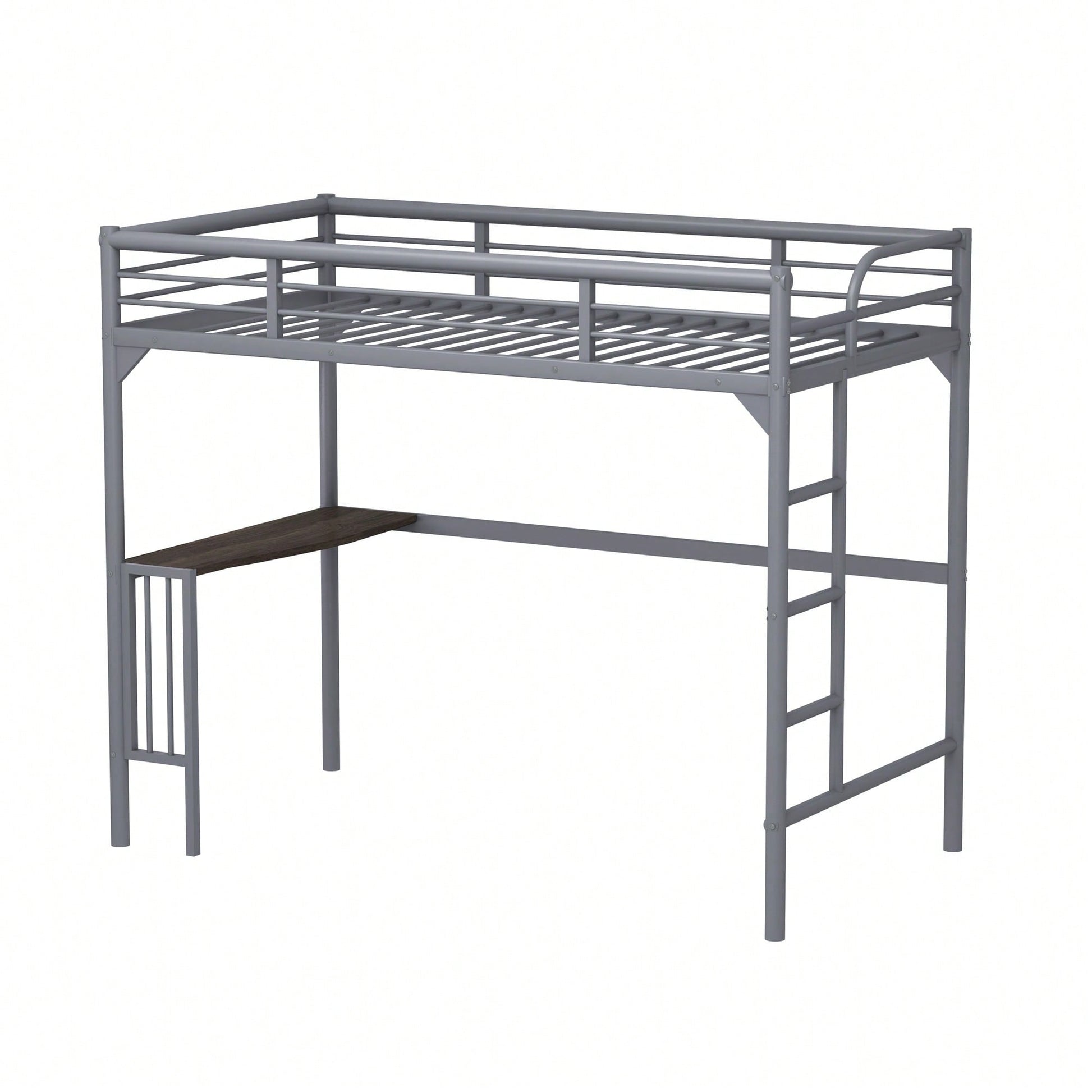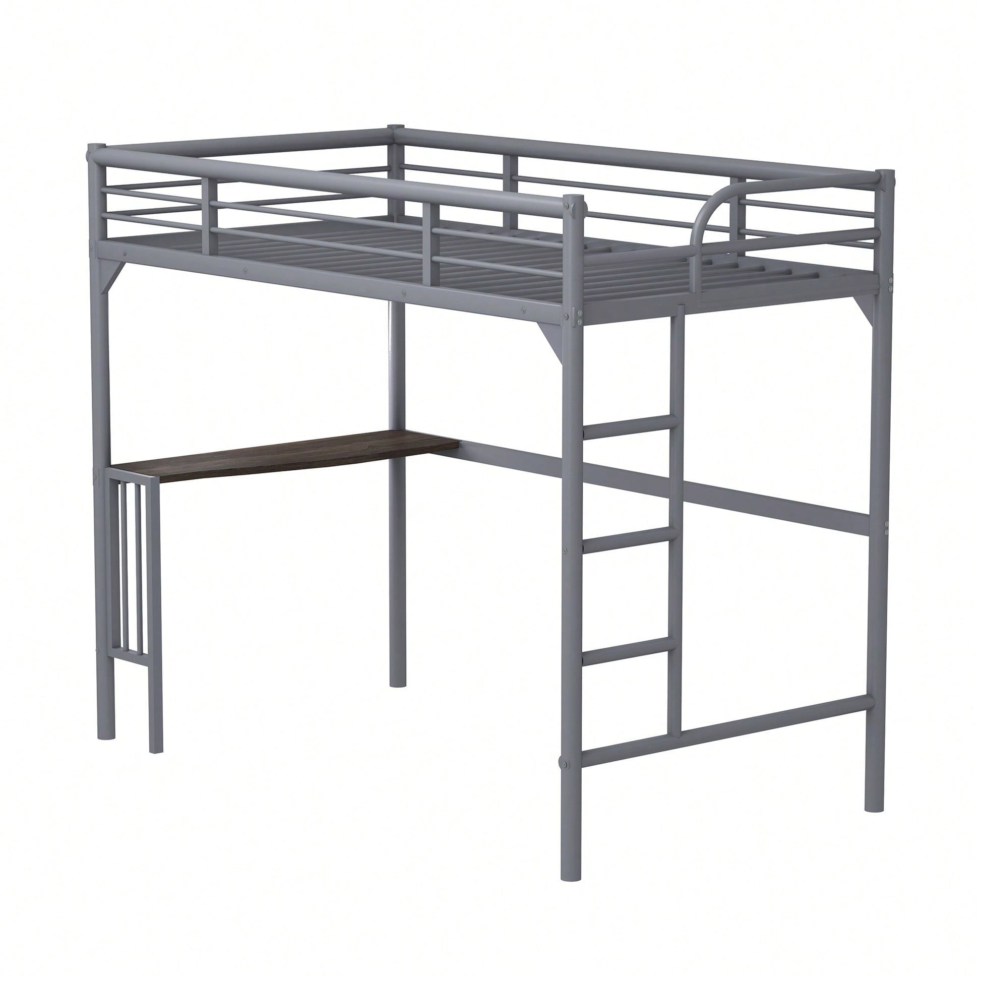 Loft Bed With Desk And Ladder, Silver Finish, Space-Saving Design With Guardrails And Under-Bed Book Desk