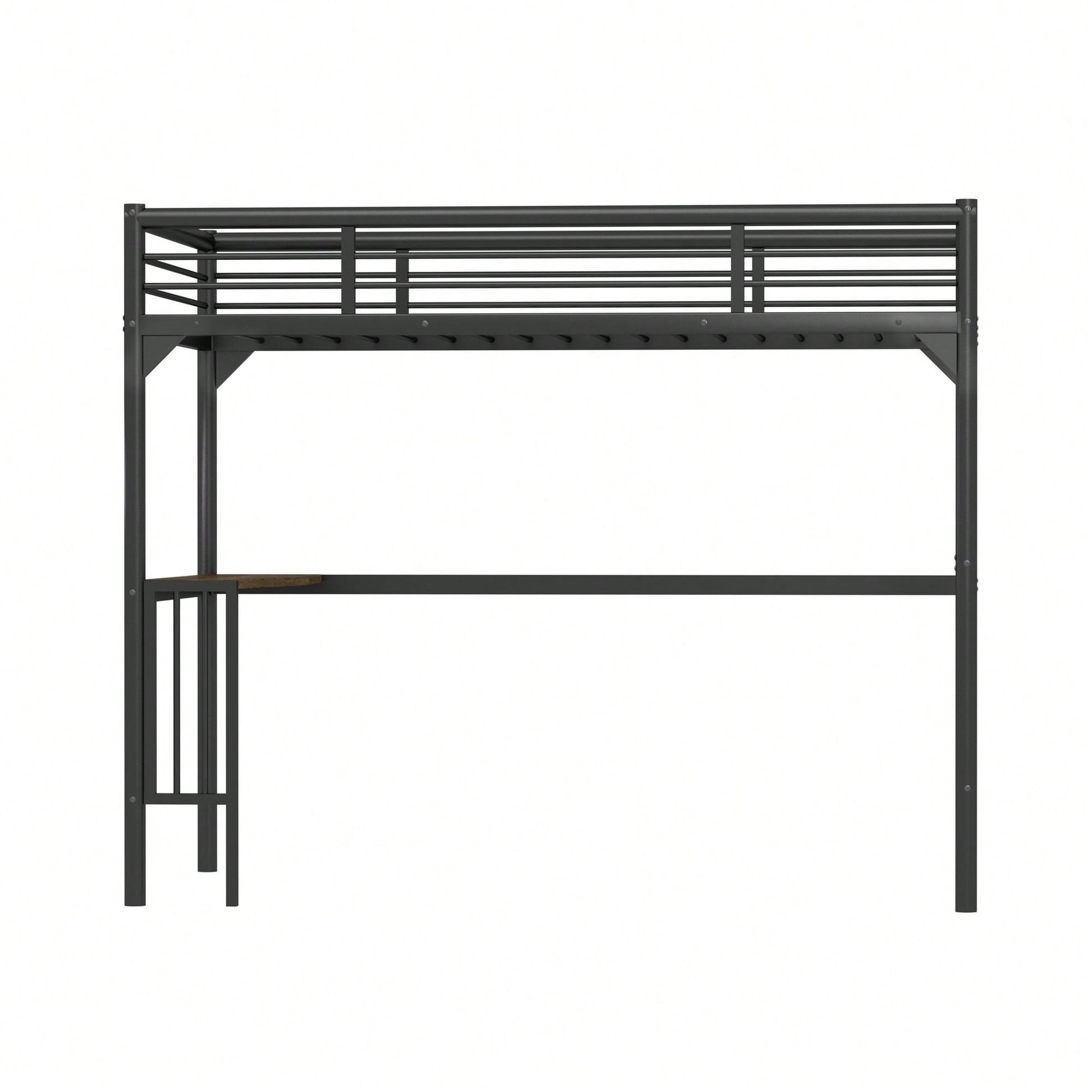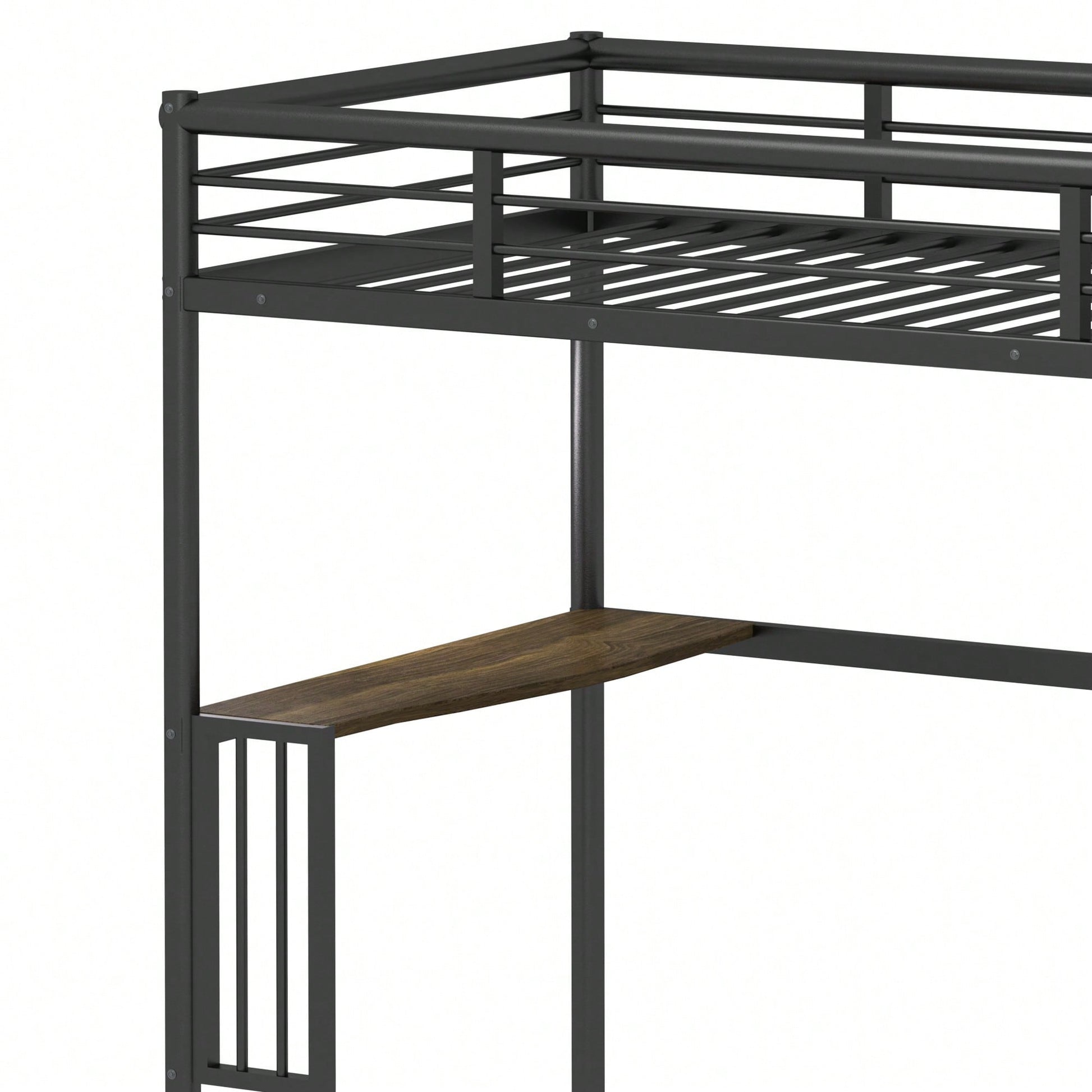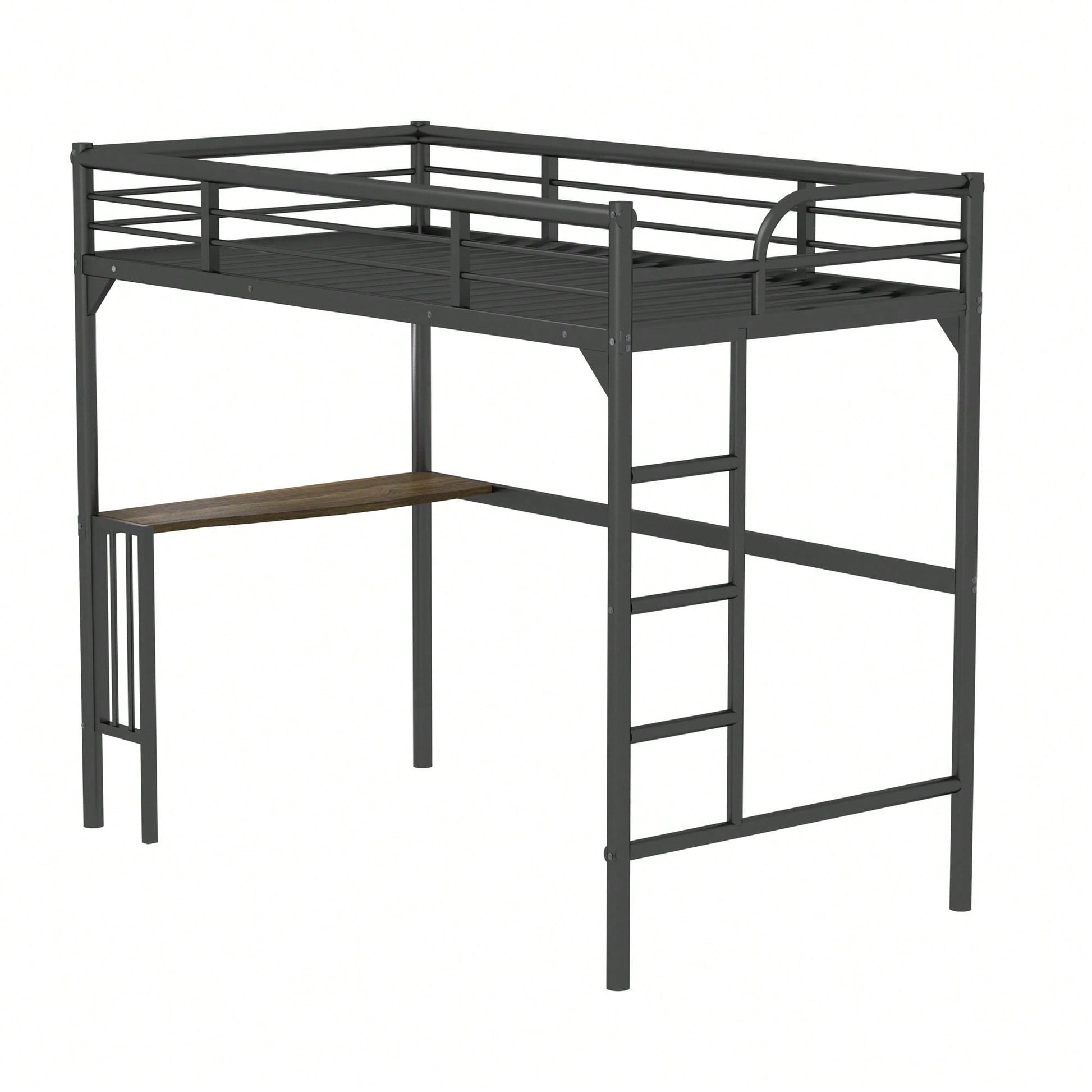 2. This twin size metal loft bed features a simple and durable design that complements any room decor. The loft bed is constructed from sturdy metal, ensuring long-lasting use. Safety is prioritized with guardrails and a conveniently located ladder on the right side. The lower level offers abundant space, allowing for various configurations to suit different needs.
