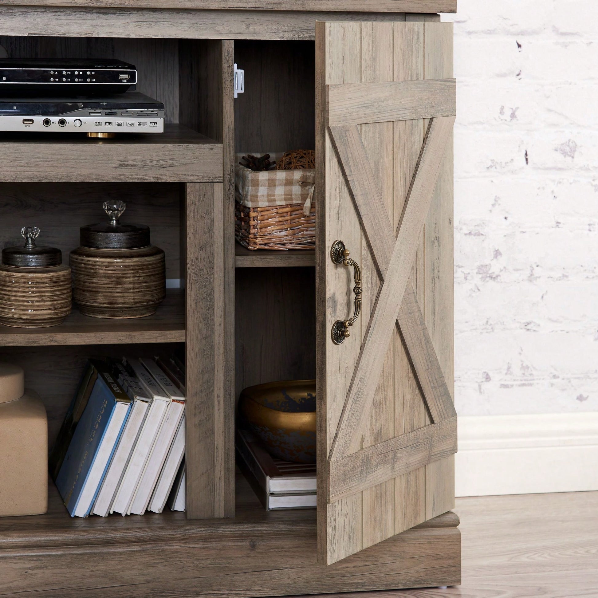 Media TV Stand Antique Entertainment Console For TV Up To 50" With Open And Closed Storage Space, Gray Wash