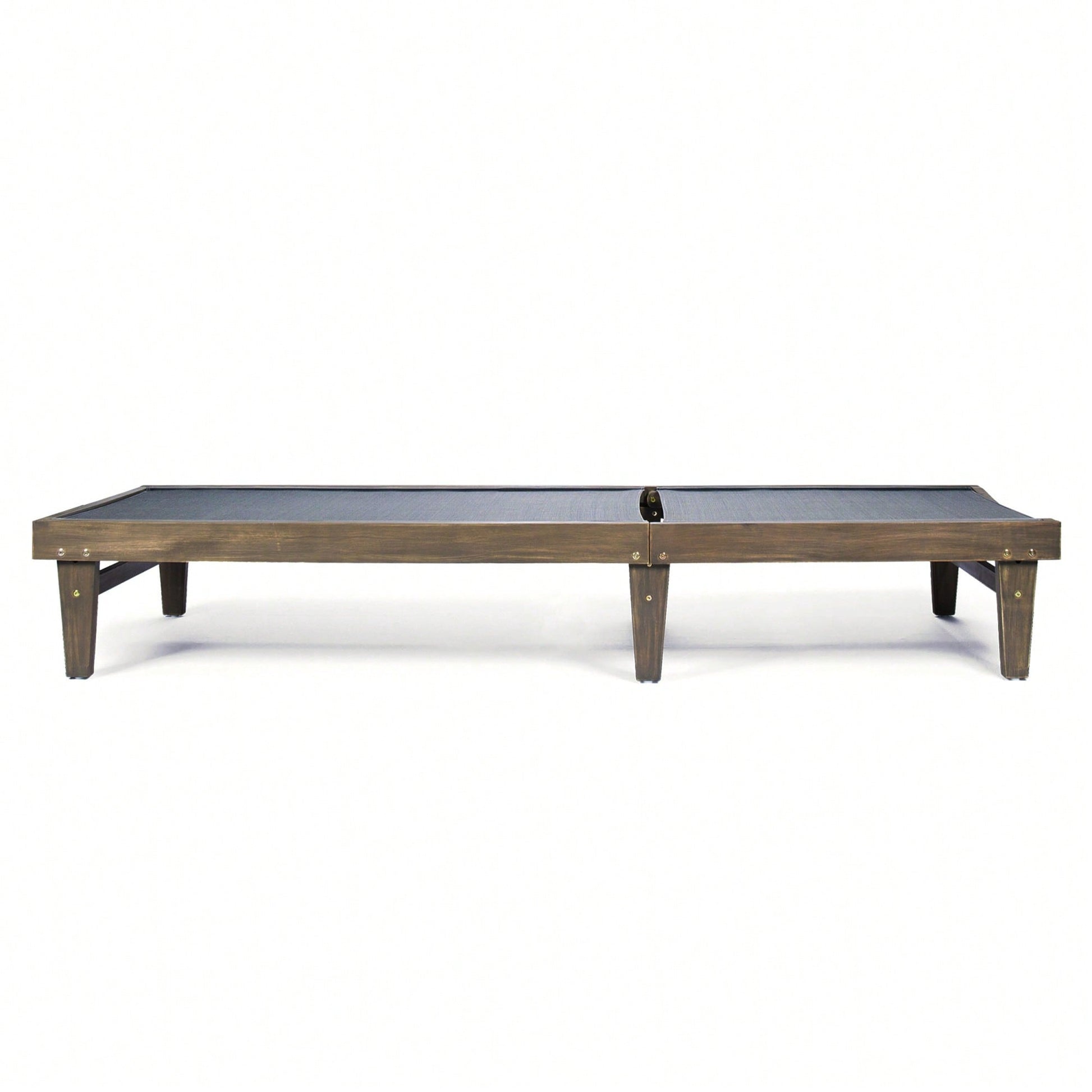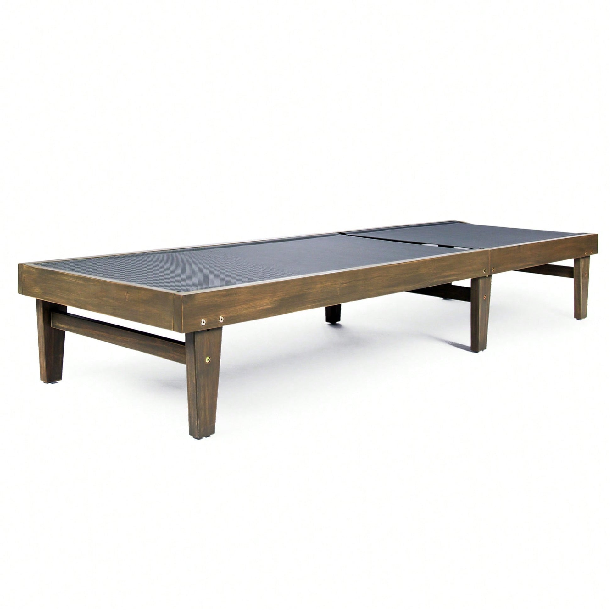 This outdoor chaise lounge offers a perfect blend of comfort and style for your summer relaxation. Crafted from sustainably sourced acacia wood and featuring a specially designed mesh seat, it provides a refreshing spot to unwind. Whether you're enjoying a good book or simply soaking up the sun, this lounge is an excellent addition to your outdoor space.