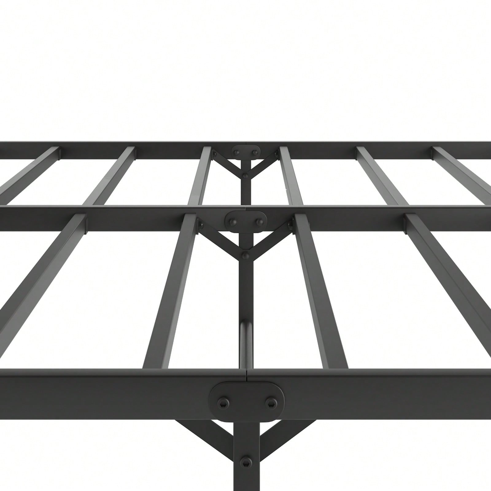 The Metal Platform Bed Frame offers reliable support with its upgraded folding structure and reinforced mid-foot. The metal slats are designed to fit snugly together, ensuring stability and quietness throughout the night. Its modern minimalist styling adds a fresh touch to any bedroom decor, making it a sleek and elegant choice for any interior style.