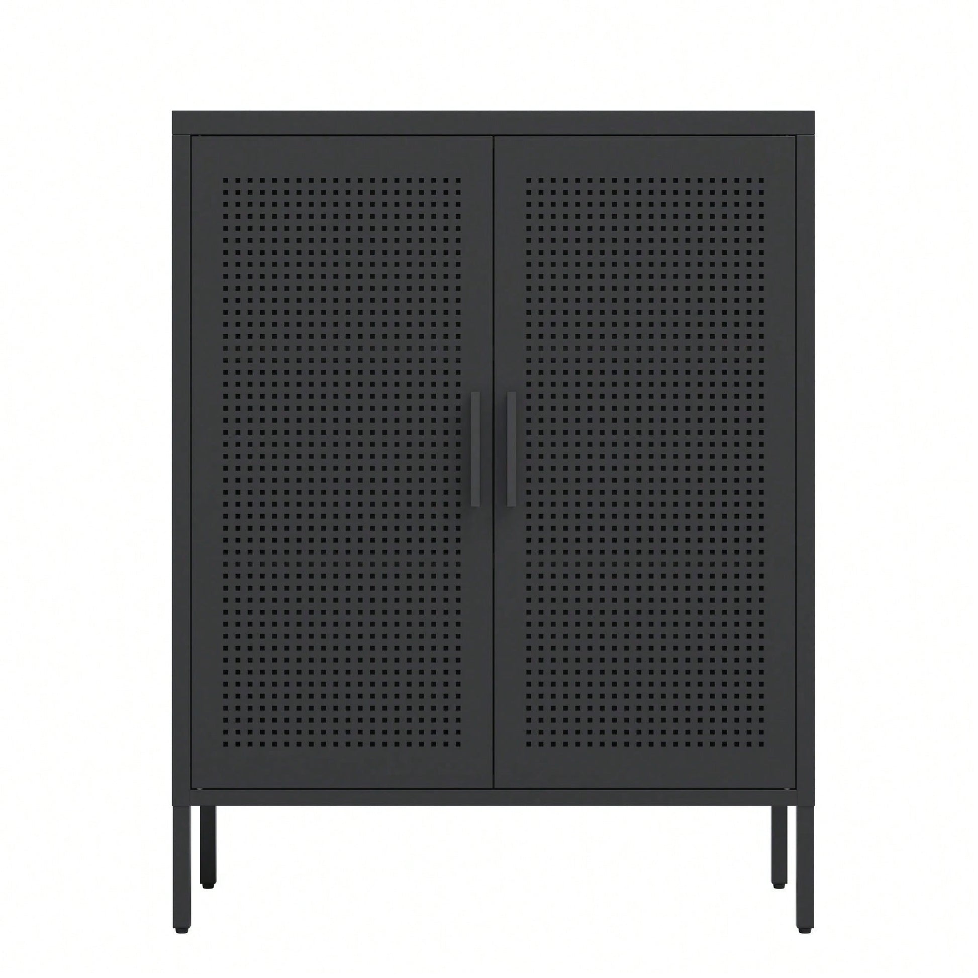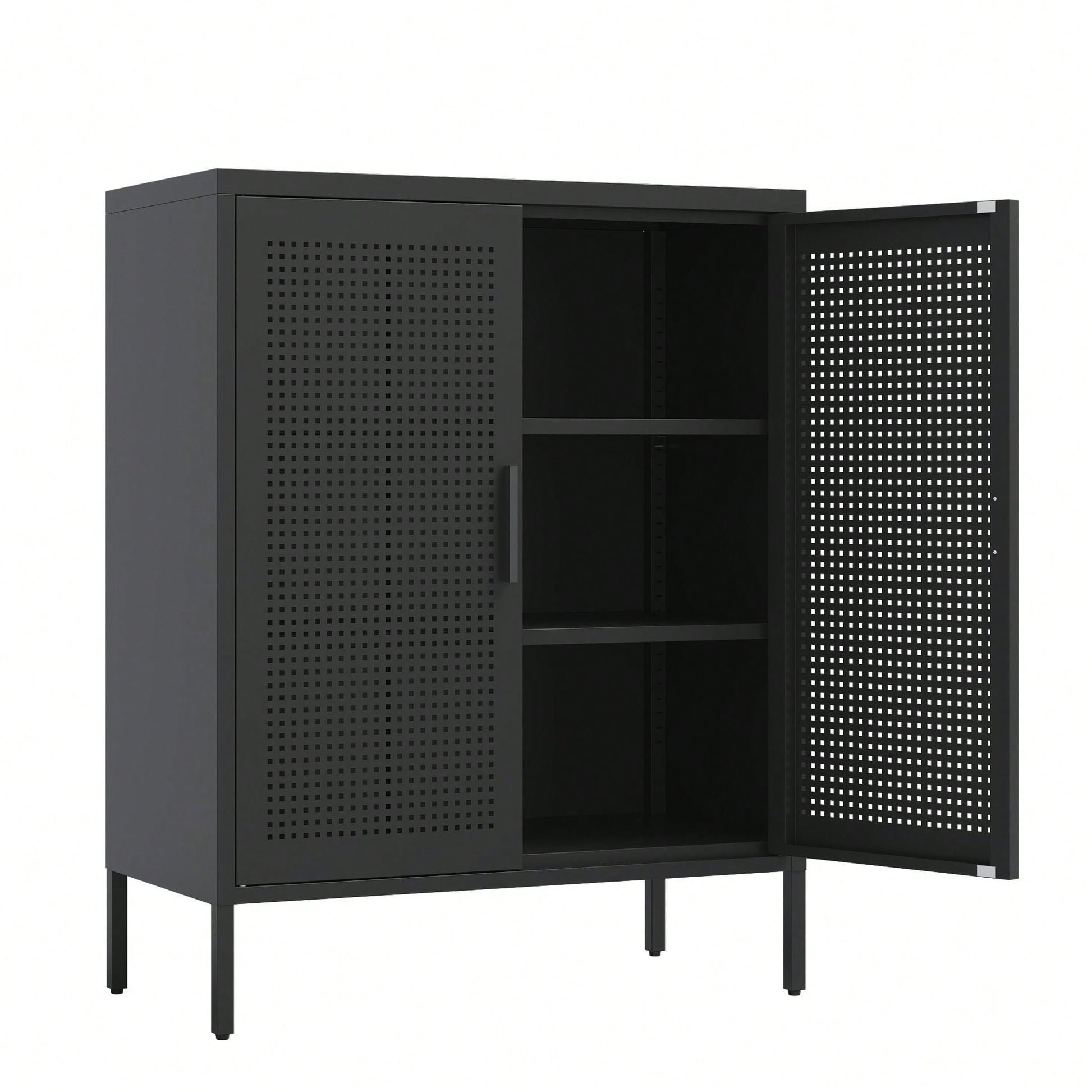 Lockable Metal Storage Cabinet with Adjustable Shelves for Home Office Garage School Gym Black