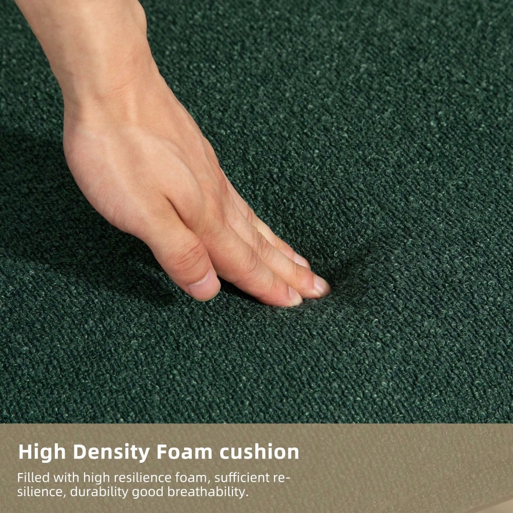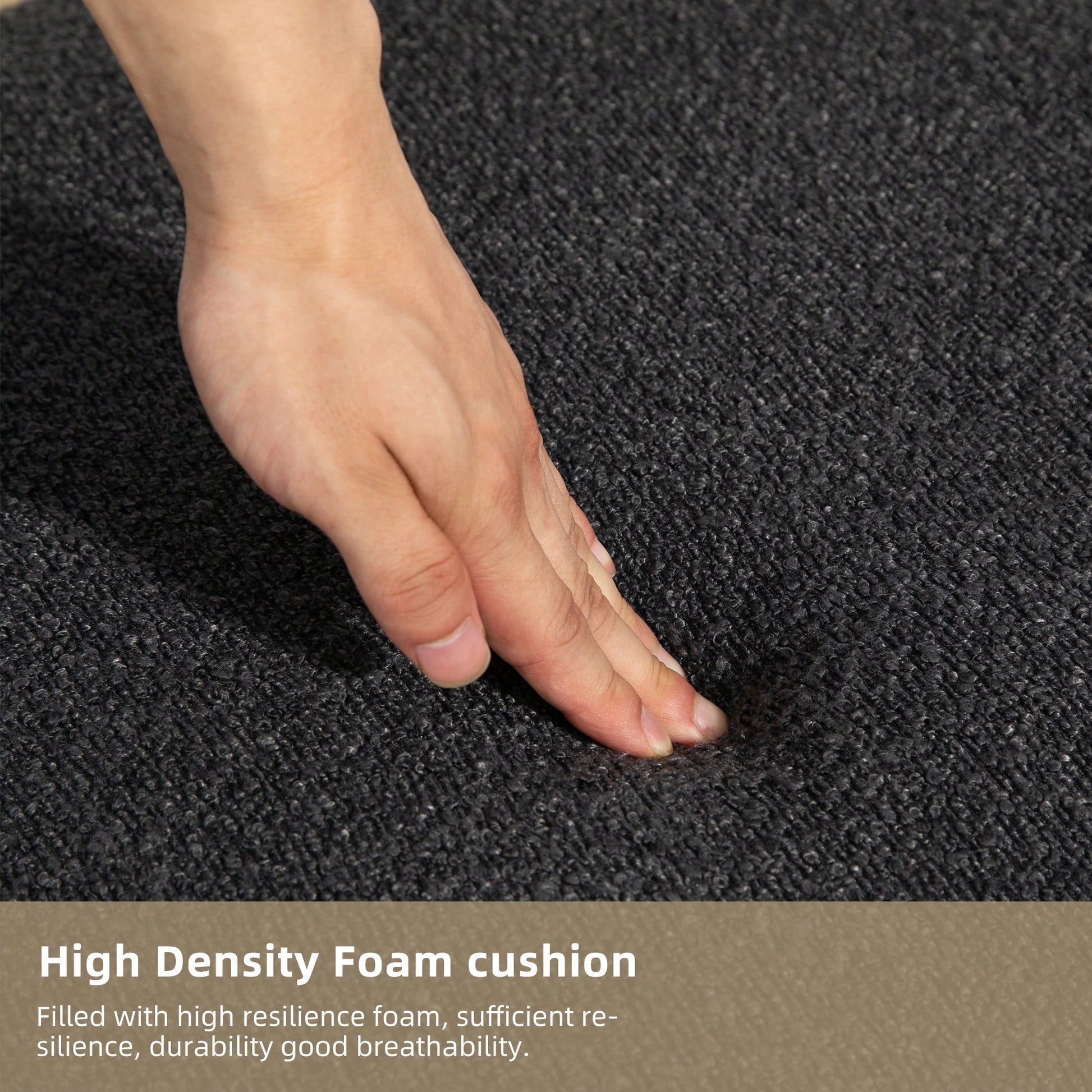 - Upholstered in soft, durable boucle fabric
