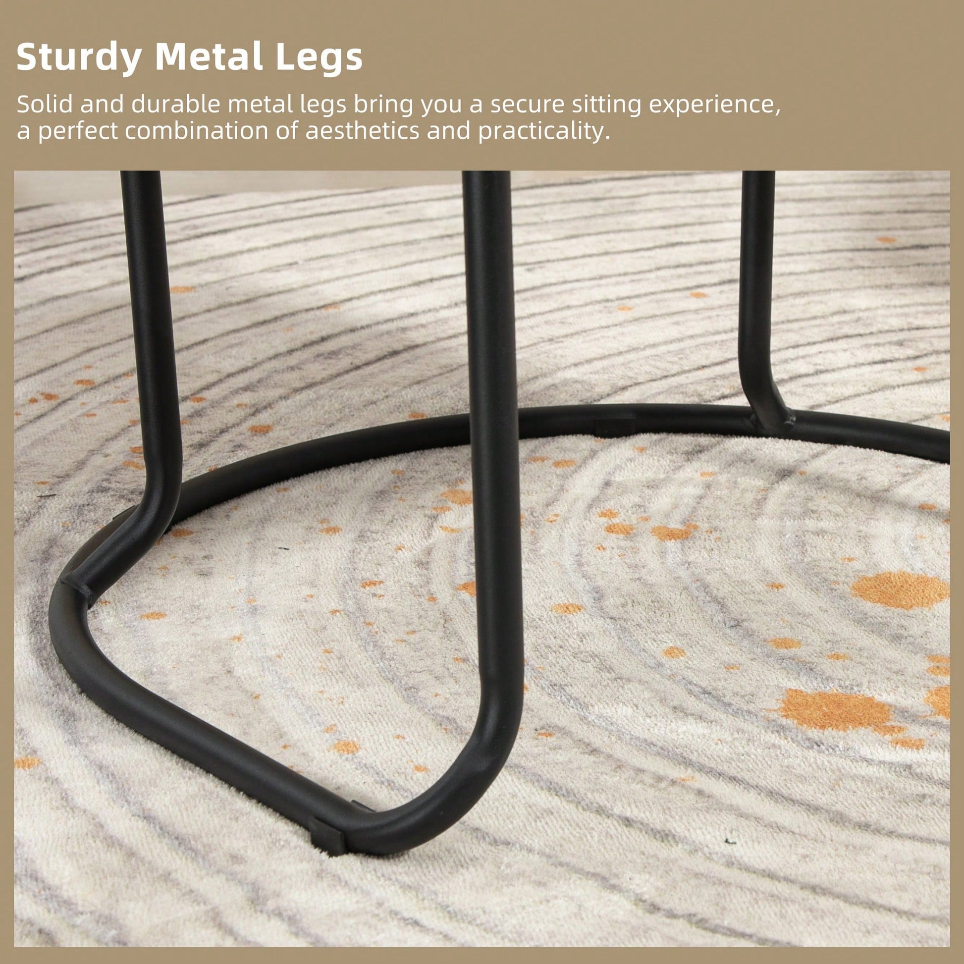 - Sturdy black metal spray-painted legs for stability
