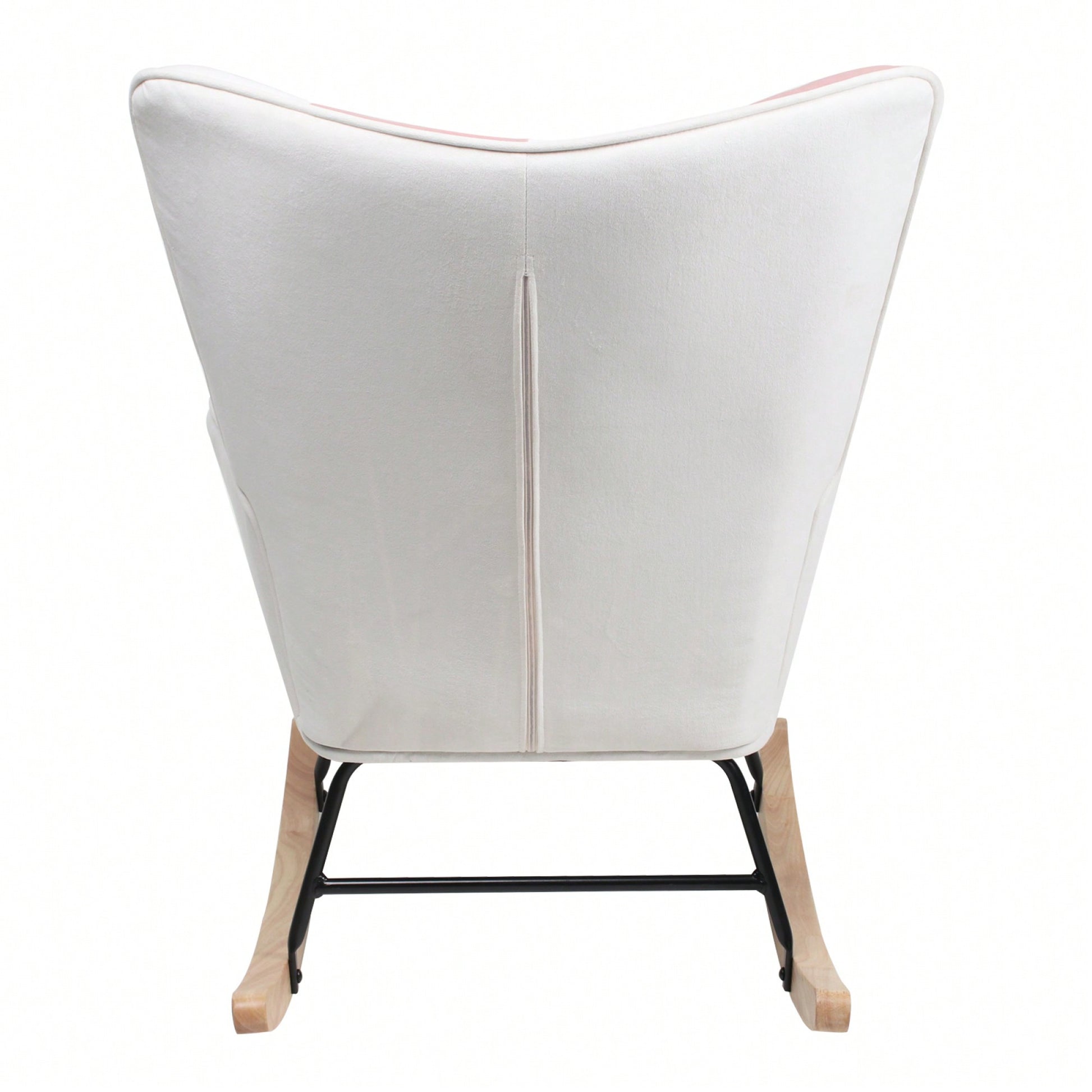 Mid Century Modern Fabric Rocking Chair With Wood Legs And Patchwork Linen For Living Room And Bedroom