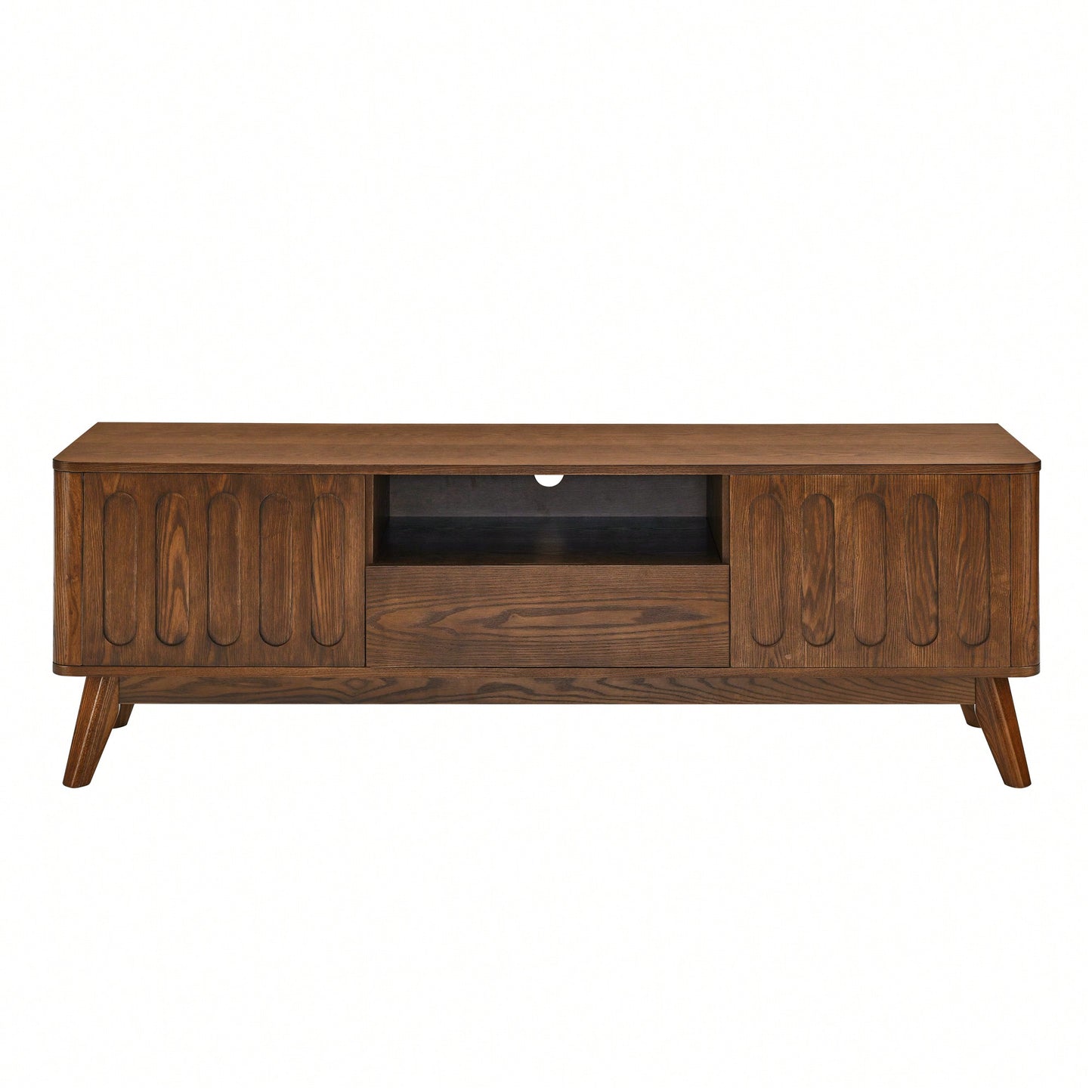 Mid Century Modern Fluted TV Stand for 65 Inch TV with Storage Farmhouse Wood Media Console with 2 Doors and 1 Drawer