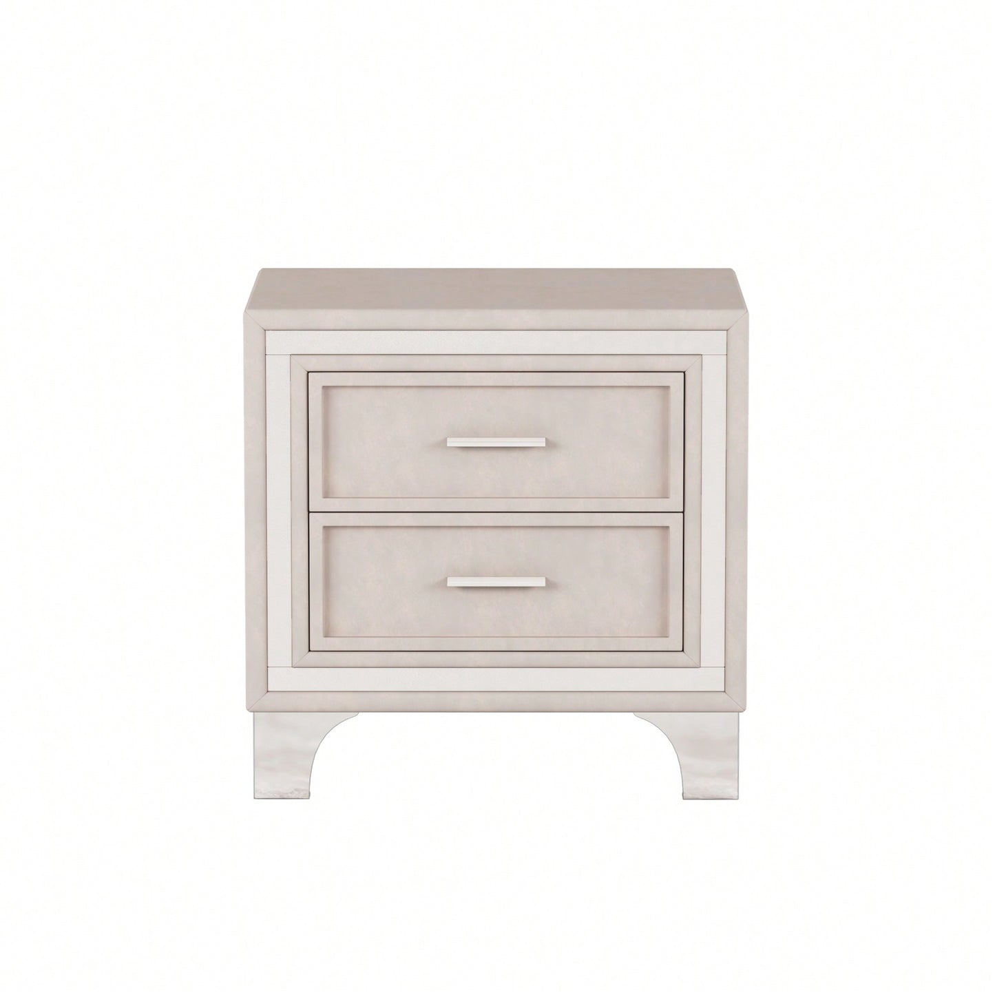 Mid Century Modern Velvet Nightstand With Metal Legs And 2 Drawers For Bedroom Storage In Beige