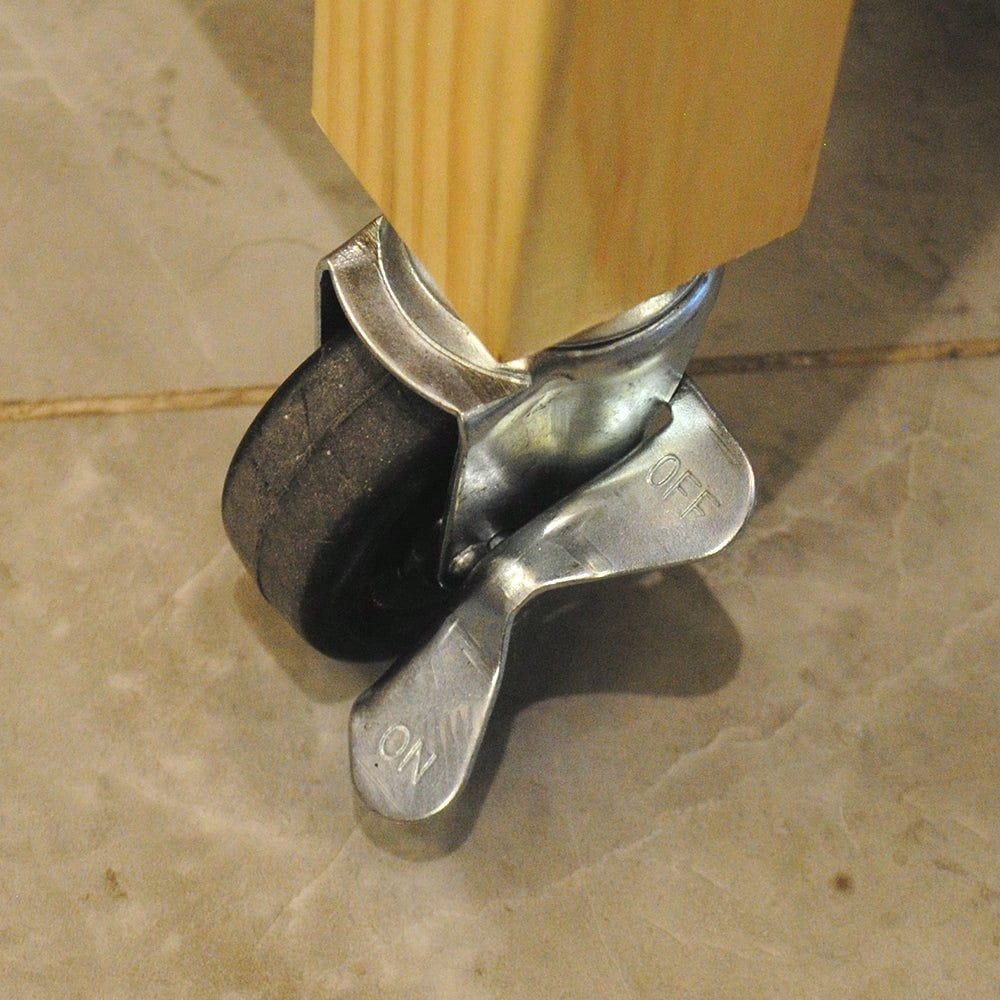 3. Mobile towel rack with 4 flexible rubber wheels, 2 of which are lockable.