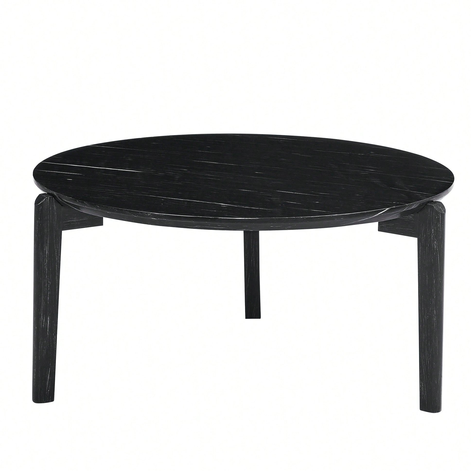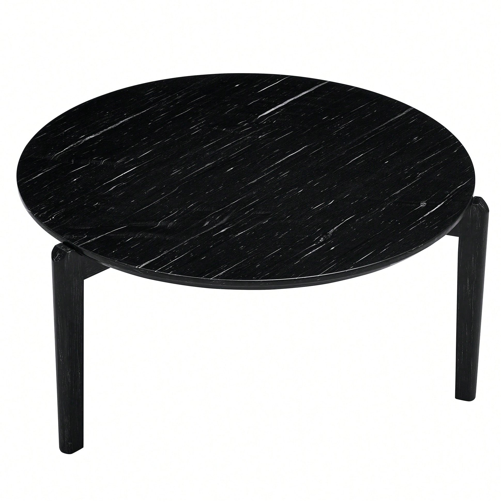 This modern coffee table features a 36 inch round design with a high-gloss imitation marble top that brings a touch of luxury to your living room. The unique beveled chamfer design sets it apart from traditional coffee tables, adding a contemporary flair to your decor. Supported by three solid rubberwood legs, this table offers excellent stability and durability, making it a lasting addition to your home. Its versatile size allows it to fit seamlessly into various living spaces, while the minimalist aesthetic ensures it complements any interior style, from rustic to modern or classic.