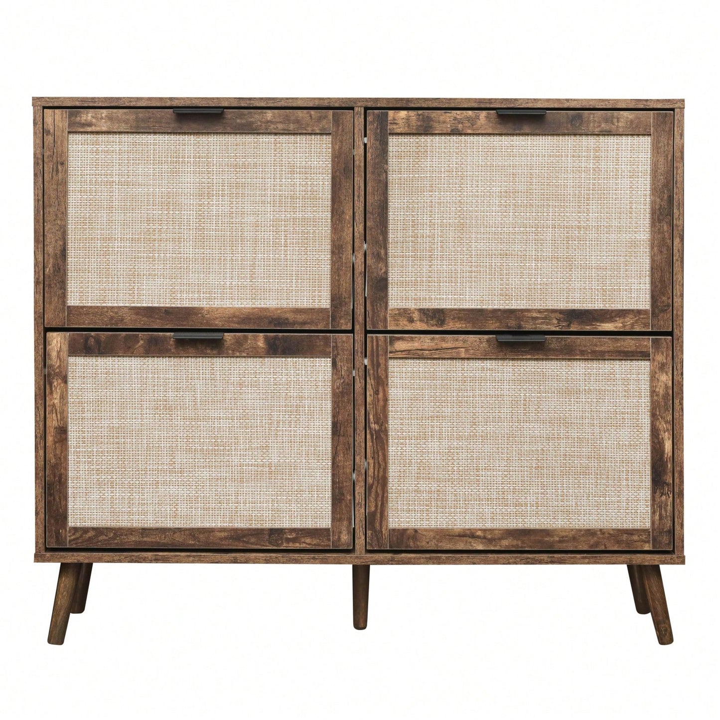 Modern 4-Door Freestanding Shoe Rack With Double-Layer Storage And Pine Legs