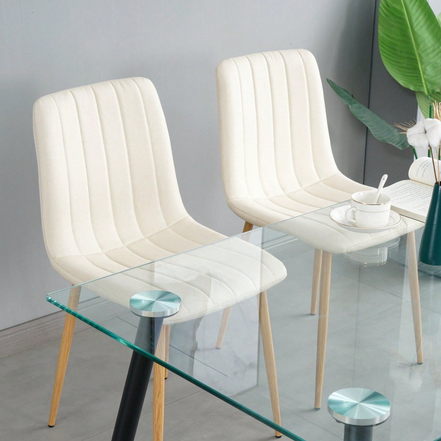 Set of 4 Modern Beige Upholstered Dining Chairs with Wood and Metal Legs for Living Room Kitchen Bedroom