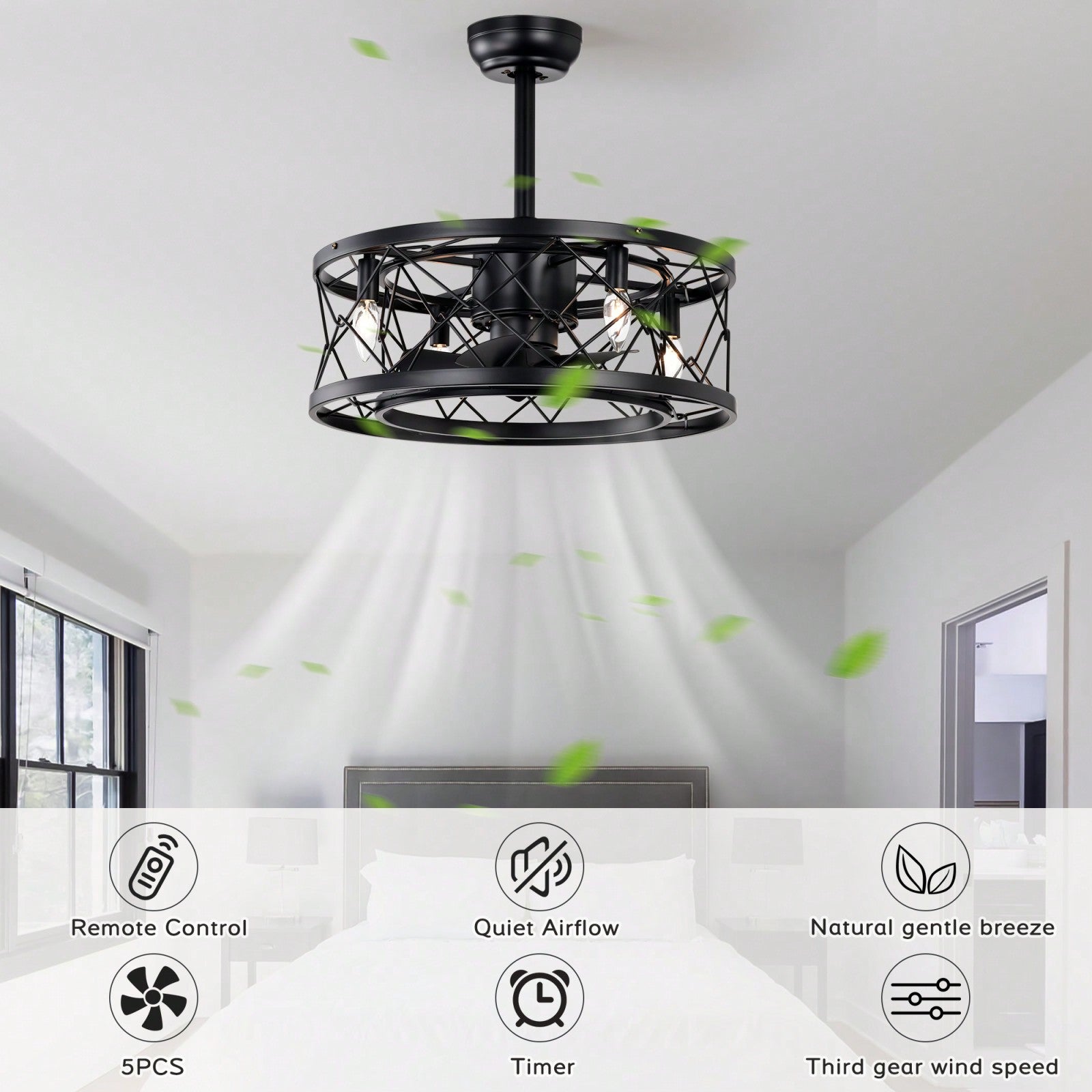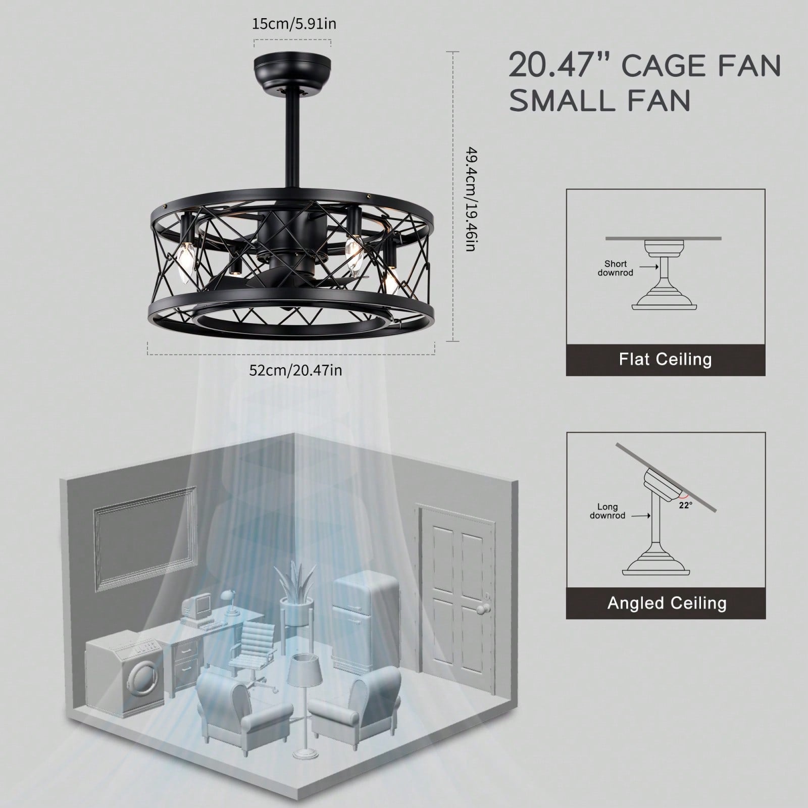 1.Modern 20" caged ceiling fan design with 5 small blades, perfect for small to medium spaces and low profile ceilings.