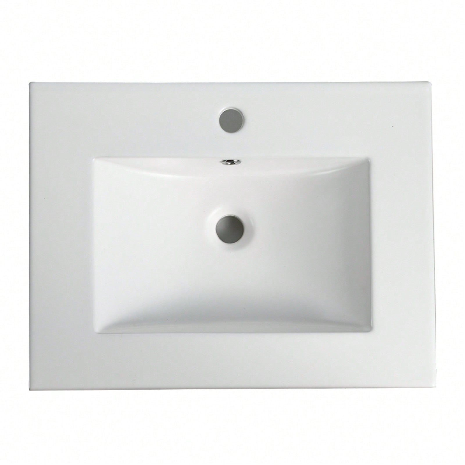 This ceramic sink combines high-quality materials and expert craftsmanship to create a modern and functional aesthetic for any bathroom or powder room. The smooth surface of the sink is easy to clean and maintain, ensuring long-lasting use. With a pre-drilled hole for a single-handle faucet, this sink allows for customization to suit your personal style preferences. The integrated countertop and sink make for easy installation, while the sleek design adds a touch of elegance to any space.