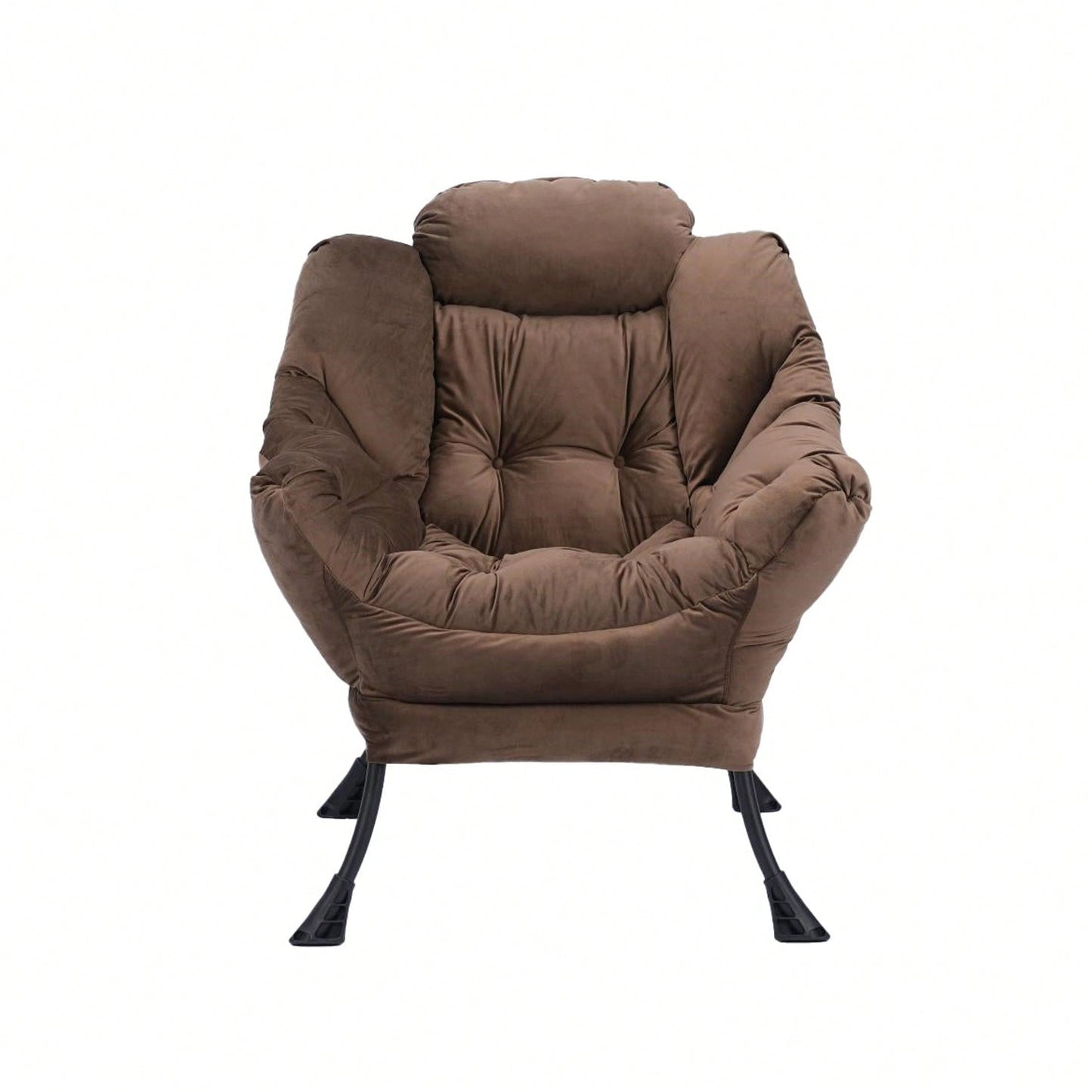 Modern Cotton Fabric Lazy Chair, Accent Contemporary Lounge Chair, Single Steel Frame Leisure Sofa Chair With Armrests And A Side Pocket