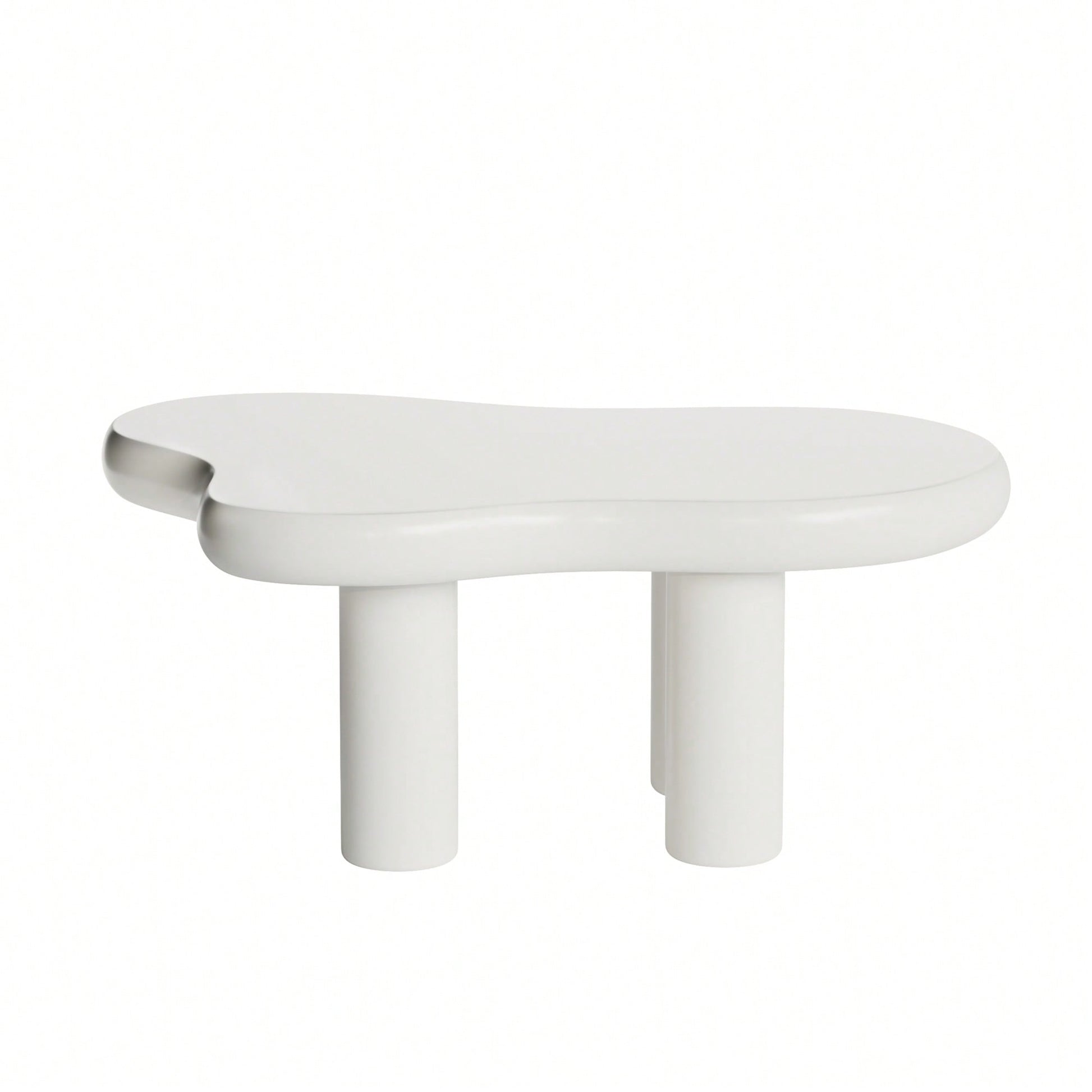 **Key Features:** - Cute cloud-shaped design adds a funky and cozy feel to any space - Creamy white surface with a baking finish for easy cleaning - 2.56" thick tabletop designed to hold everyday items like books and remote controls - Safe, smoothly arched corners ensure family safety - Unobstructed leg height for uninterrupted TV viewing with sturdy PVC legs **Product Description:** This cloud-shaped coffee table brings a playful and inviting atmosphere to your living room or home office. Its soft, creamy tone adds warmth, while the whimsical design injects a touch of charm into your decor. The tabletop, crafted with a durable baking finish, is easy to maintain, allowing you to wipe away spills and dirt effortlessly. With a thickness of 2.56 inches, it provides ample space for your essentials. The expertly designed corners ensure safety for families, making it a perfect addition to any home. The table's legs are designed for optimal height, ensuring your view remains unobstructed during entertainment. Built with stability in mind, this coffee table is not only functional but also a cozy artistic piece for your space. **Specifications:** - Tabletop thickness: 2.56 inches - Material: PVC legs, baking finish surface - Shape: Cloud - Color: Creamy white - Easy installation time: 10 minutes