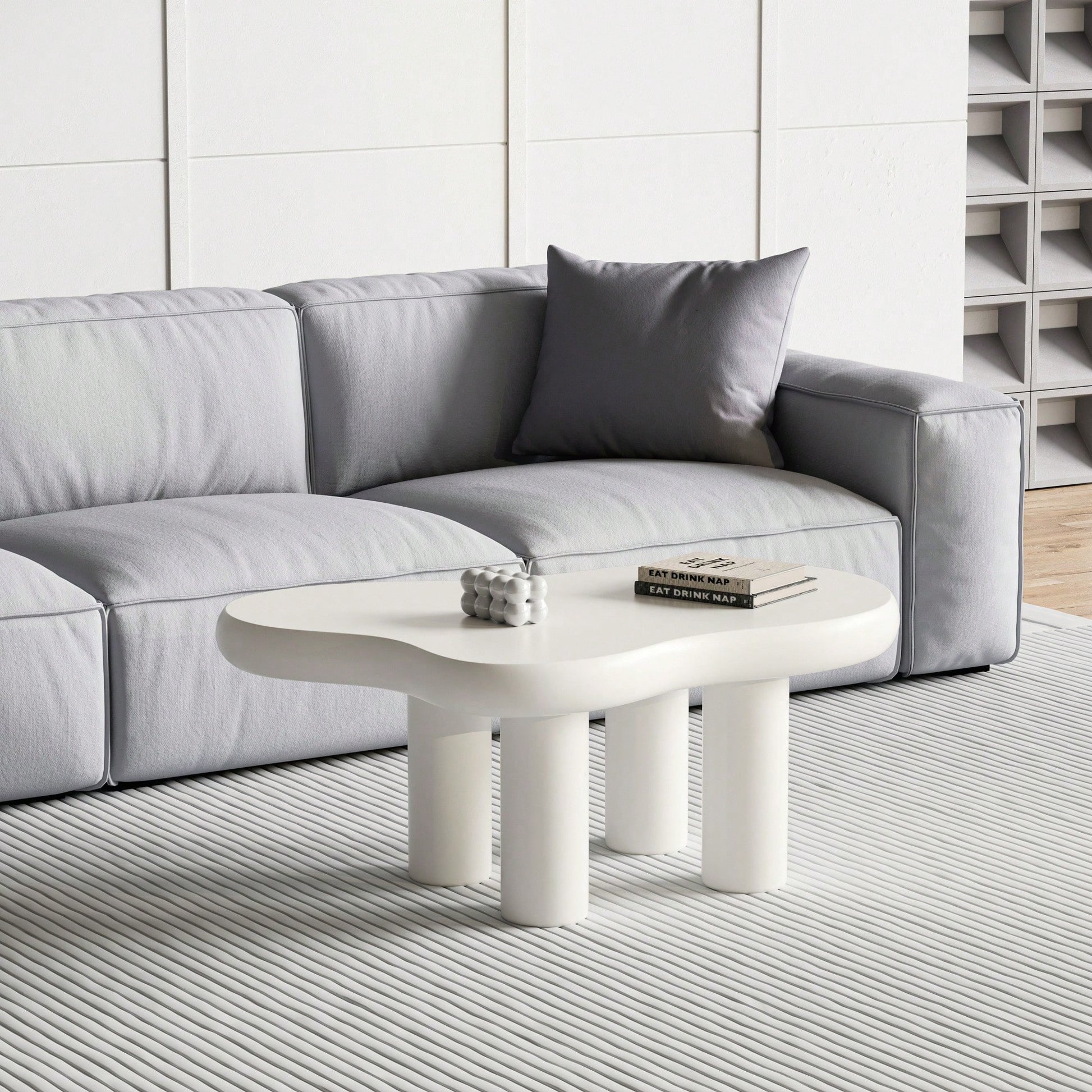 Modern Cream Cloud Coffee Table With 4 Sturdy Legs For Living Room And Home Office Funky Minimalist Design 39.4 Inches