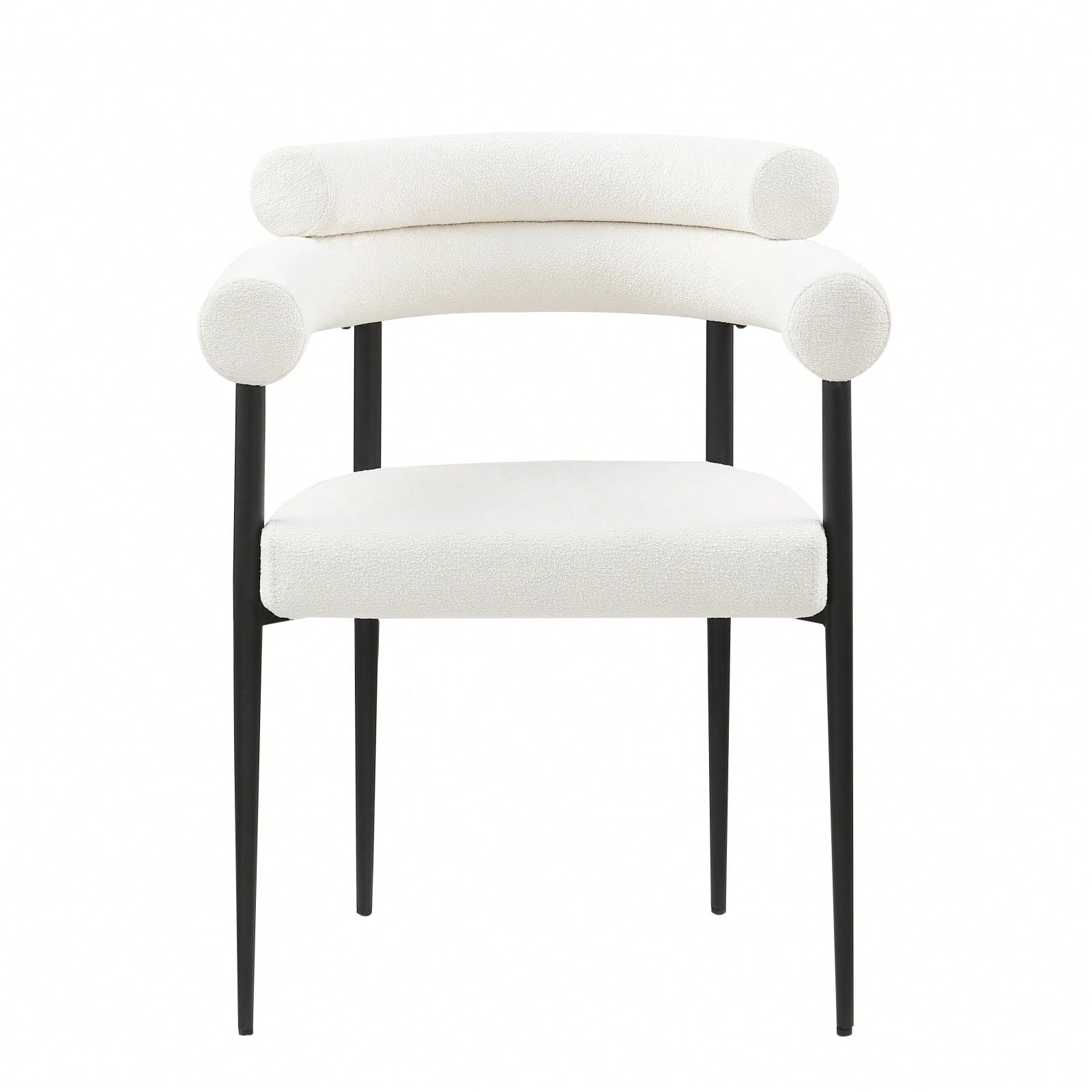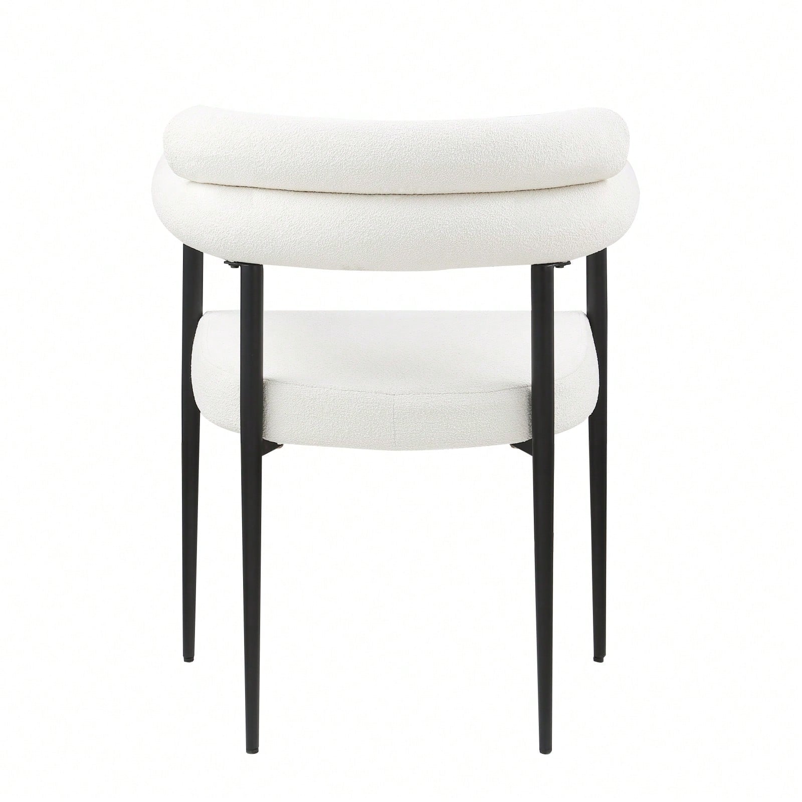 1.Mid-Century Modern Elegance: Elevate your dining space with the timeless appeal of these mid-century modern dining chairs, featuring a distinctive round boucle backrest and sleek metal legs.