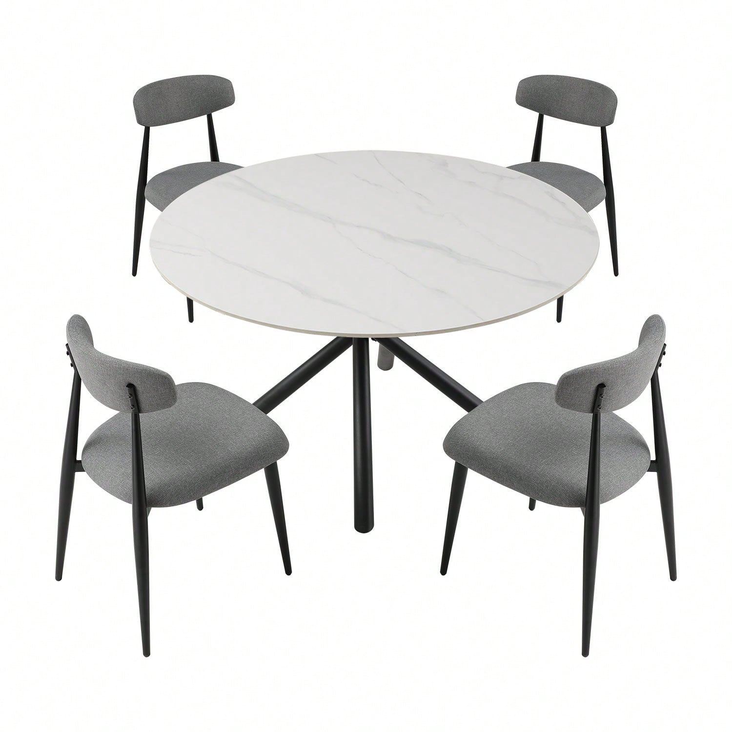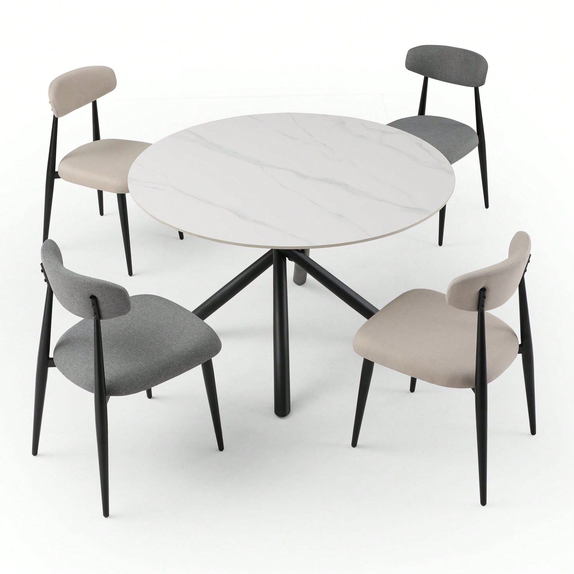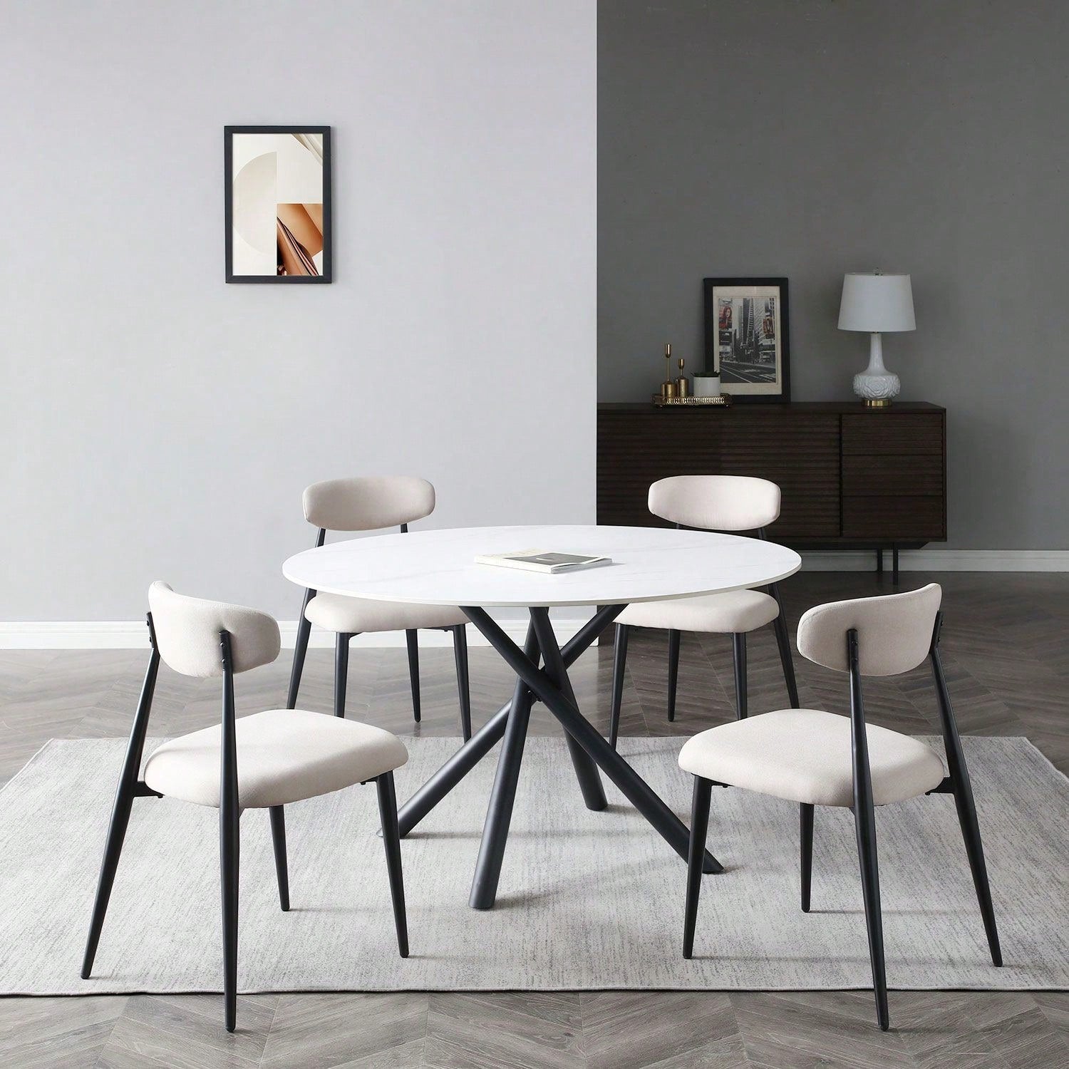 Modern Dining Chairs Set Of 2, Curved Backrest Round Upholstered And Metal Frame