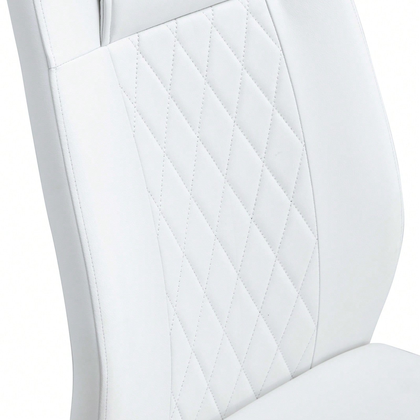 These modern dining chairs offer a stylish alternative to traditional seating, elevating the look of any dining area, kitchen, or living space. The chairs feature a comfortable padded seat upholstered in a sleek and easy-to-clean material. Supported by sturdy metal legs with an elegant arched design, these chairs provide both durability and visual appeal. Easy assembly is facilitated with included instructions and tools. Enjoy the versatility of these chairs in various settings, from dining rooms and kitchens to bedrooms and offices.