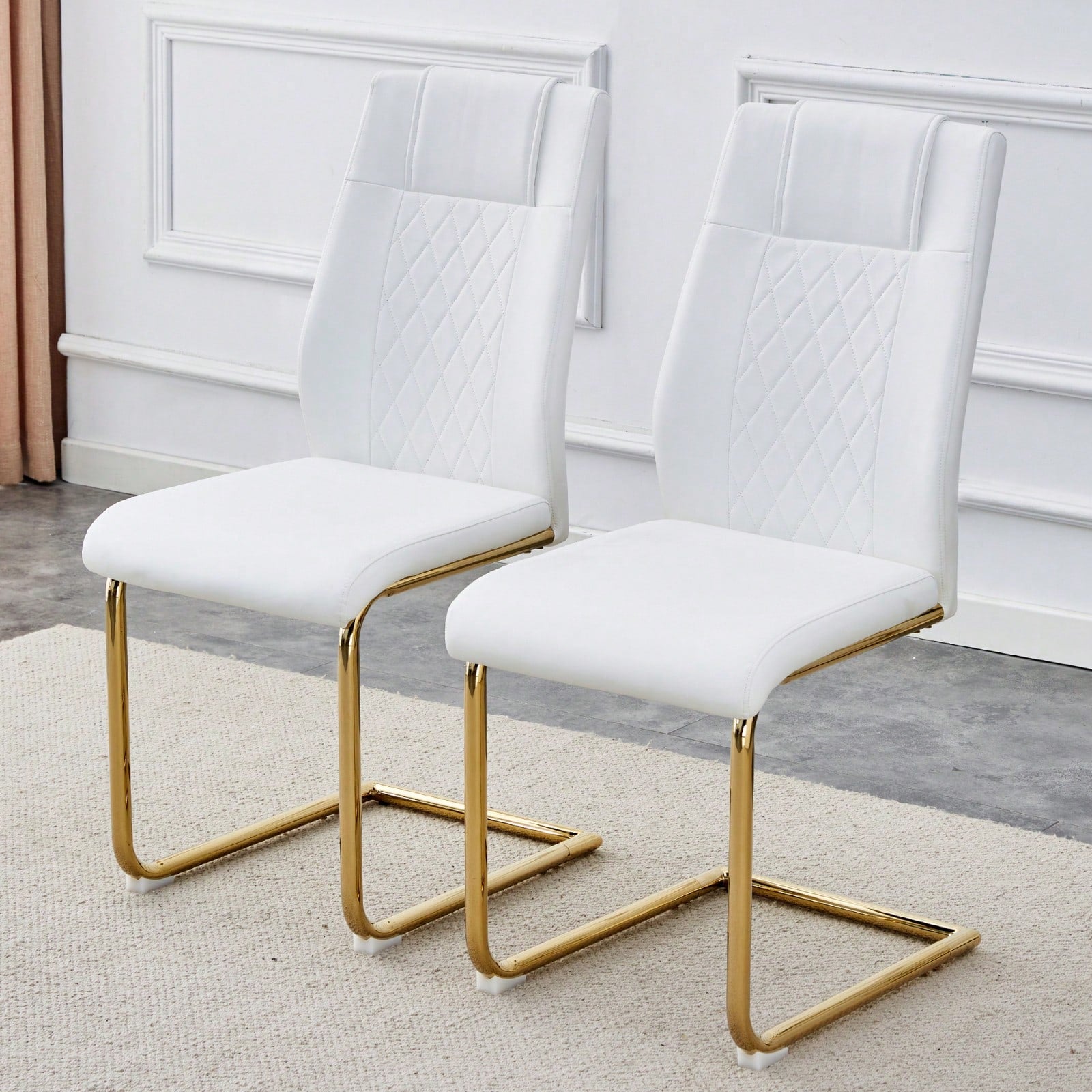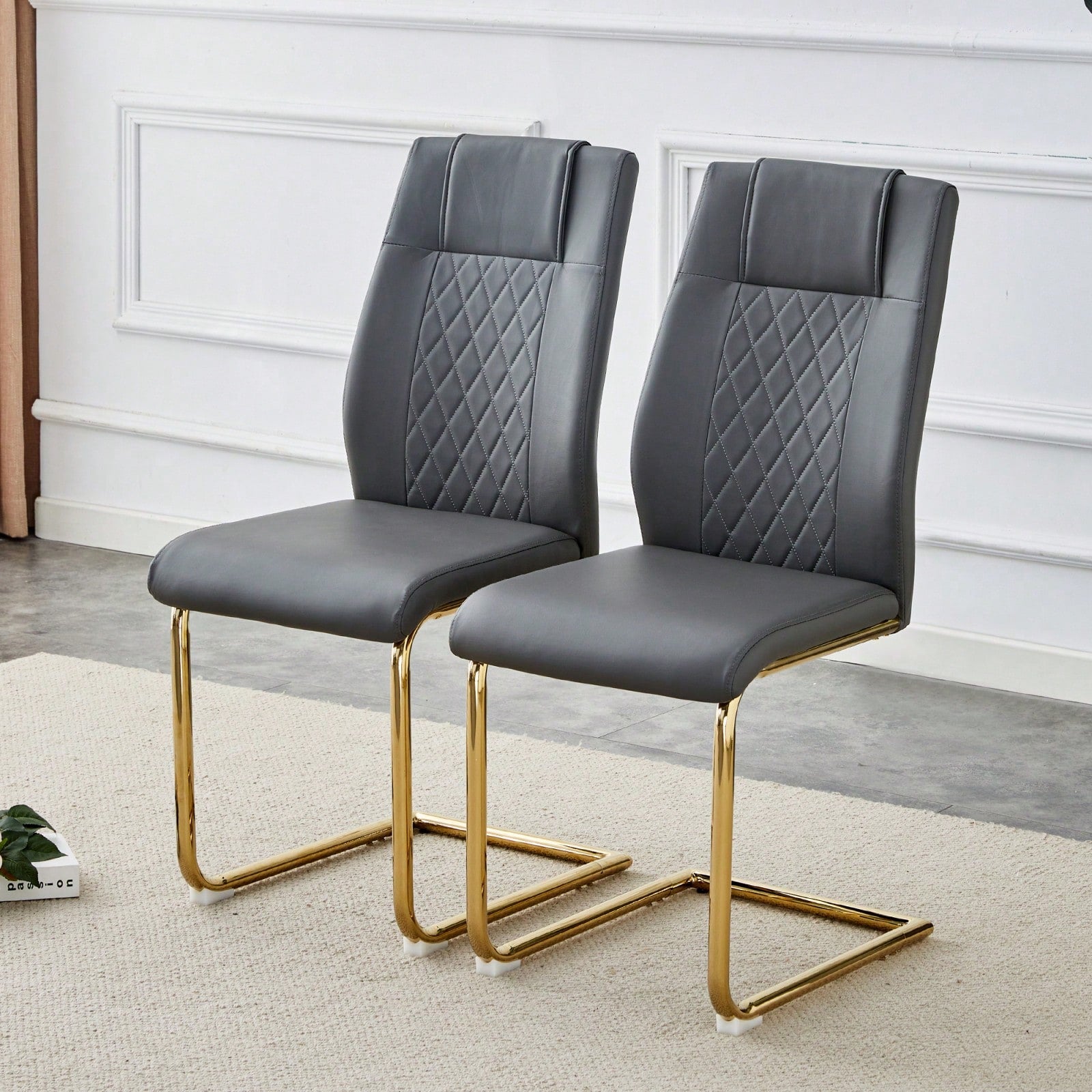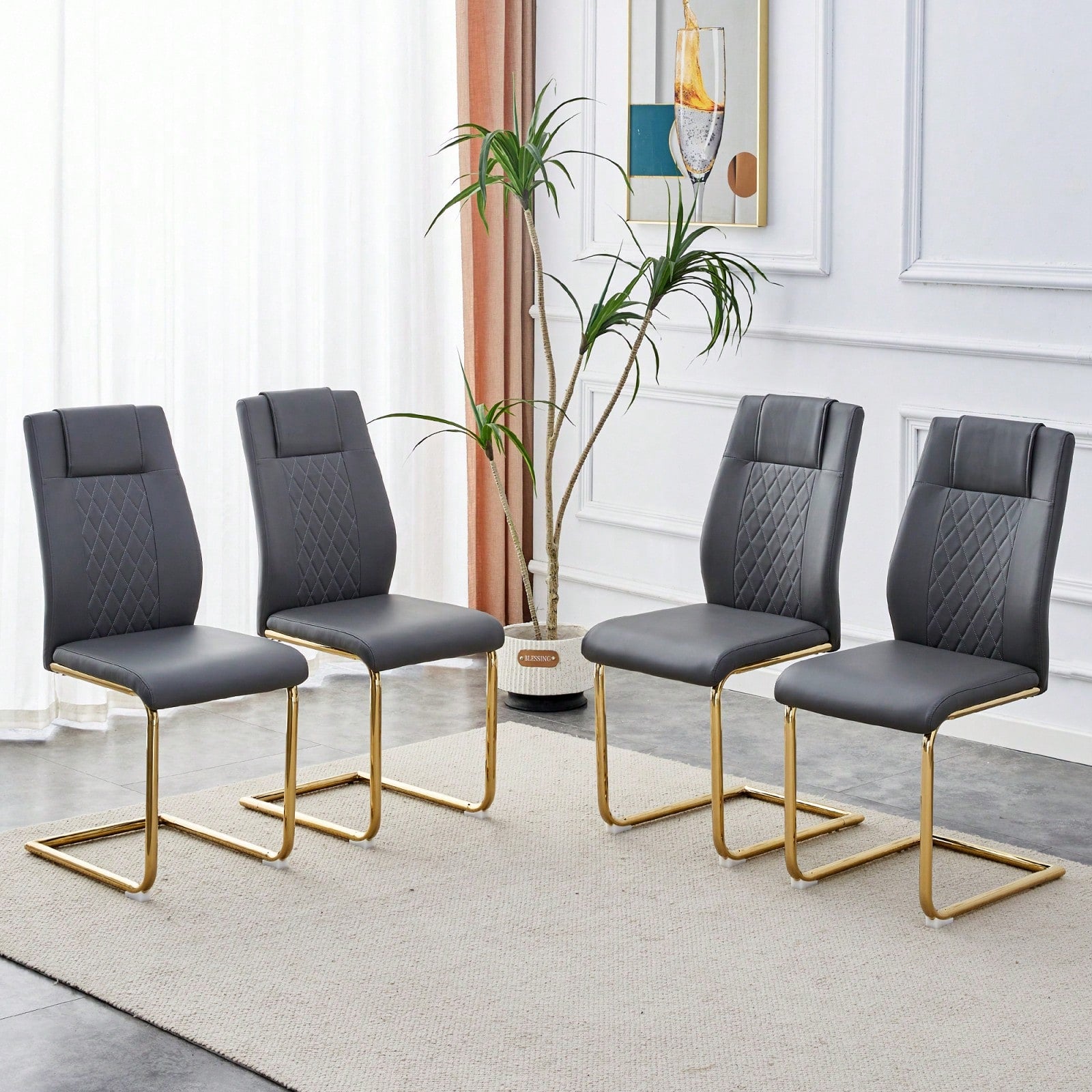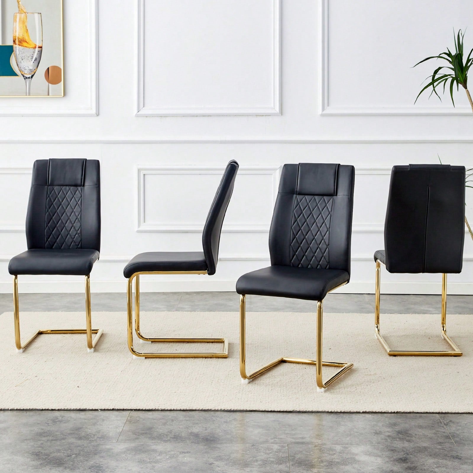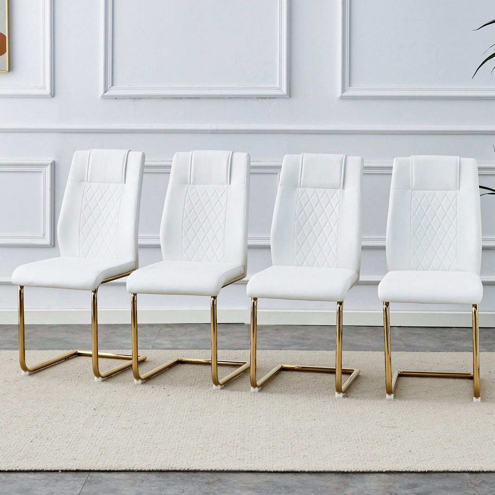 Stylish Set of 4 PU Leather Dining Chairs with Gold Legs for Kitchen Living Room Office