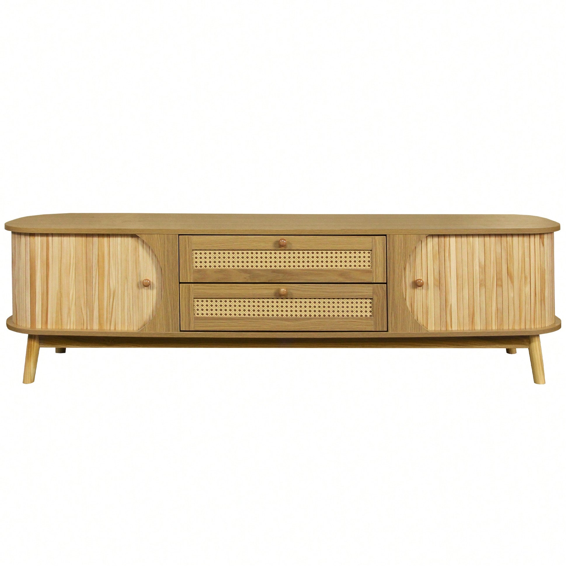This modern farmhouse media console is designed to accommodate TVs up to 75 inches, making it a perfect fit for your living room or home theatre. The elegant rattan detail combined with warm wood tones creates a harmonious look that complements various interior styles. The spacious storage inside features solid wood doors, allowing you to neatly organize your daily necessities. Additionally, cable management holes help keep your setup tidy and clutter-free. Assembly is straightforward with step-by-step instructions and clearly labeled components, ensuring a hassle-free setup.