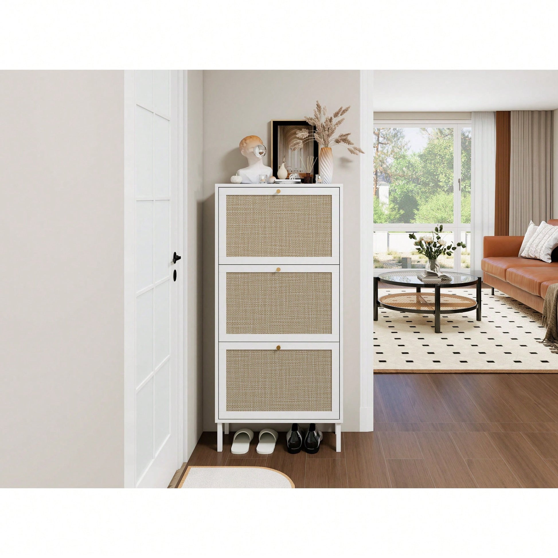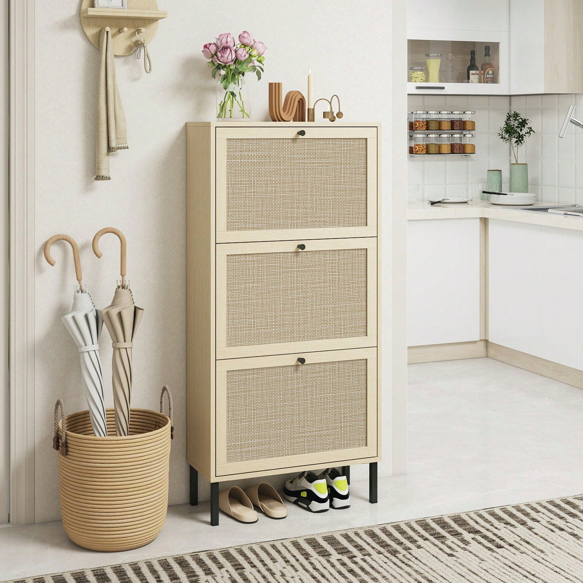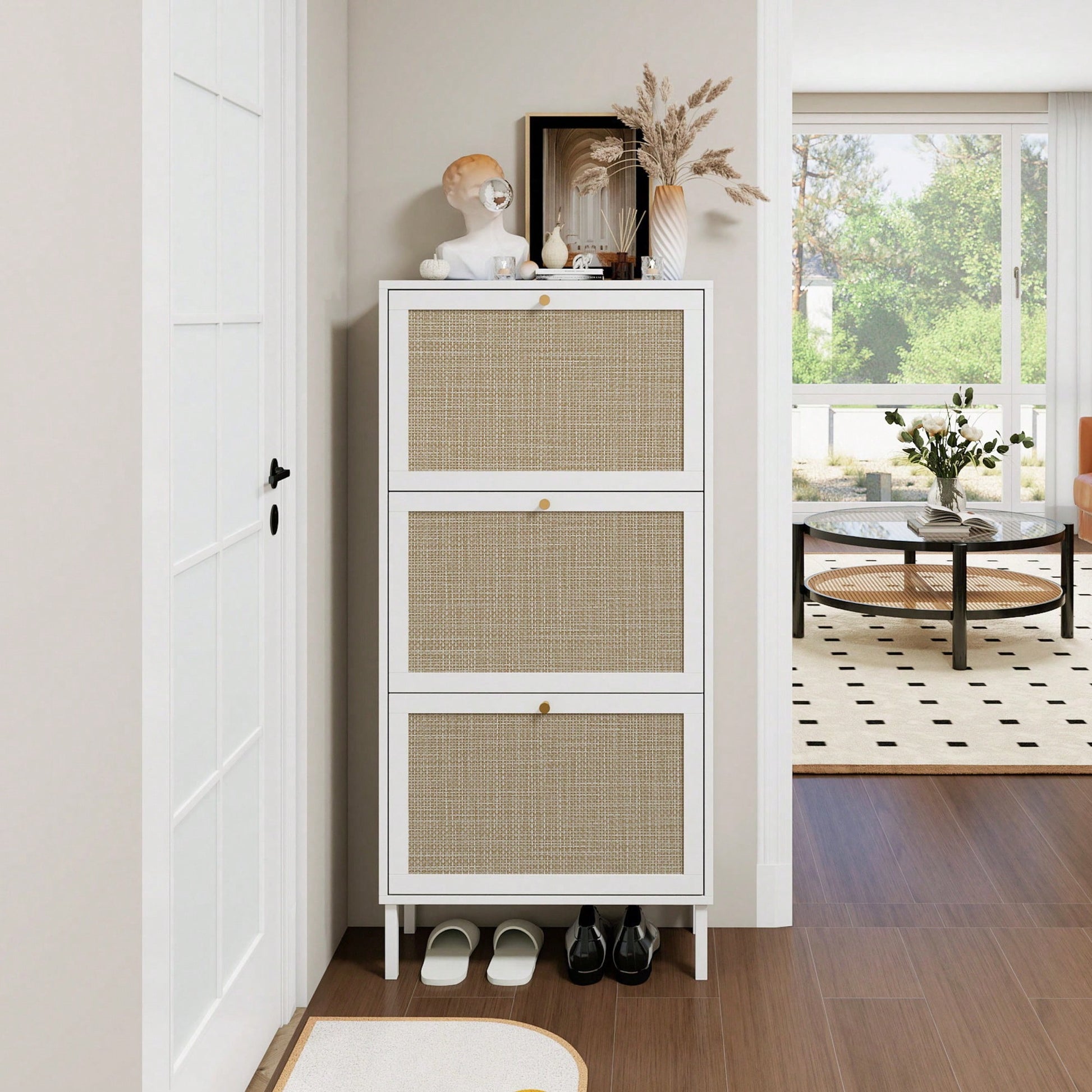 Modern Freestanding 3 Door Shoe Storage Cabinet For Entryway Organization