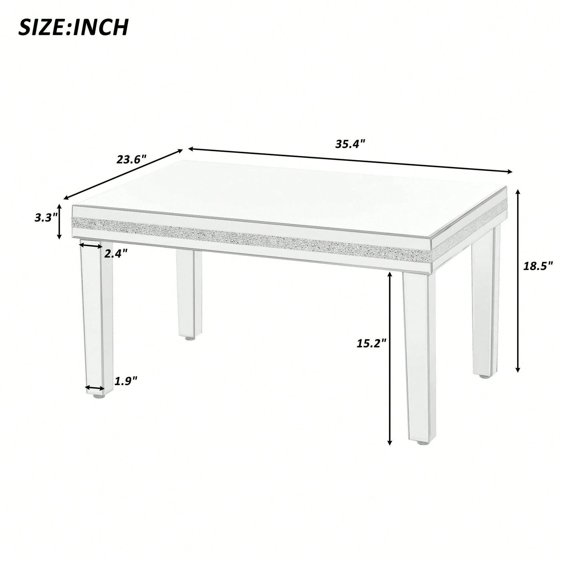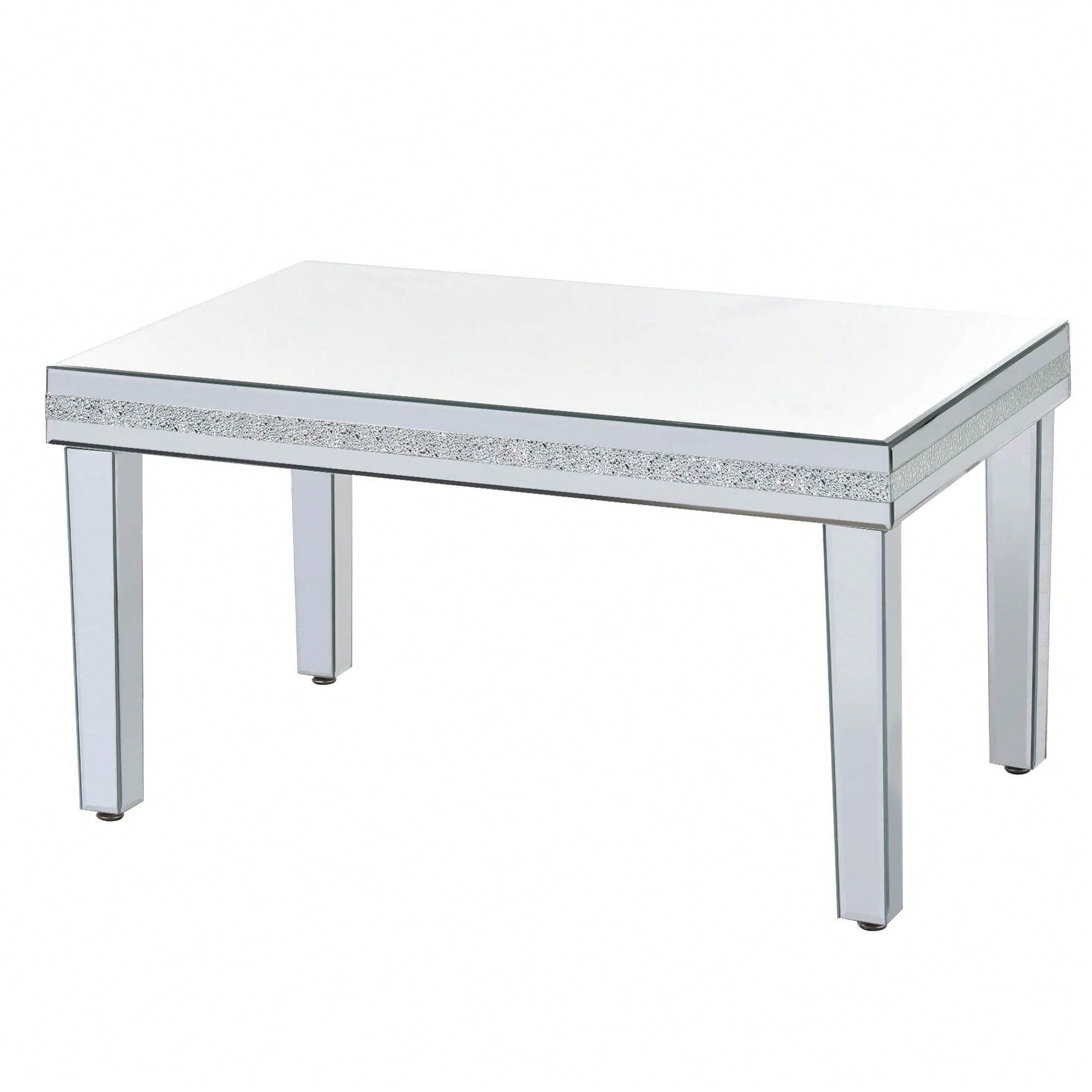 Modern Glass Mirrored Coffee Table, Easy Assembly Cocktail Table With Crystal Design And Adjustable Height Legs