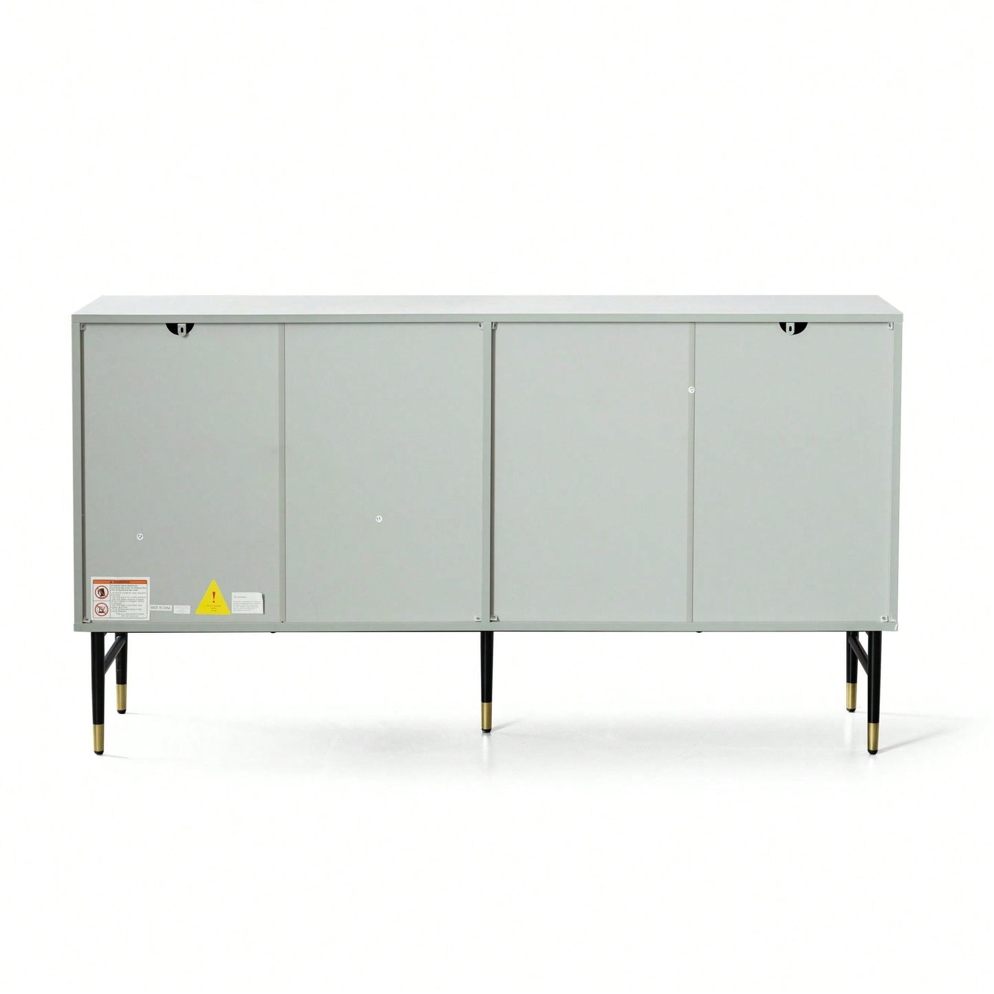Modern Gray Sideboard Buffet Cabinet With 4 Doors For Living Room And Dining Room Storage